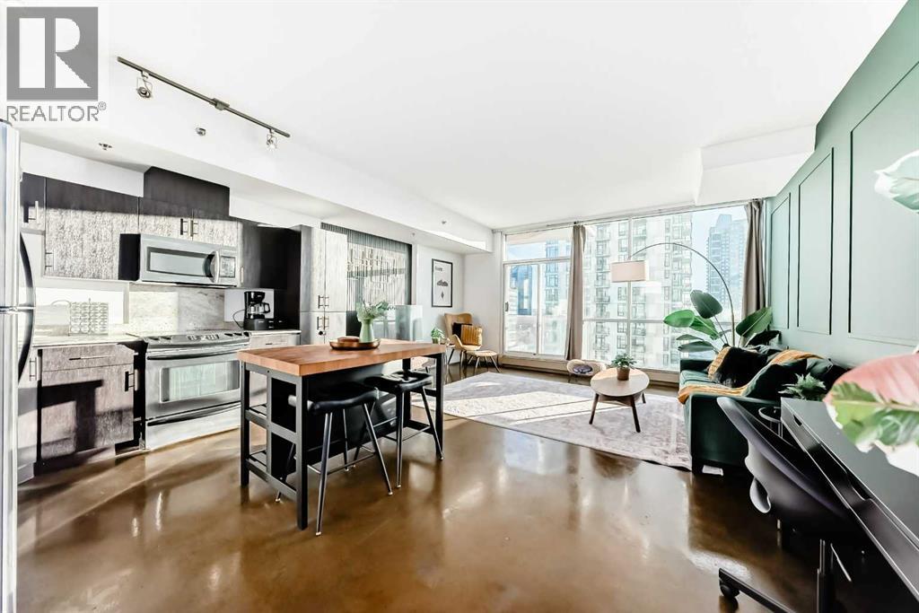 OPEN HOUSE SATURDAY, FEB 28 FROM 11:00AM-1:00PM****Location, location, location. Situated just one block from the LRT, this exceptional downtown condo offers quick access to the core and is only minutes from all the amenities along vibrant 17th Avenue. Steps from First Street Market and some of Calgary’s most celebrated restaurants including Pat and Betty, Ten Foot Henry, and Calcutta Cricket Club, this home is also within walking distance to the Stampede Grounds, the Saddledome, the upcoming Entertainment District, and everything the Beltline has to offer.Located in the sought-after Colours building, this fully furnished one-bedroom, one-bath residence is short-term rental friendly, making it an excellent investment opportunity. Two elevators welcome you through the trendy lobby and up to the 8th floor, where you’ll enjoy fantastic views from both the living room and private balcony. Polished concrete floors flow throughout the open-concept living, dining, and kitchen areas, while 9-foot ceilings and expansive windows flood the space with natural light, creating an airy and spacious feel.The kitchen offers ample cabinet and counter space, stainless steel appliances, and comes fully equipped for immediate move-in or rental use. If buyers doesn't want furniture, that is something that the seller can take out. A portable island with seating provides casual dining, with plenty of room for a table if desired. Step outside balcony, complete with a gas hookup for convenient BBQing. A large closet houses the washer and dryer and provides extra storage for coats, shoes, or seasonal items.The bedroom features sliding doors and easy access to a spacious four-piece bathroom with a tub and shower combination. Colours residents enjoy communal bike storage, rentable private storage lockers, and a shared outdoor space, with underground parking often available for rent if needed.This unit is ideal for young professionals, first-time buyers, empty nesters, and investors ali ke. With its unbeatable location and short-term rental flexibility, Colours offers incredible value and lifestyle convenience. What more could you ask for! (31614810)