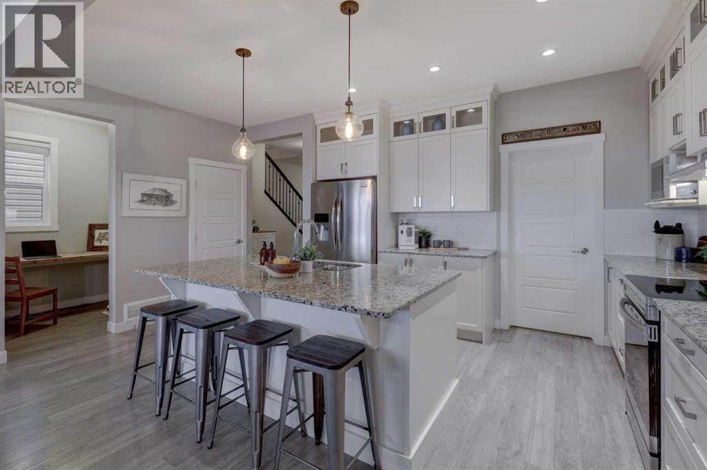 **OPEN HOUSE Sunday March 1st 2-4pm** Stunning 4-Bedroom home with ALL the bells and whistles, backing onto a serene environmental reserve and creek, on a quiet street in Williamstown. From the moment you arrive, you’ll appreciate the low-maintenance front driveway and gravel yard accented with mature tree, plus the convenience of a double attached oversized garage. Step inside to an open foyer featuring durable laminate flooring, 9' ceilings, and an organized front closet with built-in storage for coats and shoes. The heart of the home is the grand and elegant Kitchen, showcasing floor-to-ceiling white cabinetry with glass upper display cabinets, granite countertops, tiled backsplash, SS appliances, and a large eat-up island with sink—perfect for gathering and entertaining. A highly desirable double walk-through Pantry with built-in shelving connects seamlessly to the Mudroom, which is complete with built-in storage, a bench, and hooks. The main floor also features recessed lighting, and expansive windows that flood the space with natural light. The spacious Dining area easily accommodates a large table, while the inviting Living Room is anchored by a cozy gas fireplace with mantel. Step outside from the Dining Room onto the large back deck with glass railings, offering unobstructed views of the north-facing creek and nature reserve with NO neighbors behind for total privacy. Completing the main level is a charming Office Nook with its own window and a 2-pc bathroom with a pedestal sink. Up the elegant spindled stairs, you’ll find a massive Bonus Room with vaulted ceilings, perfect for movie nights or a kids’ retreat. The inviting Primary bedroom features a tray ceiling, an oversized window with a bench seat, breathtaking views and a massive walk-in closet! The luxurious 5-pc ensuite offers a standalone soaker tub beneath a window, dual vanities with granite countertops, and an oversized tiled walk-in shower. THREE additional bedrooms—each with their own closet—sha re an easily accessible 5-pc bathroom with dual vanities, granite counters, and ample storage. Finishing off the upper level is the convenient Laundry Room with tiled floors, shelving, and a linen closet. Downstairs hosts a partially finished basement, ready for your finishing touches. It already features Family room/Gym area, Rec Room space, and an abundance of storage. You can stay cool with the central air conditioning or enjoy the fabulous outdoor space this home offers. The fully fenced backyard comes with a stamped concrete pad, under-deck storage, and low-maintenance landscaping—the perfect place to soak in sunshine and serene views. Even the location is 10/10—ideally located close to schools, parks, walking paths, shopping, and amenities, with easy access for commuting. This home offers the perfect blend of space, style, and setting in one of Airdrie’s most family-friendly communities. Book your private viewing TODAY! (31614161)
