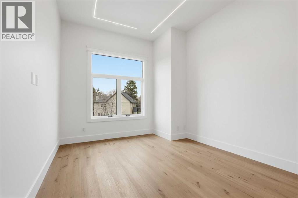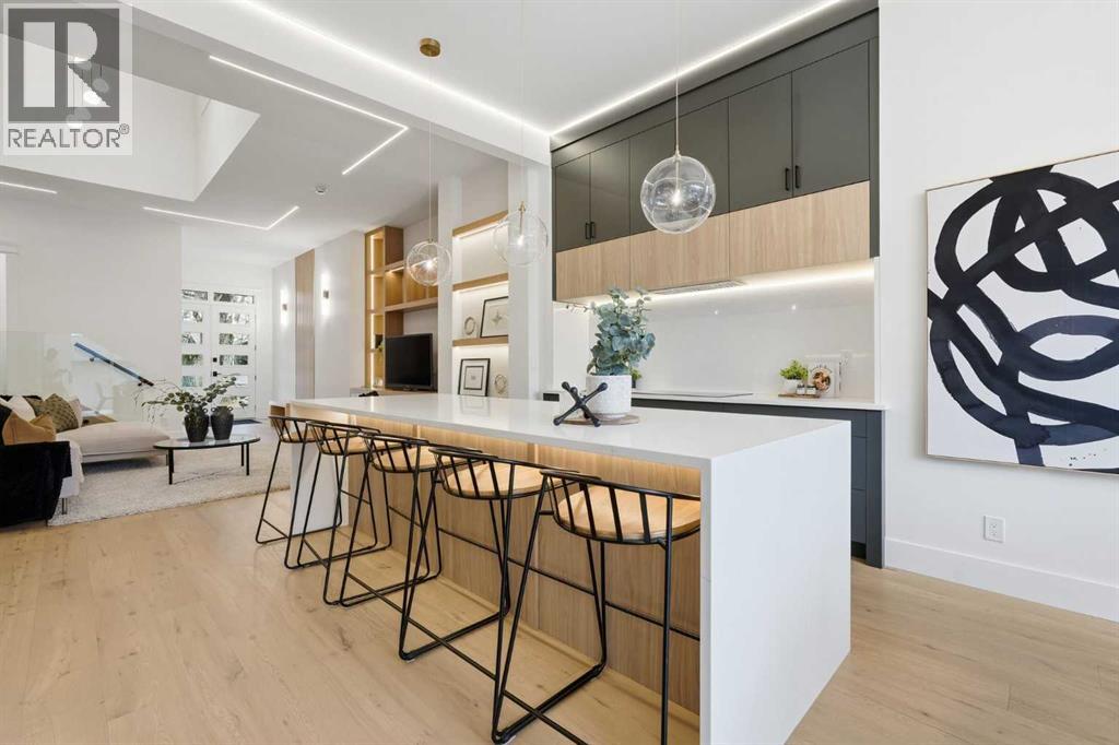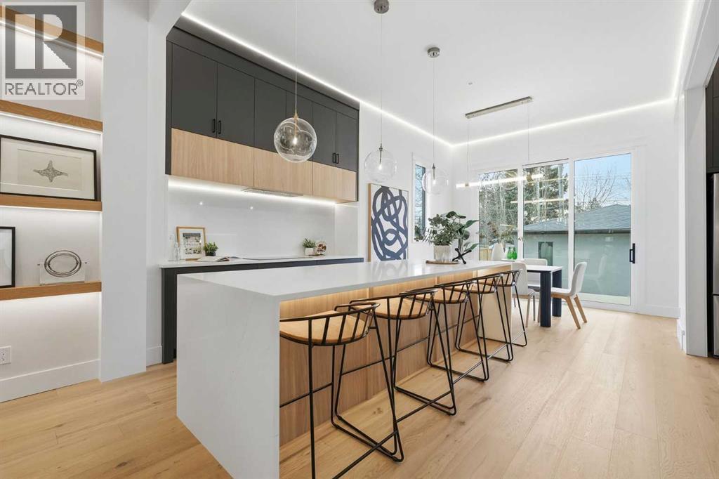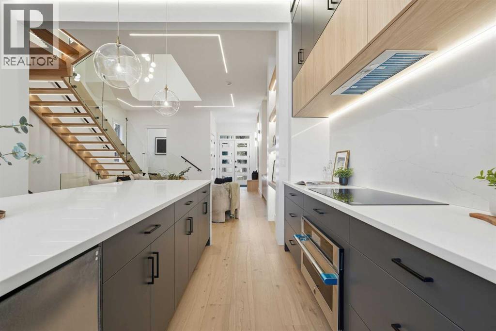 OPEN HOUSE SATURDAY, FEBRUARY 7TH FROM 2-4 PM & SUNDAY, FEBRUARY 8TH FROM 11 AM - 1 PM. Stunning new home with full Smart Home capability, built by Libra Homes situated on a 27.6’x120’ lot in the heart of North Glenmore Park, offering 3+1 bedrooms & nearly 3000 sq ft of luxurious living space. The open & airy main level presents wide plank hardwood floors, lofty ceilings & stylish light fixtures, showcasing a spacious living room with built-ins that seamlessly transitions into the unique dual style kitchen that’s perfect for the entertainer & tastefully finished with quartz counter tops, island/eating bar & the convenience of a built-in oven, induction cooktop stove plus a gas stove with pot filler, 2 rangehoods, full sized fridge & a second smaller built-in paneled fridge with 2 drawers, making prep work & cooking for large gatherings effortless. A bright dining area provides ample space to host family & friends. A private office is located just off the foyer, perfect for a home office setup & a 2 piece powder room completes the main level. Ascend the open riser staircase to the second level that hosts 3 bedrooms, a 5 piece main bath & a well-designed laundry room with sink & storage. The primary retreat boasts a to-die-for walk-in closet & opulent 5 piece ensuite with dual sinks, relaxing freestanding soaker tub & oversized glass enclosed shower. Basement development lends itself to game or movie night, featuring a family/media room with built-in entertainment centre, cozy fireplace, built-in speakers & wet bar with plenty of room for a second seating area. A fourth bedroom & 3 piece bath with rejuvenating steam shower are the finishing touches to the basement. Other notable features, roughed-in A/C, LED lighting throughout, large back deck & double detached garage with enough space to park a larger vehicle. The location is incredibly convenient, close to Glenmore Athletic Park, Lakeview & Earl Grey Golf Clubs, schools, shopping, public transit & effortless access to Glenmore & Crowchild Trails. (31614924)