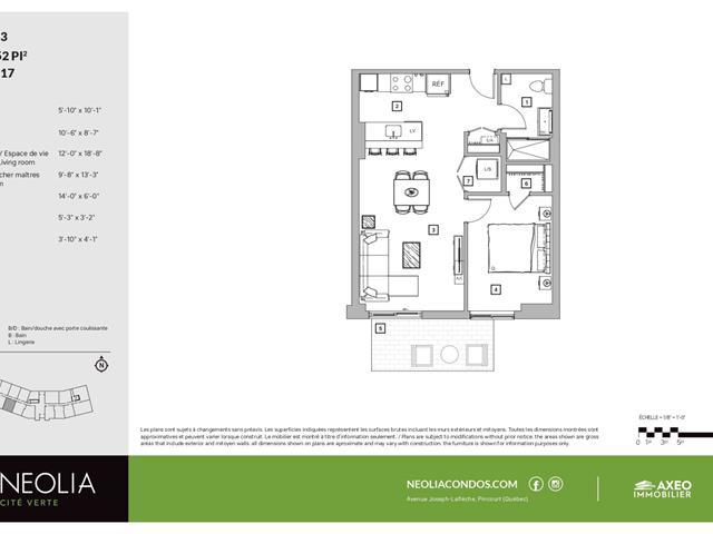 New construction available for immediate occupancy. Beautiful 1-bedroom unit with 652 sq. ft., facing south, offering a peaceful setting. Part of the NEOLIA Cité Verte project, a reinforced concrete building known for its quality and soundproofing, close to shops, schools, public transportation, parks and bike paths. Common areas include a rooftop pool with BBQ, gym, workspace with Wi-Fi, lounge and large landscaped courtyard. The unit includes indoor parking, storage space, Energy Star appliances, washer-dryer, quartz countertops, SPC flooring, ceramic backsplash, wall-mounted heat-pump A/C. (39564869)