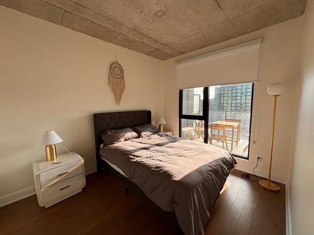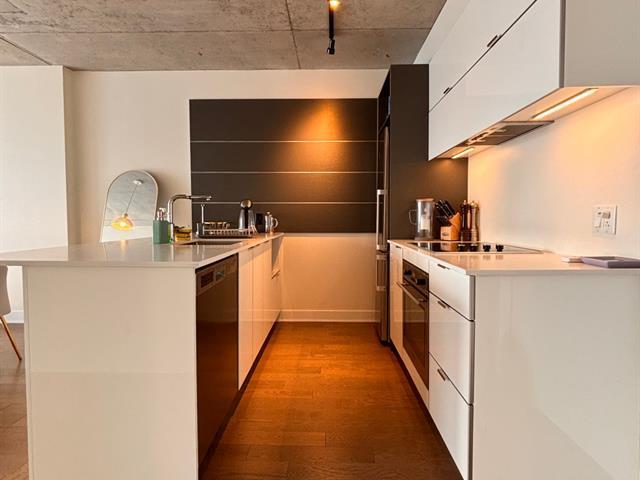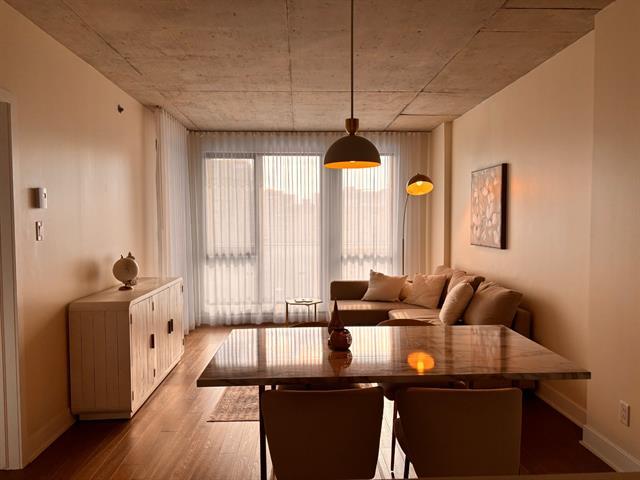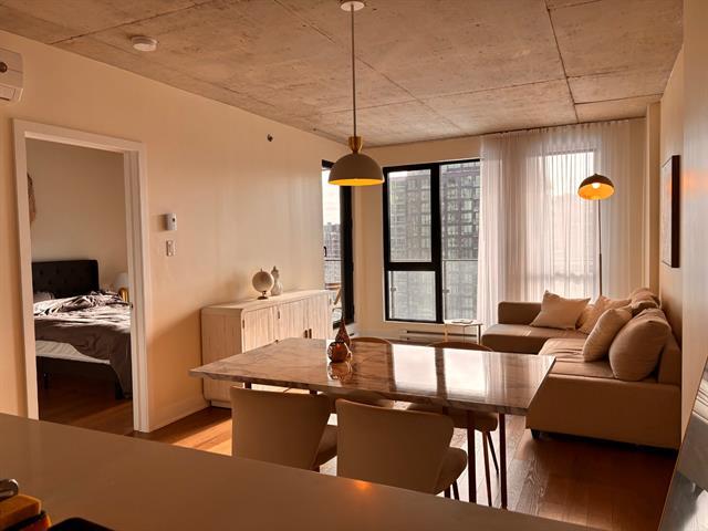 Bright, fully furnished 1-bedroom condo in the heart of Griffintown! Located in a highly sought-after building with direct access to everyday conveniences including Adonis, Winners, Dollarama, SAQ, and Anytime Fitness -- everything you need is literally downstairs. This unit offers stunning city views, large windows with abundant natural sunlight, and a smart, comfortable layout. The apartment comes fully furnished and move-in ready, including bedding and essentials. Washer and dryer are included in the unit. Please note: this is a 3-6-month lease with the possibility to renew. (43556875)