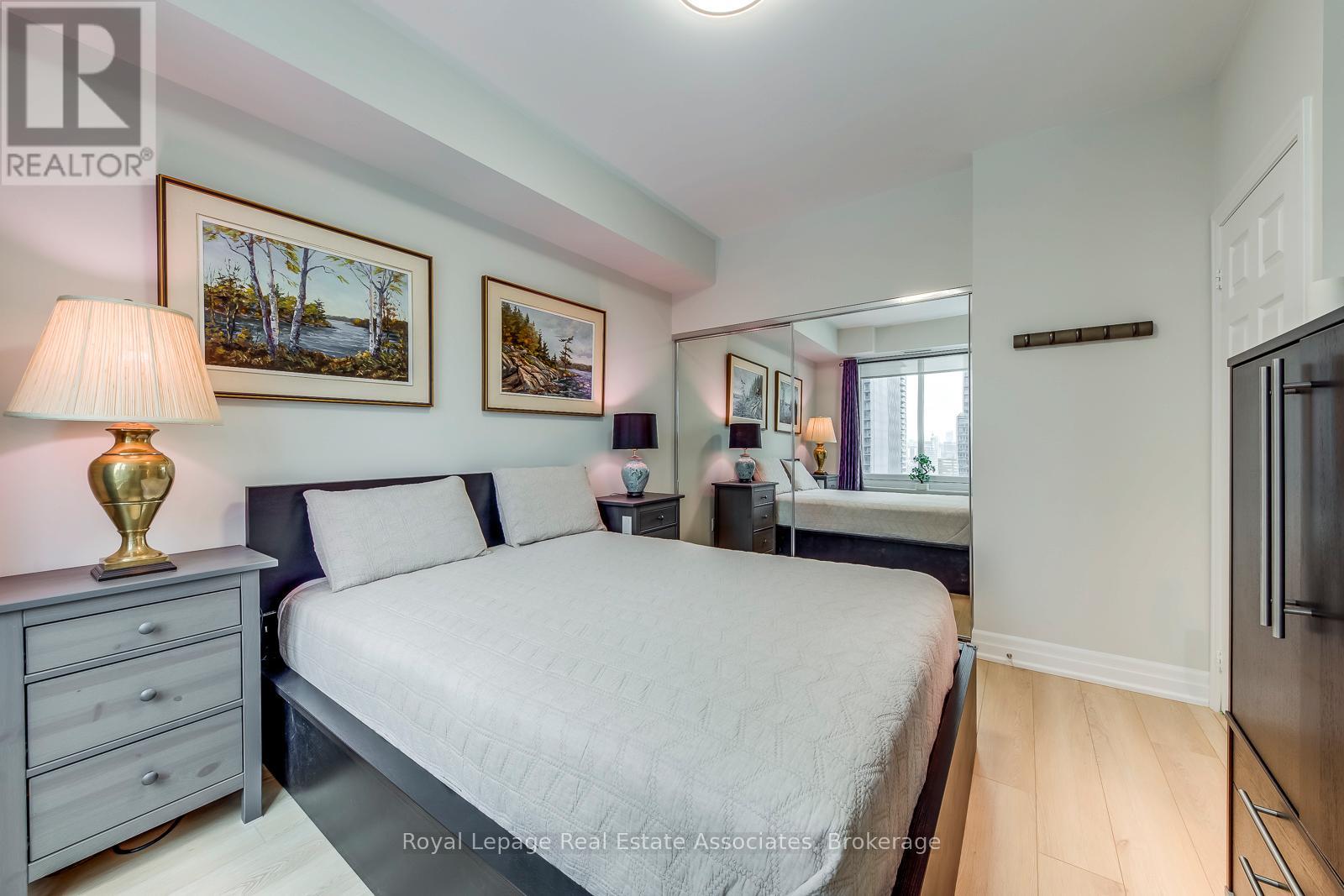 Bright, Beautiful & Spacious Corner Suite with Clear West & North City Views, Including Amazing Sunsets From Large Windows & An Open Balcony. Condo has been upgraded with Ecobee Thermostat, Hardwired Ethernet, Available 8 Gbps Fibre Internet and Professionally Smoothed 9 ft Ceilings. Additional Upgrades Include New "Whalen" Heating System (2025), New Window Blinds (2025) and New LG Fridge (2025), LG Washer & LG Dryer (2025). Installed EV Charger in Parking Spot. Upgraded Flooring Throughout. Granite Counters & Stainless Steel Appliances in Kitchen. Great Open Layout with Split Bedrooms (opposite sides of condo). Marble Floors, Counters & Showers in Both Washrooms. Excellent Location Close to Great Shopping, Entertainment & Restaurants. Close to Yonge, University And Bloor Subway Lines. Amenities Include Visitor Parking, 24hr Concierge, Fantastic Gym, Party/Meeting Room, Media Room, Billiards, Golf Room, Yoga Room, Sauna. (42094706)