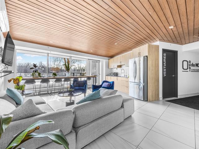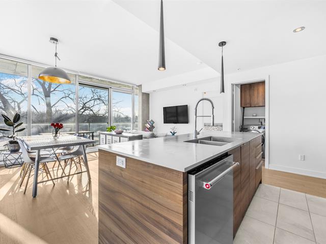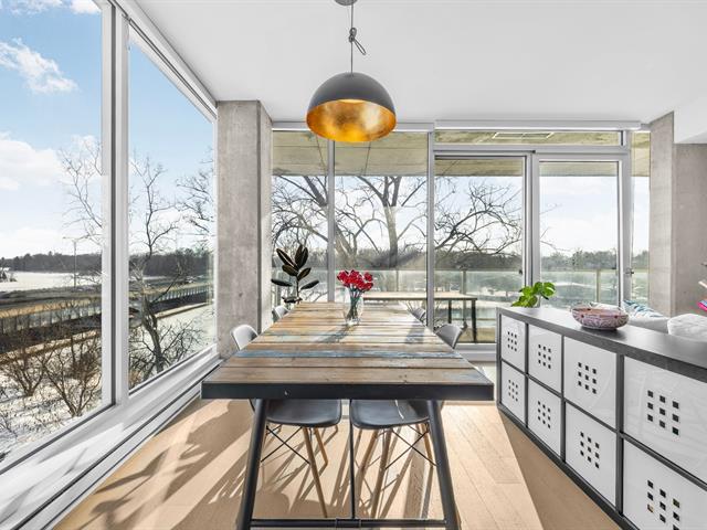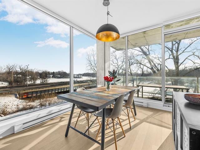 Située au 3e étage du prestigieux complexe Ô Quai du Nord, cette unité haut de gamme se distingue par son emplacement exceptionnel en bordure de la rivière des Mille Îles. Elle offre une aire de vie à concept ouvert réunissant salon, salle à manger et cuisine moderne aux lignes épurées, munie d'armoires pleine hauteur et d'un vaste îlot central avec places assises. L'unité comprend deux chambres à coucher, dont une chambre principale avec walk-in, une salle de bain complète, une salle de lavage indépendante et des plafonds de 9 pieds. Deux stationnements intérieurs, un rangement privé, ainsi que des espaces communs. (52468028)