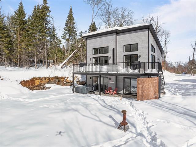 GUARANTEED PROFITABILITY! This chalet, built in 2022 and already operated as a short-term rental, offers excellent annual income (over $51,000). Features a total of 3 bedrooms and 2 full bathrooms. Ceilings up to 14 feet, quartz countertops, a wood-burning stove, and bright living spaces. Notarized access to Lac Delisle and Lac Godon. Set on a 50,000 sq. ft. wooded lot, this chalet is perfect for nature and tranquility lovers. An excellent investment opportunity or secondary residence. Sold fully furnished and equipped for the future buyer wishing to continue the rental operation. A true turnkey property not to be missed! GST/QST must be added to the asking price (57243112)