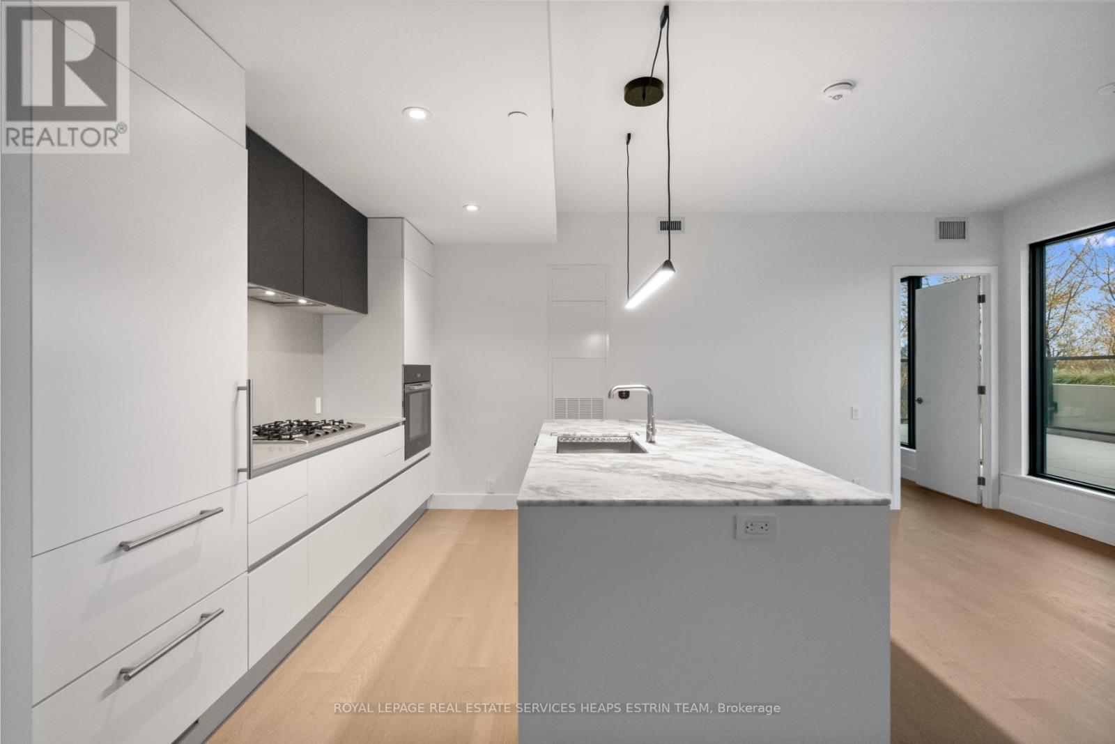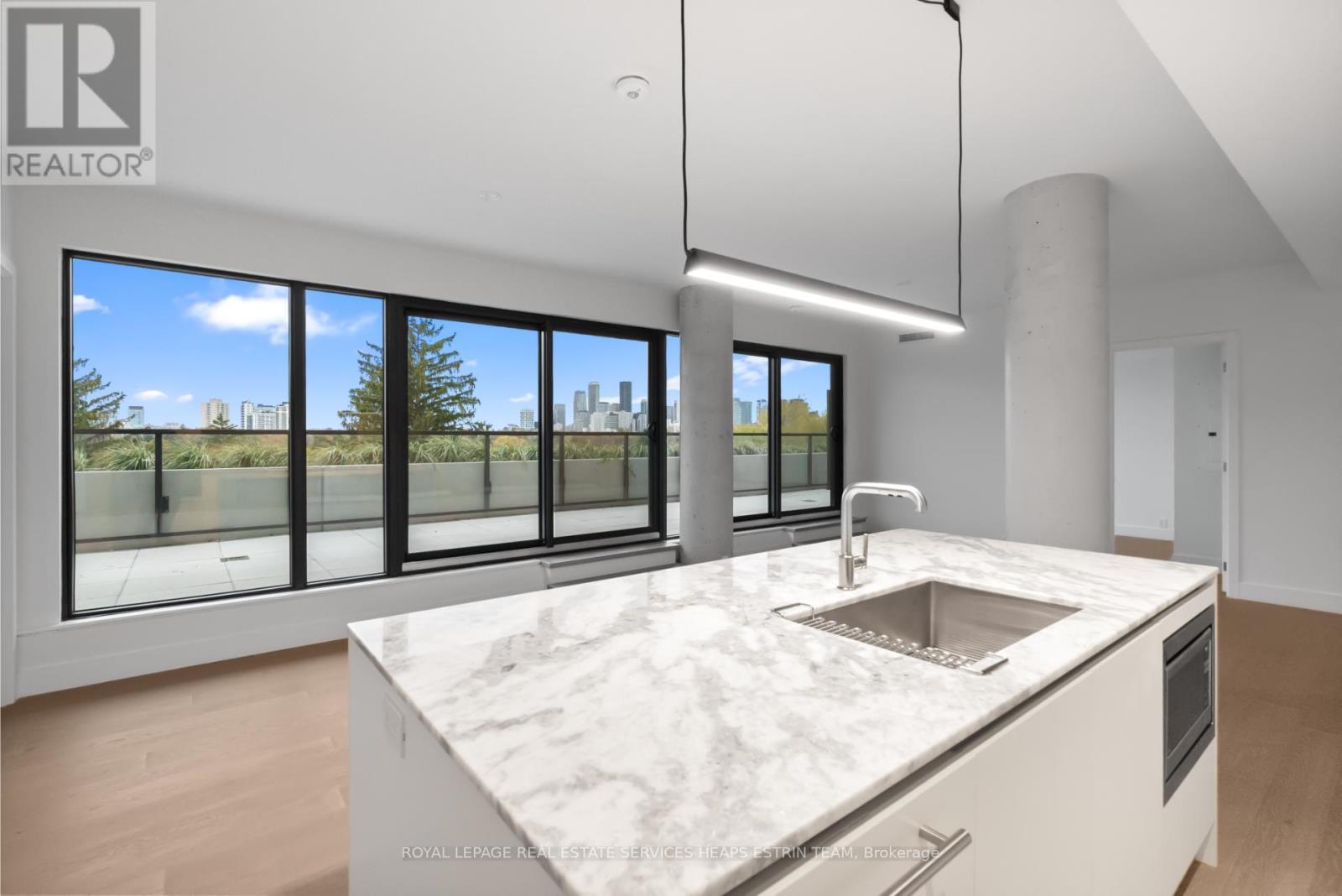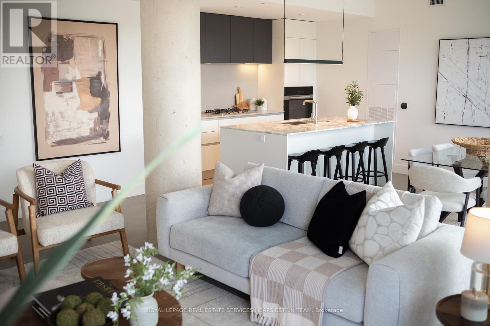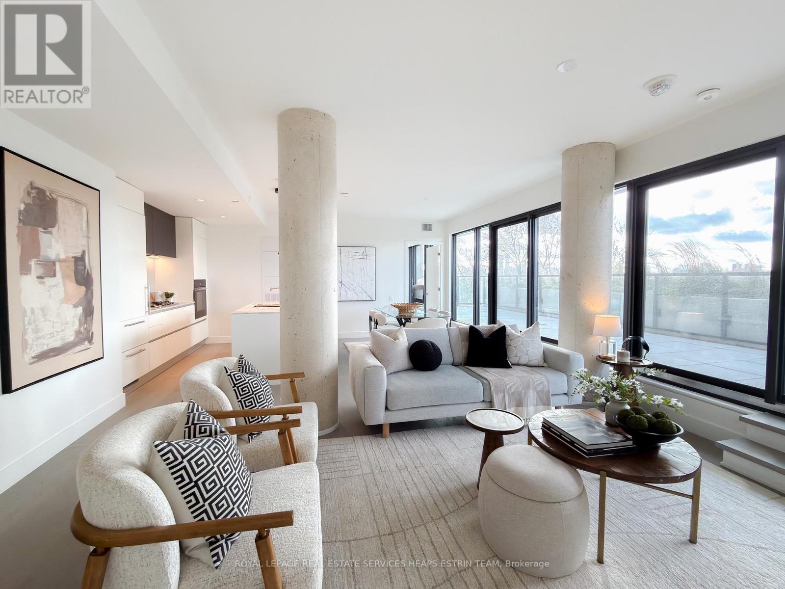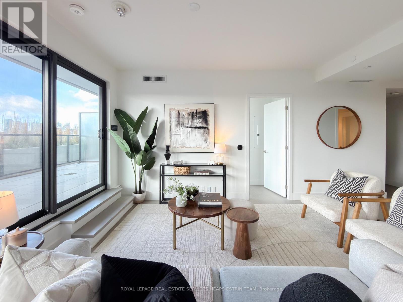 Experience refined urban living in this meticulously designed two-bedroom plus den, two-bathroom suite at 1414 Bayview Avenue. Perched on the sixth floor of a boutique building, suite 606 is a perfect blend of modern sophistication and timeless design. Spanning 1,225 square feet of interior space, the suite is thoughtfully laid out for maximum comfort and privacy with a split-bedroom floor plan and an additional private den. The open-concept living and dining areas are flooded with natural light through wall-to-wall west-facing windows, complemented by high ceilings and hardwood flooring throughout. The heart of the home is a custom Italian kitchen with Caesarstone countertops, a large centre island, high-end integrated Miele appliances designed for both function and style. Step out onto the expansive 600 sq.ft. terrace, perfectly elevated above the treetops for panoramic sunset views and seamless indoor-outdoor living. Both bedrooms offer tranquil west-facing views. The primary suite features a large custom walk-in closet and a spa-like ensuite with a floating double vanity, Caesarstone counters, a mosaic-tiled wall and walk-in rainfall shower, and a private water closet. The second bedroom boasts ample closet space. A versatile den makes for a perfect home office or nursery, a sleek 3-piece bathroom with floating vanity and walk in shower is conveniently located off the entryway, along with a laundry room complete with sink. The suite comes complete with two parking spaces and a large locker. 1414 Bayview Avenue is a boutique residence of just 44 luxury suites, known for its elevated design, smart layouts, and high-end finishes. Nestled in one of Toronto's most sought-after communities, residents enjoy easy access to top-tier amenities, including restaurants, shops, parks, and trails, offering a balanced lifestyle of urban convenience and neighbourhood charm. (42095158)