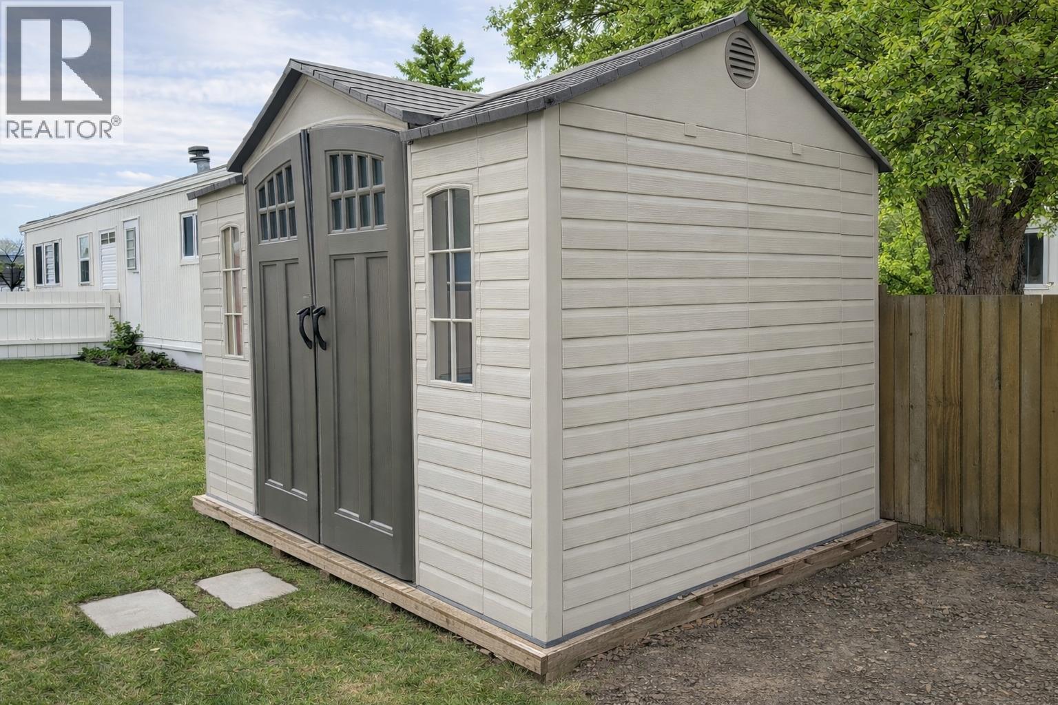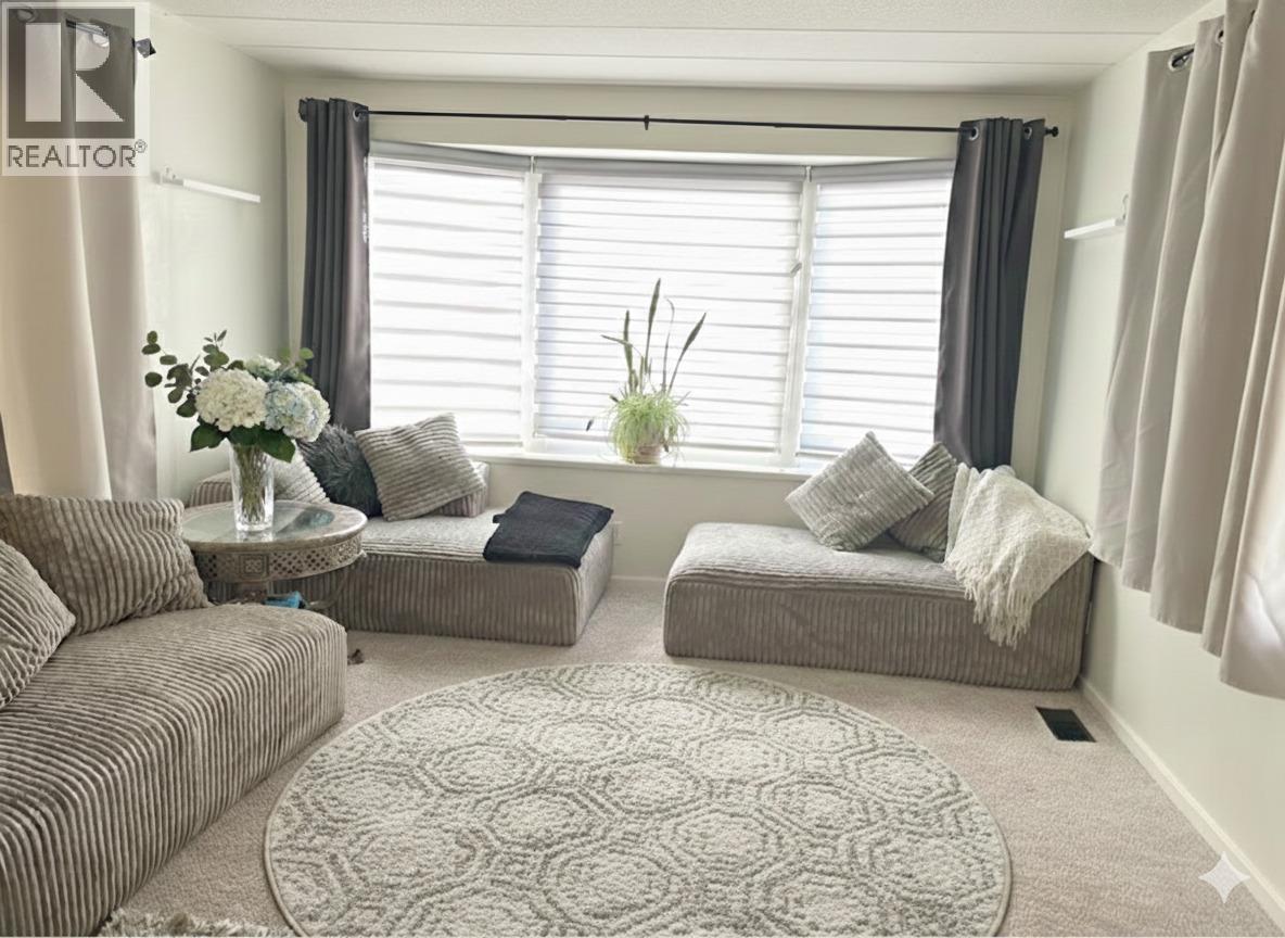 This nicely updated 3 bed / 1 bath single-wide mobile home is the perfect fit for a growing family, first-time buyer, or retiree looking for comfort and convenience. This welcoming community is pet, family, and rental-friendly—ideal for anyone looking to enjoy nature while staying connected to a friendly neighbourhood atmosphere. Inside, you’ll love the many upgrades including updated windows, newer flooring and paint, stylish zebra blind window treatments, and a refreshed kitchen featuring a newer stainless steel dual fuel range, newer stainless steel fridge, and a newer backsplash. The home also includes newer washer and dryer, plus peace of mind with an electrical inspection on file from 2017. Step outside to enjoy the covered deck, new sod, a huge garden, and a fully fenced yard with plenty of space for kids or pets. Storage is no issue with a newer vinyl garden shed plus an additional smaller shed. With three good-sized bedrooms and a great outdoor setup, this charming home is move-in ready and packed with value! Monthly pad rent is $742.99. (39706193)