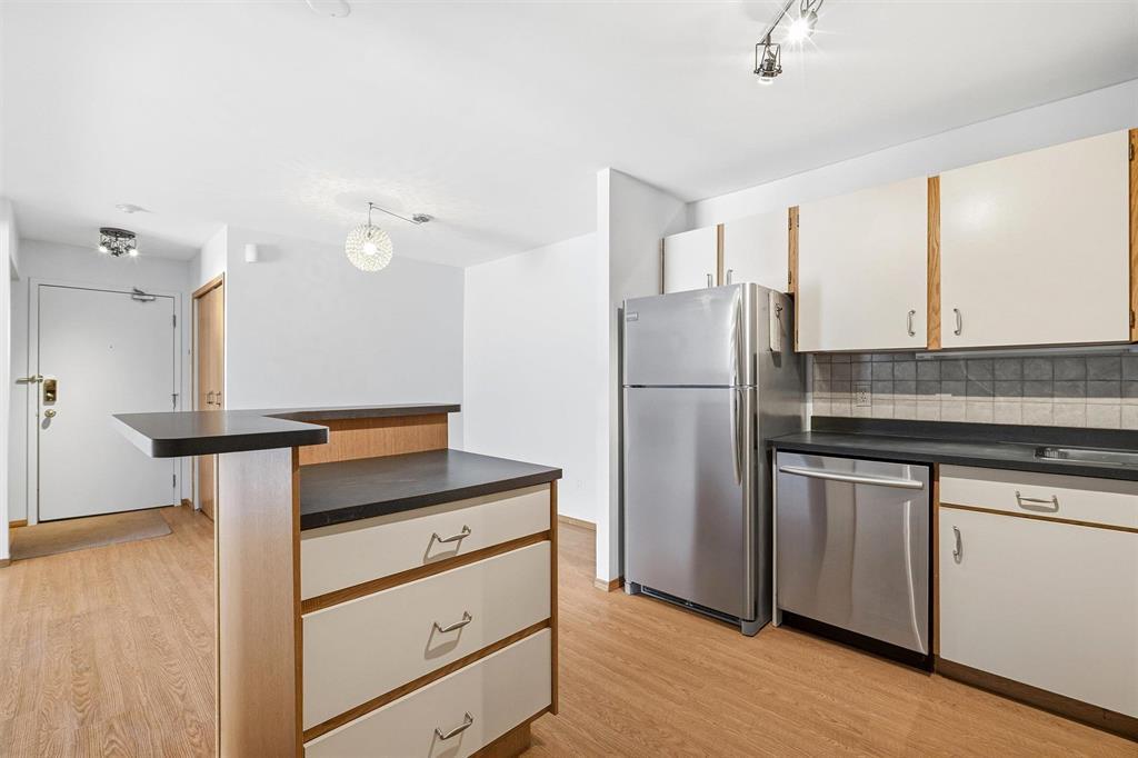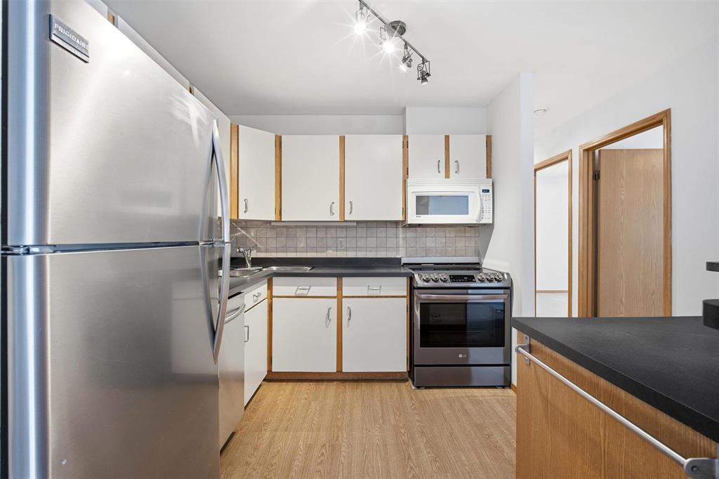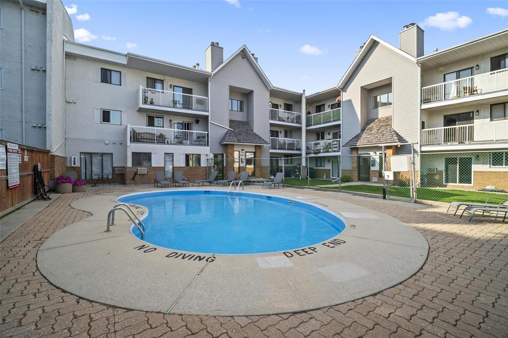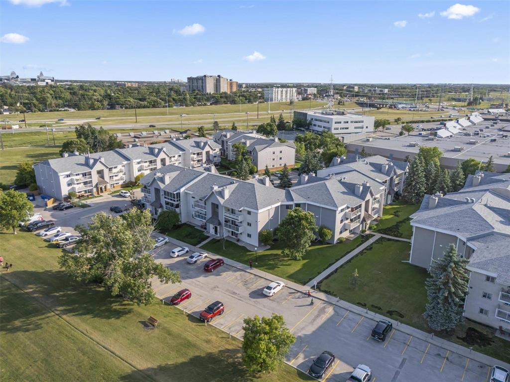 1J//Winnipeg/Showings NOW | Offers ANYTIME! | Open House Saturday, 2:30-4pm | Step into this beautifully updated MAIN FLOOR (with green space!!), 890 sq ft, 2-bedroom condo offering stylish, low-maintenance living in what could be considered the best location in the entire complex! This pet-friendly unit (allowing 1 dog or 1 cat) features in-suite laundry, dedicated parking, updated flooring, and an open concept kitchen which is rare for these units! The inviting sunken living room with cozy wood-burning fireplace opens directly onto your private patio perfect for morning coffee or evening relaxation. The bathroom is clean and updated, while the spacious primary bedroom includes a walk-in closet! Your spare bedroom is also spacious for kids, or an office. Enjoy incredible building amenities including an outdoor pool, gym, sauna, and ample visitor parking. Located just minutes from the University of Manitoba, Princess Auto Stadium, and the Pembina strip, this is an ideal opportunity for students, investors, or first-time buyers. Move-in ready and packed with the features condo buyers want book your private showing today. (231933652)