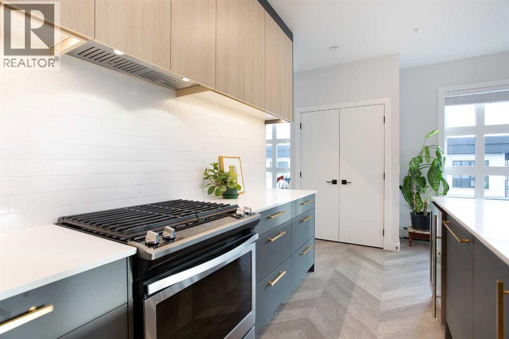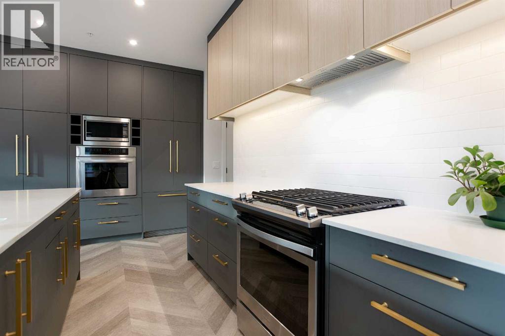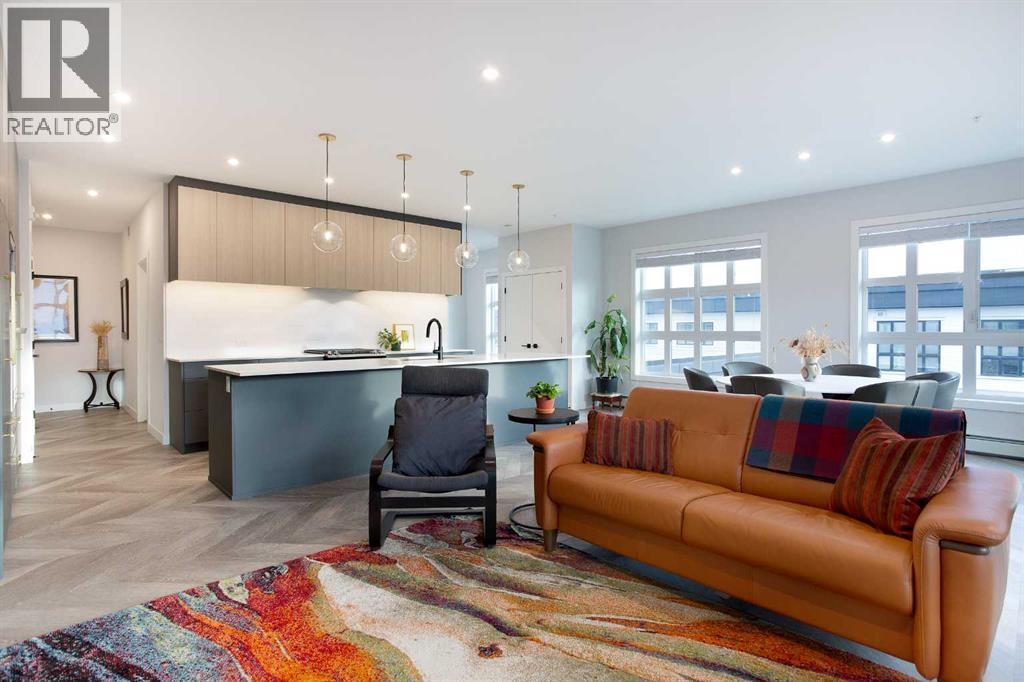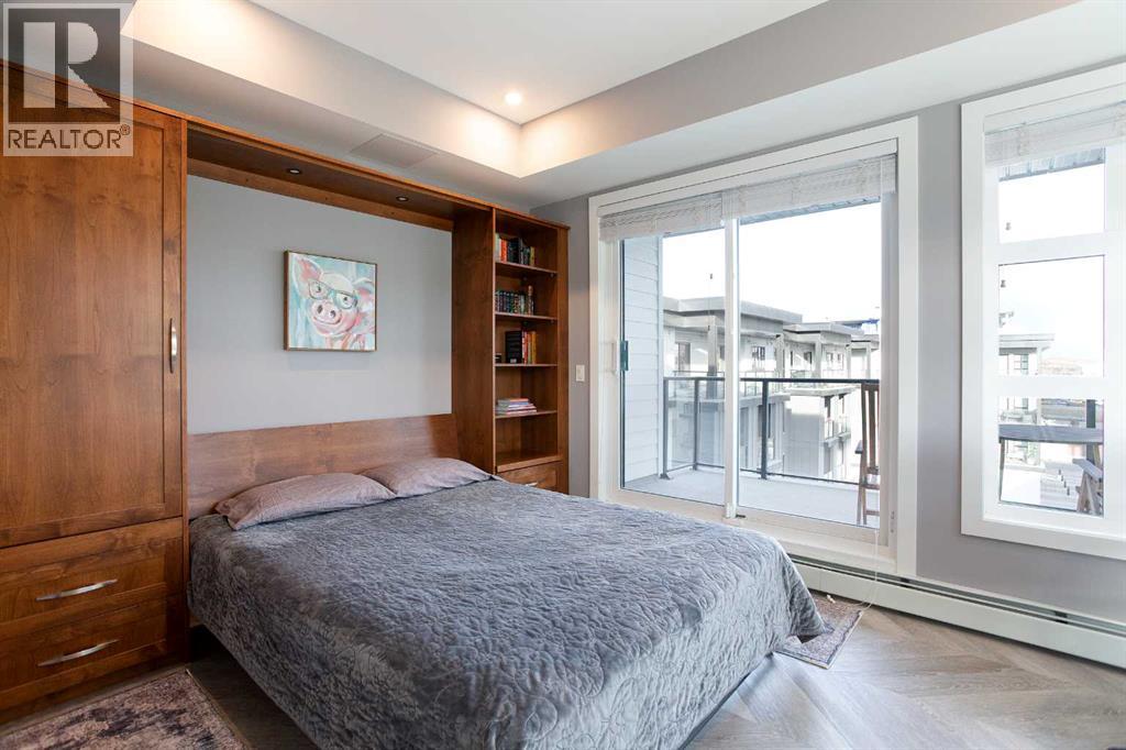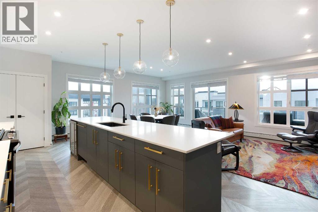 Welcome to Esquire in the University District! This CORNER UNIT, TOP-FLOOR PENTHOUSE is designed for luxury, style and comfort. The gourmet kitchen features a 12-foot central island, TWO built-in refrigerators, a gas range, a built-in oven, a built-in microwave and a bar fridge making entertaining and preparing meals a delight! The spacious living room features gorgeous herringbone flooring and a stylish electric fireplace with built-ins. TWO balconies provide beautiful views - one facing west with MOUNTAIN VIEWS! and the other facing east overlooking the courtyard and park. The primary bedroom has an OVERSIZED walk-in closet with custom built-ins and a luxurious 4-pc ensuite with a floor-to-ceiling tiled walk-in shower and dual sinks. The 2nd bedroom includes a murphy bed and has space for an office / study area. A 2nd 4-pc bathroom is in the hallway for added convenience. A laundry room, a spacious front closet and storage room and THREE underground STORAGE lockers ensure plenty of space for all your needs. TWO underground TITLED parking stalls are included. Loaded with amenities, this building offers a gym, a pet wash station, bike storage and tuning areas and a workshop. Conveniently located close to the University of Calgary, the Alberta’s Children’s Hospital, an urban dog park, Central Commons park, multiple shops, restaurants and grocery stores as well Market Mall, a daycare and the Cineplex VIP theatre. Accessing the rest of the city and downtown is a breeze with nearby transit routes and major road networks. This luxurious penthouse is waiting for you to call home! Call to book your private showing today. (31615686)
