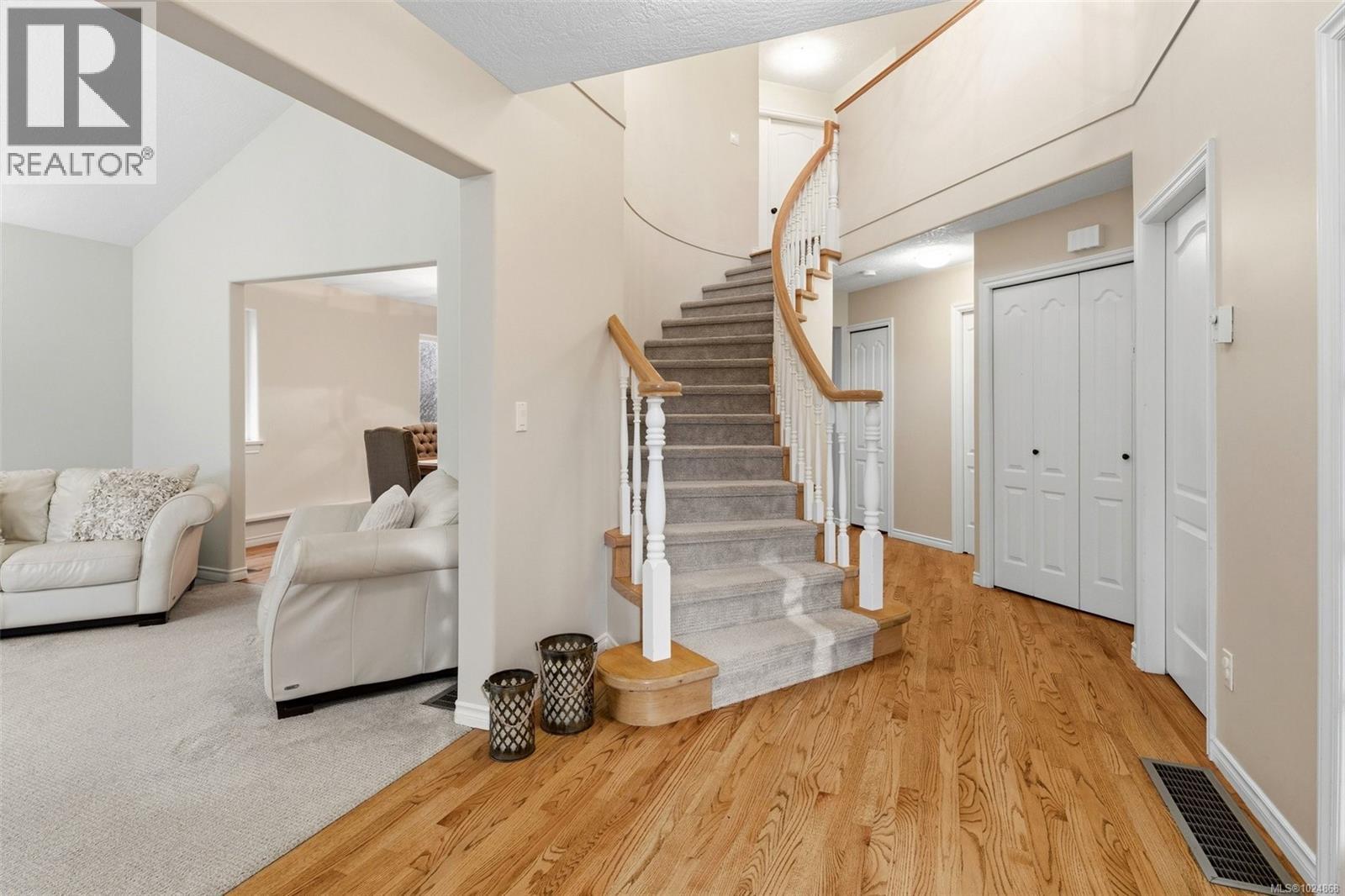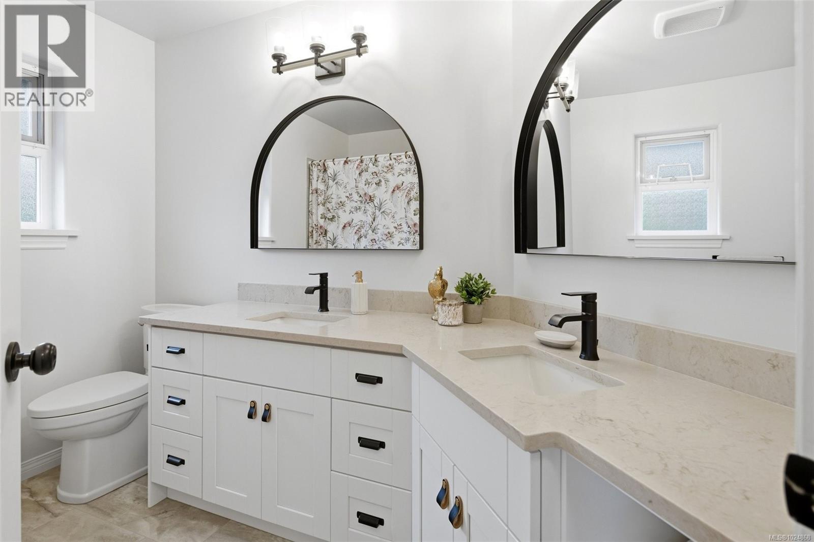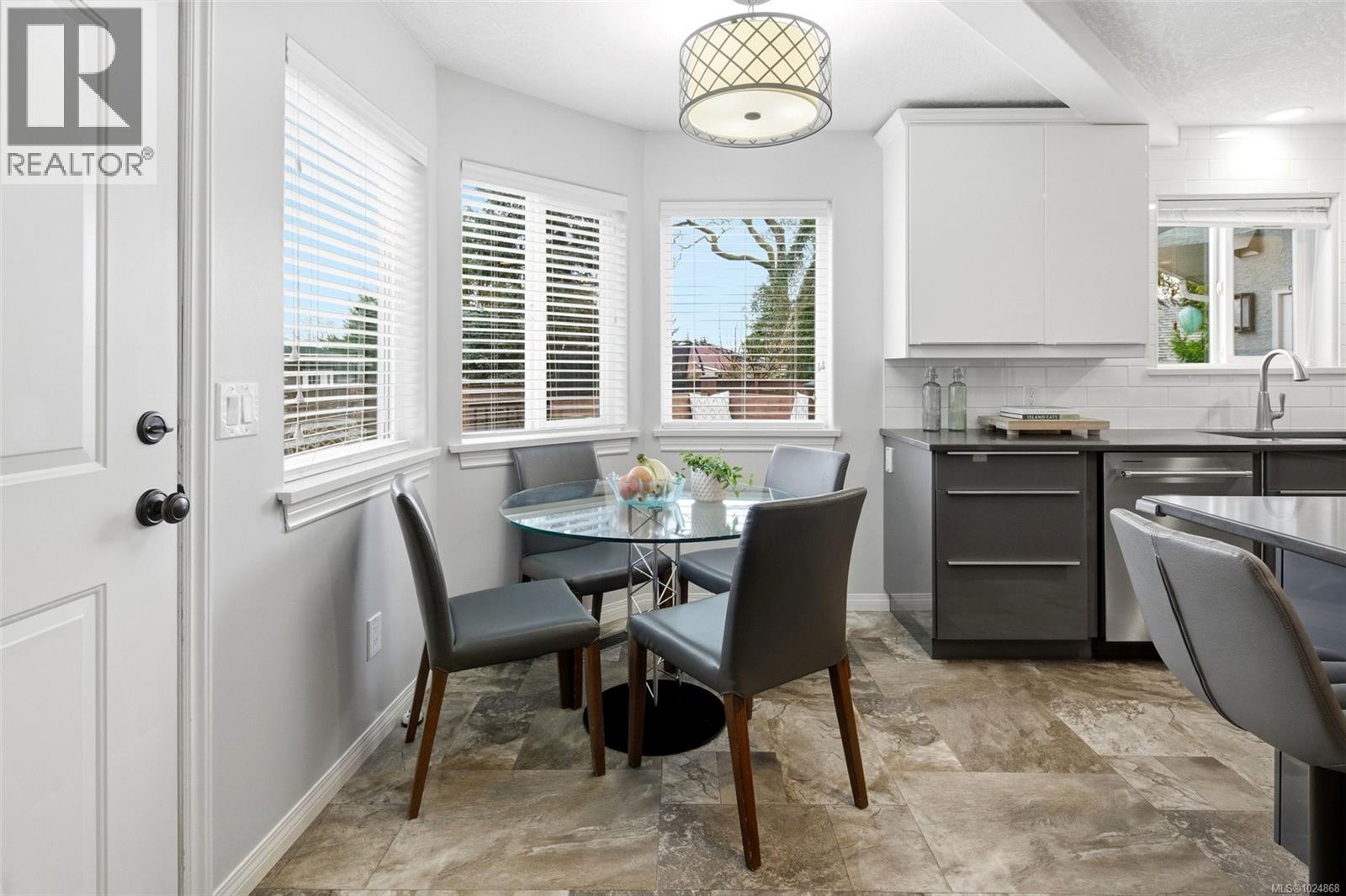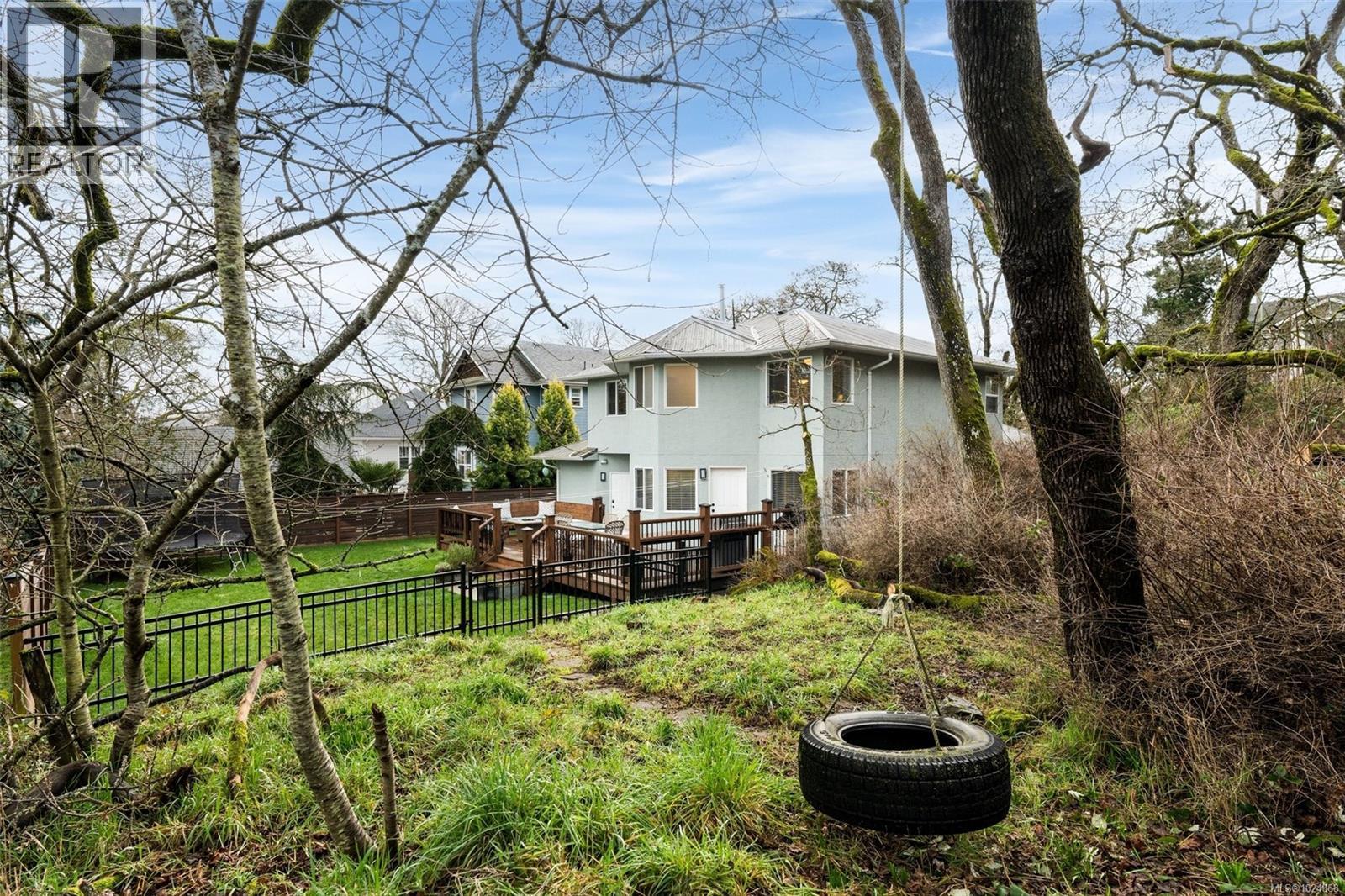 OPEN HOUSE SAT 1–3. Executive family home in desirable Oaklands, extensively renovated inside and out. Set on a large, south-facing, fully fenced lot at the end of a no-thru lane, siding onto a forested area w no side neighbour—exceptionally private, peaceful and central. INTERIOR: Grand foyer w spiral staircase & cathedral ceiling creates an impressive arrival. Excellent floor plan ideal for family living and entertaining. Main level offers den (ideal home office), living room w gas fireplace, formal dining room, family room, open kitchen w eating area, laundry room & powder rm. Upper level features a spacious primary retreat -dream ensuite including floating soaker tub, separate glass shower, double sinks & custom walk-in closet + 3 additional bedrooms + full bath w tub & double sinks. Oversized windows throughout capture treed outlooks, open sky, abundant natural light. INDOOR NOTABLES: New custom kitchen w 2-tone cabinetry, tile backsplash, gas stove, impressive single-slab quartz island, all appliances replaced, updated baths, refinished oak hardwood floors, interior & exterior paint, carpet + underlay in beds, central vac & newer hot water tank. EXTERIOR & SYSTEMS: Heat pump, metal roof, EV charger ready, 150 AMP, new cedar entertaining deck w built-in BBQ prep area, gas hookup, gas firepit & custom cedar conversation area w cushions. Flat, usable backyard ideal for entertaining, kids, pets, or raised garden beds. Irrigation & landscaping complete the outdoor space. GARAGE & PARKING: 1.5 car garage w potential for private studio, newer door + opener, access to backyard, + space for RV and additional vehicles. Gutters cleaned ’26. Walk to parks, schools, Hillside Mall and amenities; minutes to Camosun College, UVic, hospital, trails, beaches & downtown. A meticulously cared-for home, clearly loved for many years, offering a rare combination of privacy, quality and location. For more information or to book a private showing, contact Christian 778-678-3098. (30356615)
