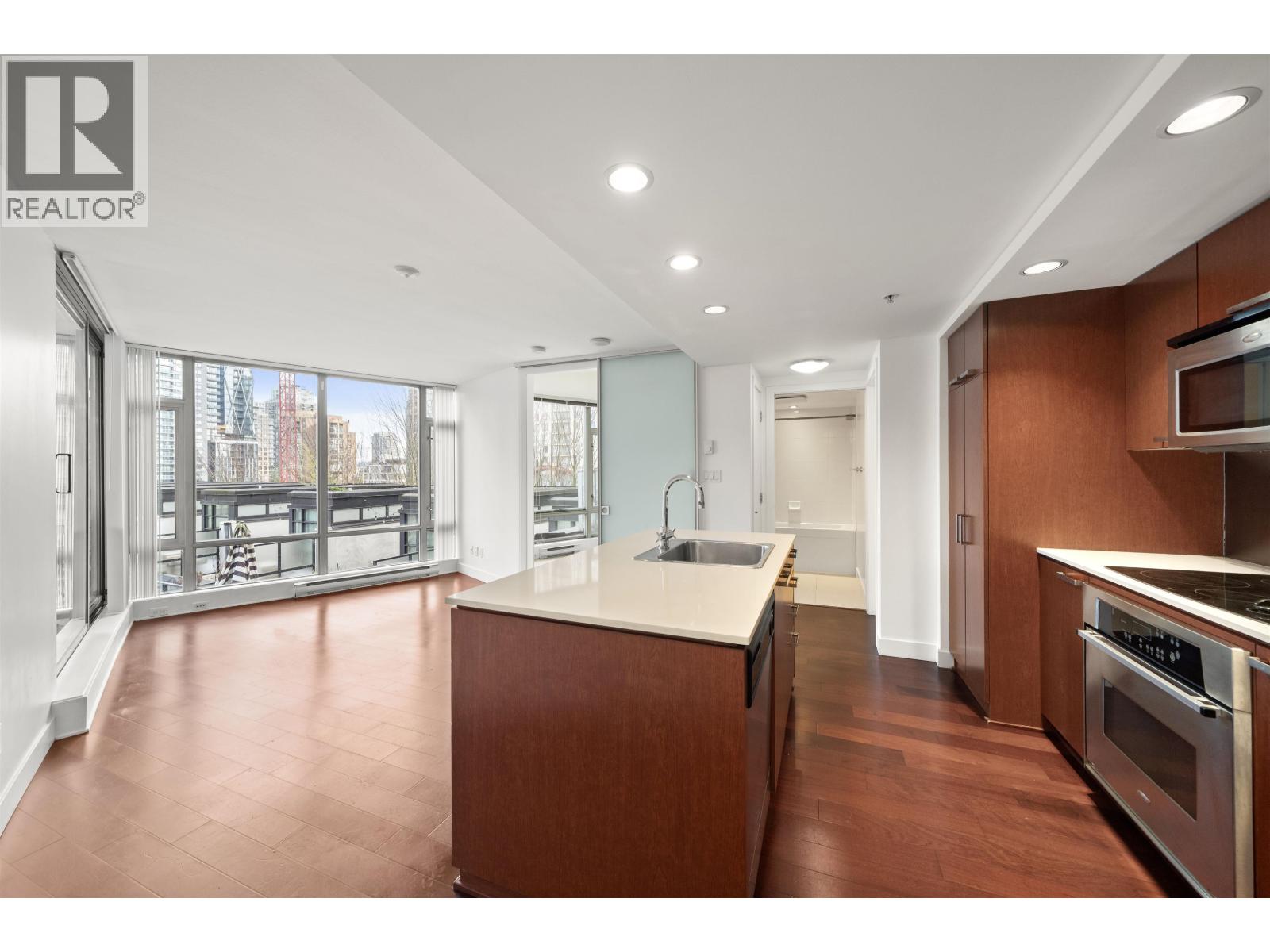 Welcome home to Elan, located in the heart of Yaletown, one of Vancouver´s most desirable neighbourhoods. This open-concept condo features hardwood flooring throughout, over-height ceilings, and floor-to-ceiling windows that flood the home with natural light. The thoughtfully designed layout flows seamlessly into a contemporary kitchen with custom cherry cabinetry, granite countertops, stainless steel appliances, and an island. The living area opens onto a private balcony overlooking gardens on the quiet side of the building. Residents of Elan enjoy access to amenities including a fitness centre, sauna/steam room, and a social lounge. Nestled in the heart of Yaletown and Downtown, you´re steps from beautiful parks, the seawall, and some of Vancouver's most popular cafes and restaurants. (32419055)