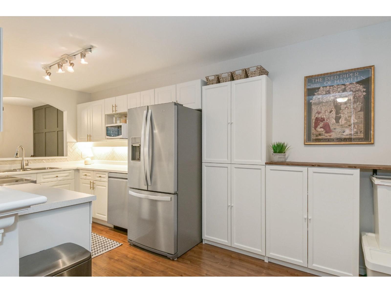 VERY WELL MAINTAINED AND HIGHLY SOUGHT AFTER LOCATION. Spacious, contemporary Two Bedroom, Two Bath, Main Floor Corner Suite nestled in the heart of Fleetwood. Minutes walk to Parks, Sky Train, Library, Community Centre, Leisure Centre & Schools. Updated Kitchen w/pass through, newer stainless steel appliances. Upgraded Ensuite w/Quartz countertops and ceramic sinks. Large Primary Bedroom w/walk-in closet. Wood tone laminate flooring throughout. Freshly painted with neutral tones. BRIGHT OPEN FLOOR PLAN. South-facing back yard with walkout Patio. Low monthly utilities. Close to 3 underground Parking Stalls and Storage Locker. PERFECT FOR FAMILIES. Highly Attentive Strata Council and Property Management; Healthy Contingency Reserve Fund. Sellers are related to Listing Agent. (32419212)