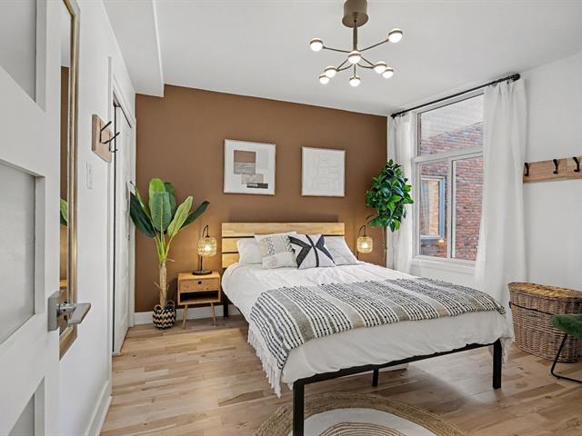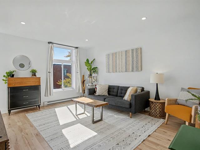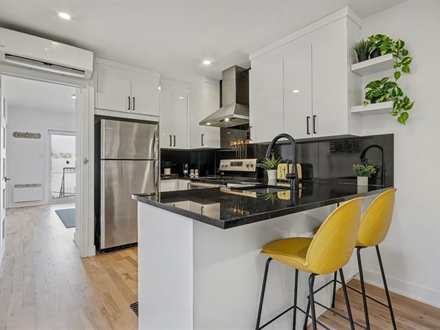 Côte-Saint-Paul. 2 bedrooms with parking included. Fully renovated. AVAILABLE IMMEDIATELY, just 8 minutes from Jolicoeur metro. Kitchen with black quartz countertops, modern renovated bathroom, sanded floors (2025), updated electrical and plumbing (2021). Bright, peaceful space with a view of Montreal, surrounded by greenery. A true turnkey home in the heart of the city. (40652280)