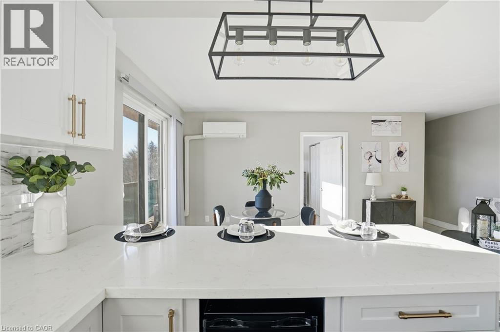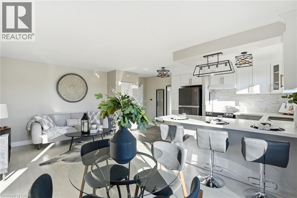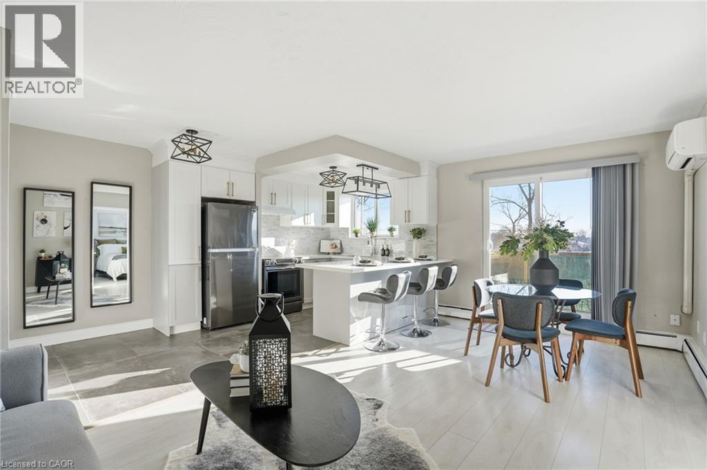 Welcome to this beautifully renovated condo apartment in the highly desirable Bartonville–Glenview neighbourhood of East Hamilton. Offering a comfortable, low-maintenance lifestyle, this move-in-ready unit with an owned storage locker, presents a rare combination of modern updates, peaceful surroundings, and exceptional views—ideal for first-time buyers, downsizers, or investors. The thoughtfully renovated interior features carpet-free living throughout, stone countertops, a functional breakfast bar, and one of the few units in the building with built-in air conditioning, creating a bright, modern space ideal for everyday living and entertaining. Large windows and a massive private balcony extend the living space outdoors and showcase an exceptional scenic view overlooking the tree-lined skyline of the Red Hill Valley Bowl, offering a peaceful green backdrop and a rare connection to nature seldom found in condo living. Set within a quiet, established community known for mature tree-lined streets and pride of ownership, Bartonville–Glenview offers an ideal balance of urban convenience and access to nature. Enjoy nearby green spaces, including Red Hill Bowl and scenic walking and biking trails throughout the Red Hill Valley. Commuters will appreciate easy access to major routes including the Red Hill Valley Parkway, the LINC, QEW, and Highway 403, making travel across Hamilton and into the GTA efficient and stress-free. Public transit, shopping, restaurants, and essential amenities are all nearby along King Street East, Queenston Road, and Centennial Parkway. Surrounded by parks, schools, and community services, this location offers a peaceful residential setting enhanced by stunning tree-lined valley views, while remaining minutes from downtown Hamilton, Stoney Creek, and major employment hubs. A fantastic opportunity to own in a well-established East Hamilton neighbourhood known for its accessibility, natural surroundings, and lifestyle appeal. (70135205)