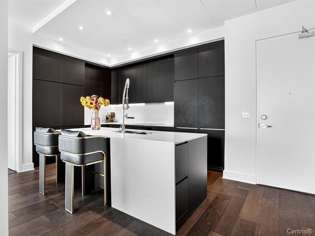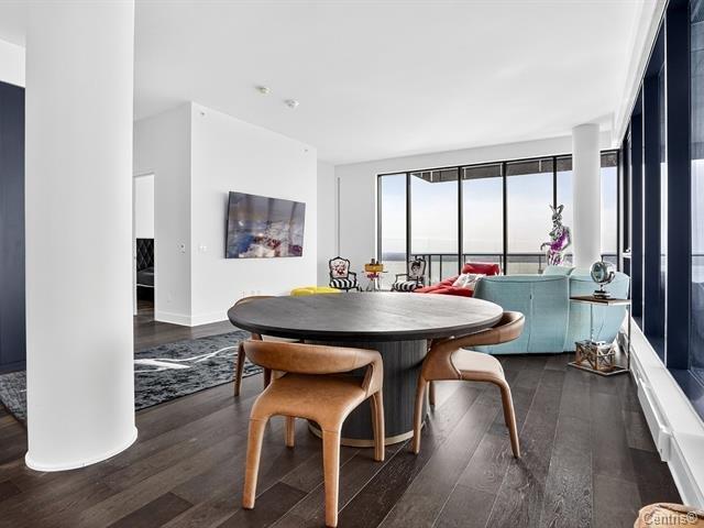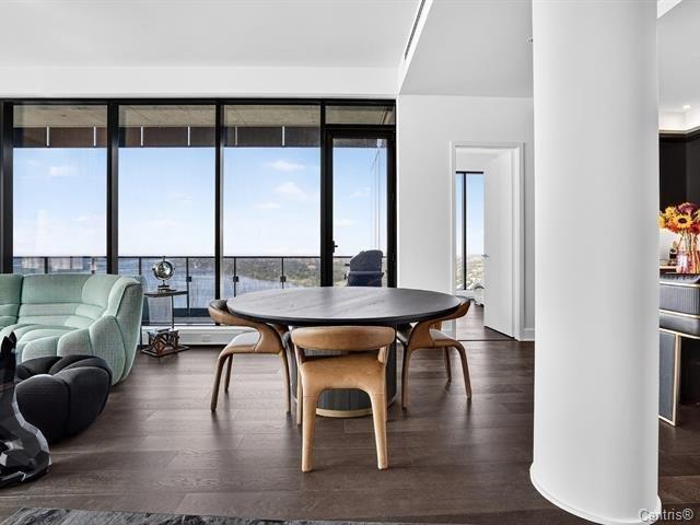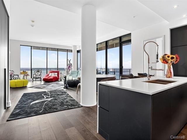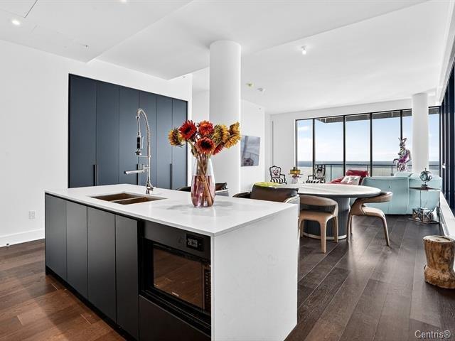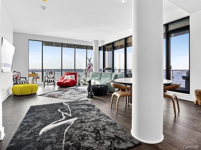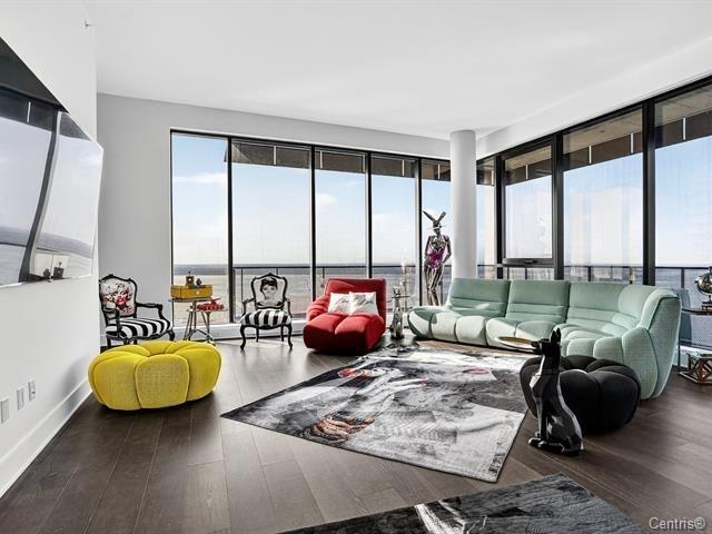Symphonia VIU Un lieu où la nature, l'architecture contemporaine et l'énergie du fleuve se rencontrent en parfaite harmonie. Vue panoramique, Plafond hauteur 11.4 pi, 2 stationnements,2 Storage et luxe et confort absolu définissent le quotidien. Ce somptueux condo de coin très ensoleillé, immense balcon avec une fenestration pleine hauteur offrant une vue spectaculaire à 180 degrés, baignant chaque pièce de lumière naturelle. La cuisine moderne séduit par son grand îlot central, ses comptoirs de quartz et ses électroménagers haut de gamme MIELE, un espace raffiné pour les épicuriens.L'aire de vie à plafond élevé (44763086)
