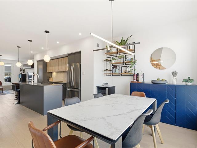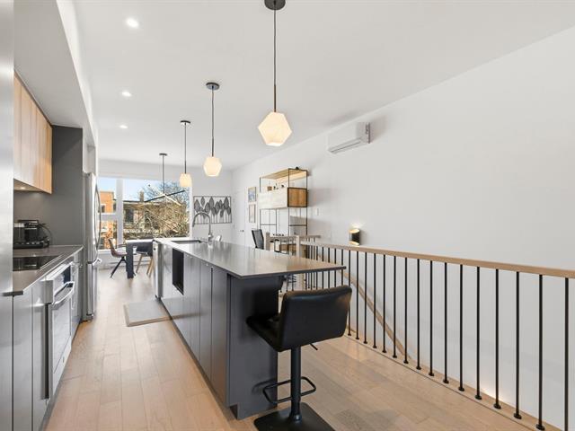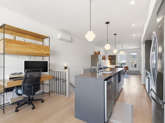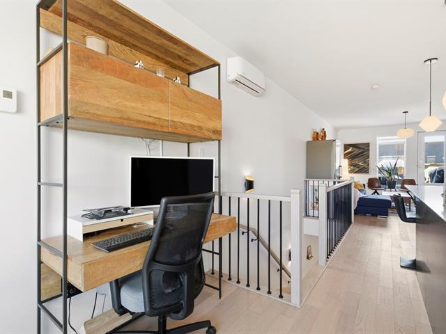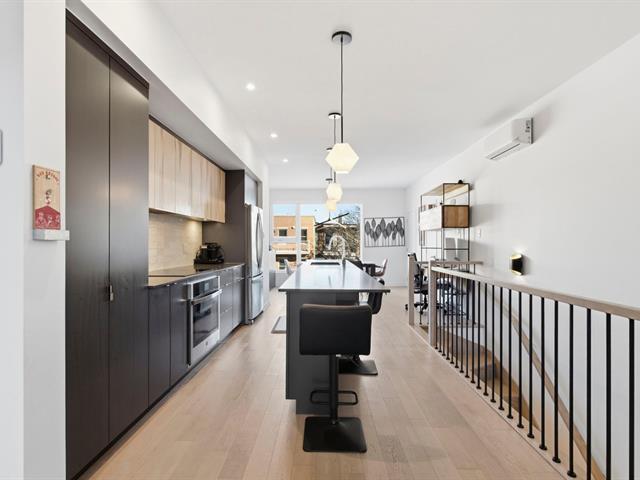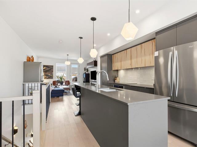 Stunning two-level apartment, built in 2022 in the TAK Village real estate project, in the heart of the vibrant Shop Angus district. Spanning nearly 1200 sq ft, it features three bedrooms, one with a walk-in closet, and a dedicated workspace. The main floor, located on the third level, boasts a light-filled living area with approximately 9-foot ceilings. The living room, dining room, and kitchen flow seamlessly together in a contemporary and functional layout. A charming terrace extends the living space, and a garage and storage space are included. Immediate occupancy is possible! (46218690)