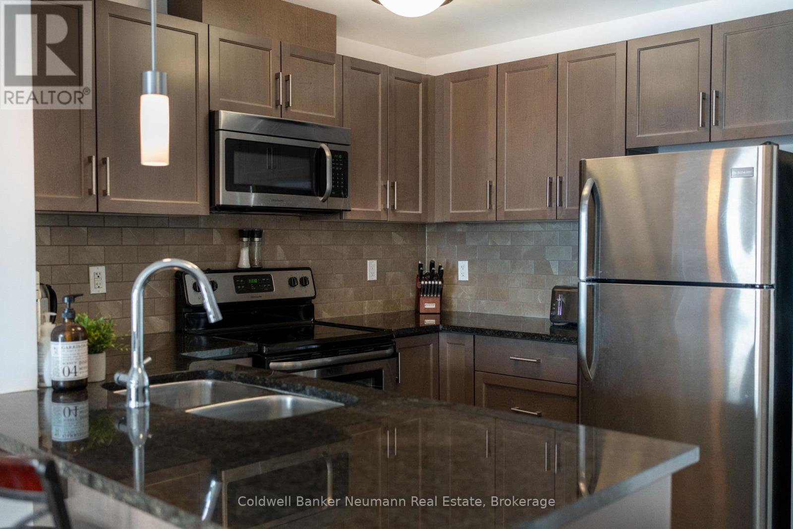 Welcome to Suite 311 at 106 Bard Blvd, an elegant 1-bedroom plus den residence offering elevated condo living in one of South Guelph's most desirable communities. This sun-filled suite enjoys a coveted south-east exposure, allowing natural light to pour in throughout the day. The open-concept layout is anchored by a beautifully updated kitchen featuring updated stainless steel appliances, refreshed cabinetry, and seamless flow into the living and dining areas-ideal for both everyday living and entertaining. Updated hardwood flooring adds warmth and sophistication throughout the living room. The spacious primary bedroom offers comfort and calm, while the versatile den is perfectly suited for a home office or guest area. The updated bathroom showcases a modern low profile shower, completing the suite with a polished finish. Step out to your private balcony and enjoy bright mornings and sun-soaked afternoons. Residents benefit from excellent building amenities, including a gym, party room and rooftop terrace with community barbecue, all set moments from parks, trails, shopping, and transit. Whether you're purchasing your first home, looking to simplify, or adding a low-maintenance investment in a sought-after area, this condo offers flexibility, strong value, and a great sense of community. It's the kind of space that feels right the moment you step inside. (42097201)