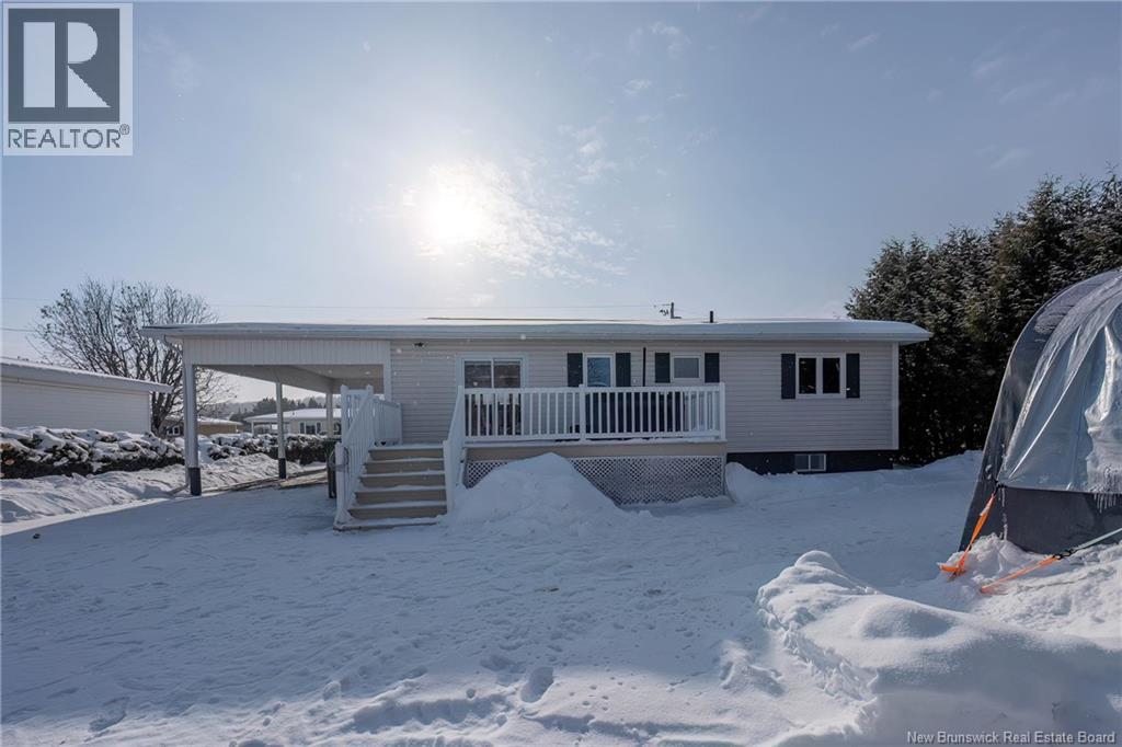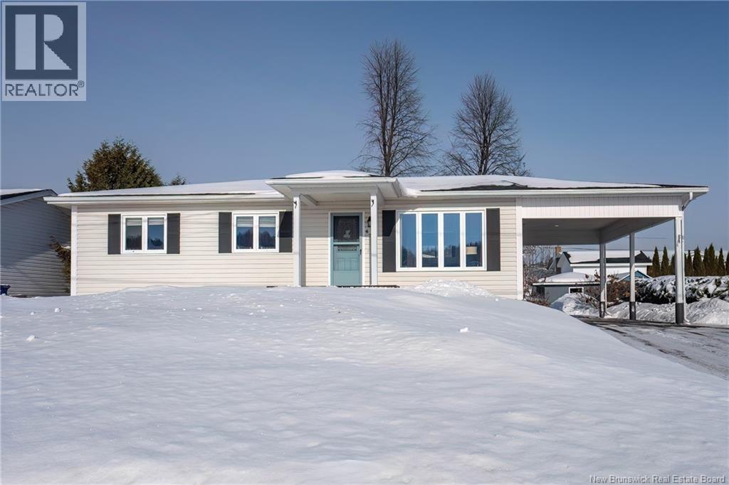 Welcome to this beautiful 4-bedroom bungalow, perfectly situated in one of Grand Falls most sought-after neighborhoods. Just 1 minute from Trans-Canada Highway access, and close to Sacre-Cur School, the hospital, and local amenities, this home offers the perfect combination of convenience, comfort, and charm. Inside, youll find a bright and updated kitchen, thoughtfully designed for modern living and family gatherings. The finished basement with a washroom adds extra living space, perfect for a family room, home office, or play area for the kids. Outside, enjoy a nice backyard with big mature trees. Has two storage sheds and plenty of room for children to play. The home also features a large deck and a carport, perfect for keeping your vehicle protected from snow and rain, along with a paved driveway for added convenience. Whether youre a first-time homebuyer, a growing family, or looking to retire in a peaceful and welcoming community, this home offers a wonderful lifestyle in an ideal location. A move-in-ready, well-maintained home with space, functionality, and charm, ready for its next owners to make it their own. (29465557)