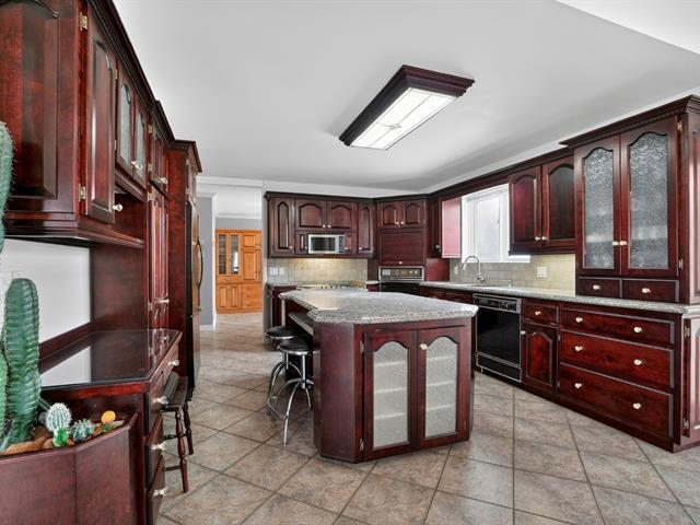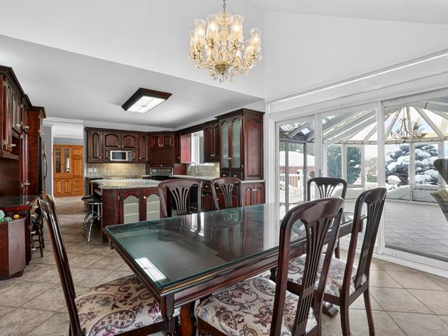 **Spacious home offering up to 4 bedrooms, located in SaintZotique. Features three separate garages, a veranda, and potential for bigeneration (to be verified) with a private entrance or professional space in the basement. Huge lot of over 25,000 sq. ft., three bathrooms, and installations ready for a spa and generator. A rare property with space, flexibility, and potential.** (49769434)