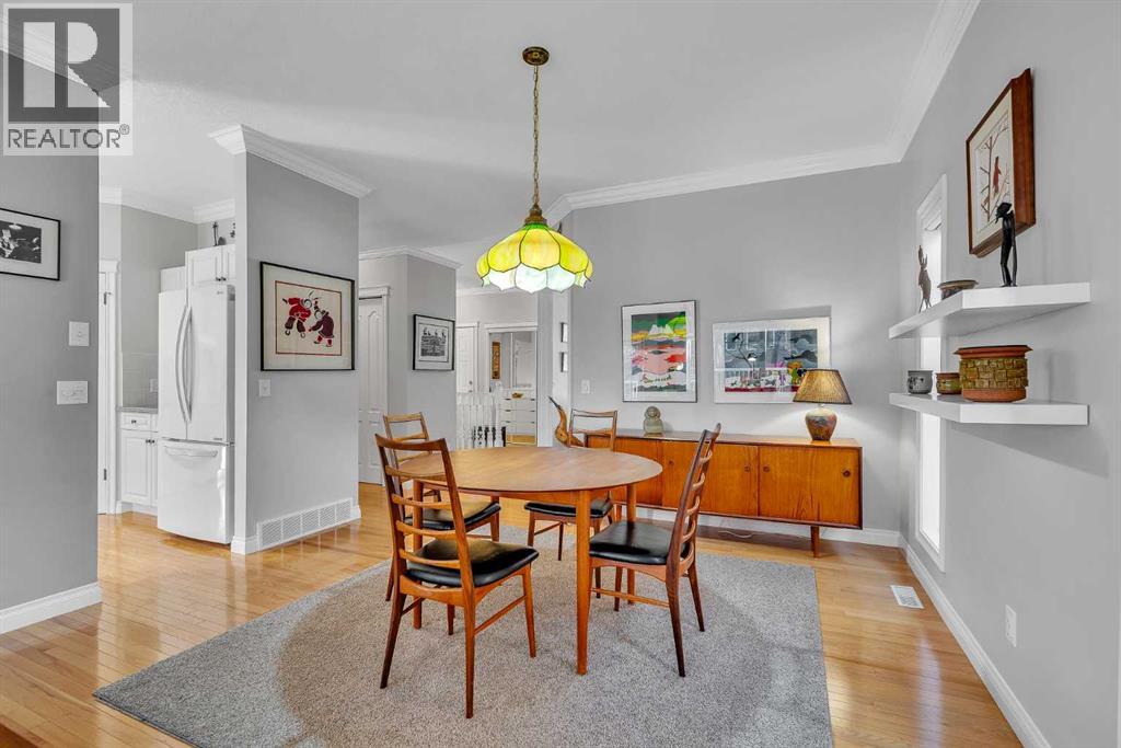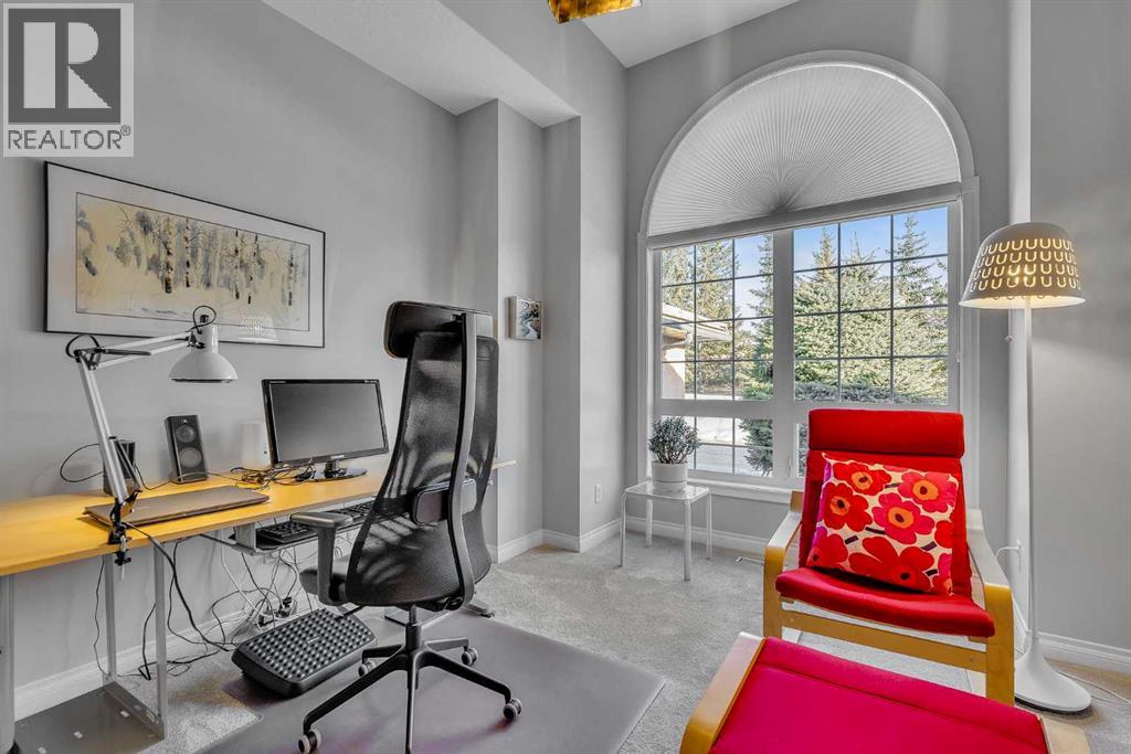 Natural light and timeless design, as well as one of the biggest floorplans in this complex, give this beautiful Shawnessy villa style and comfort in this sought-after adult (35+) estate area. Attractive landscaping frames the front porch, and inside, transom windows flood a spacious entryway with sunshine from the east. A front room makes a great home office, and features statement floor-to-ceiling windows that bring in the morning light for a perfectly illuminated workspace. The main living space begins with a sunny and open dining area. Clean lines and gorgeous hardwood balance warmth and elegance as you continue into the open living room. A gas fireplace is the focal point, inviting guests to cozy up for great conversation. In the kitchen, a monochrome palette creates an understated yet sleek aesthetic complete with white appliances. A full pantry is a desirable element, and counterspace is plentiful; sure to impress the chef of the household. A breakfast nook steps out to the balcony, with dappled shade from the treed courtyard – an ideal setting for winding down as you take in the sunset skies to the west. This level holds the primary bedroom, which is a peaceful private retreat. This secluded space includes a huge walk-in closet and an ensuite with a soaker tub and separate stand-up shower. A functional layout has the powder room and laundry just next to the entry from the double attached garage to finish this level. Downstairs, the finished basement provides tons of additional living space, with a large family room, another bedroom with a walk-in closet, and another full bathroom. The utility room also offers a massive storage area for all your seasonal items. This home has a central vac and air conditioning, as well as a new hot water tank. The complex itself is well laid out, with privacy and quiet as priorities. This home is very near the recycling and waste sheds and visitor parking, perks you and your guests will appreciate. This neighbourhood is popula r for its green space, with pathways beginning only steps from your door and winding all the way to Fish Creek Park. Convenience is also a benefit; the Shawnessy shopping area is just minutes down the road, offering a plethora of stores, services, and amenities. The C-train is also nearby, giving commuters the option to hop on the LRT, or drive downtown via convenient access to Macleod Trail. Proximity to major routes like Stoney Trail put any area of the city in easy driving distance, and this community is also near Highway 22X, where you will find iconic Spruce Meadows, as well as an easy escape west into the mountains for your favourite outdoor activities like camping, hiking, mountain biking, and skiing. With 2195 sqft of developed space, this floorplan is a rare find, call today. (31613093)