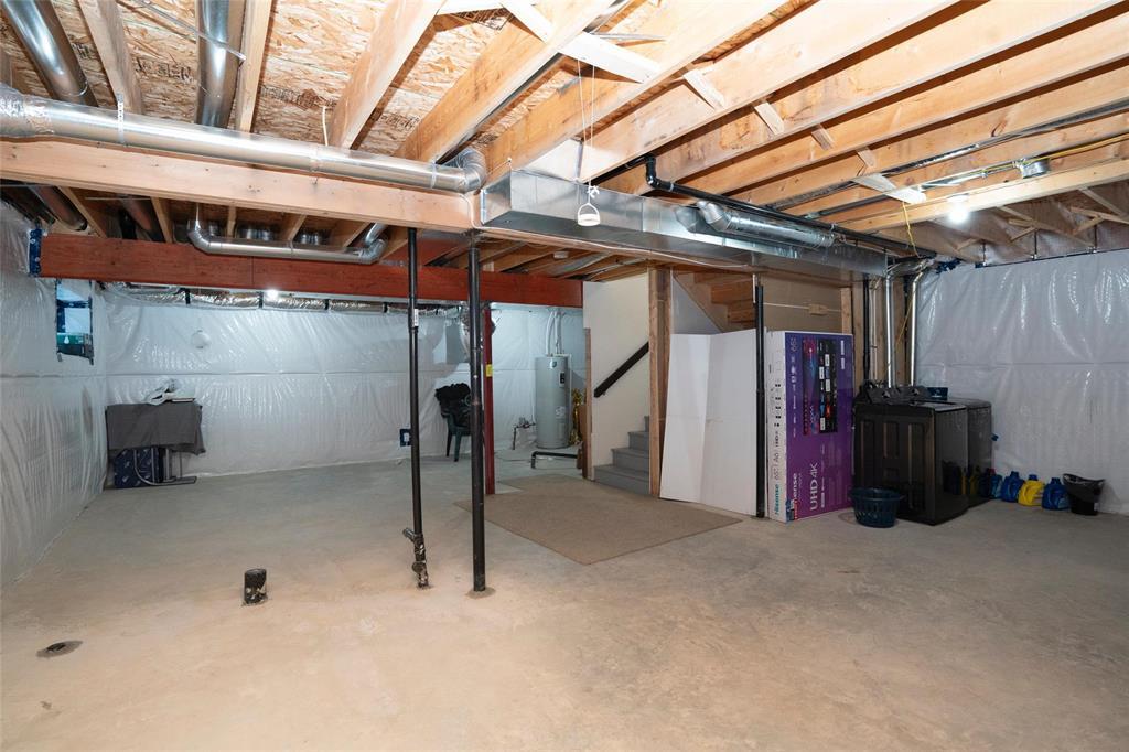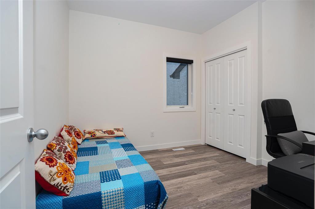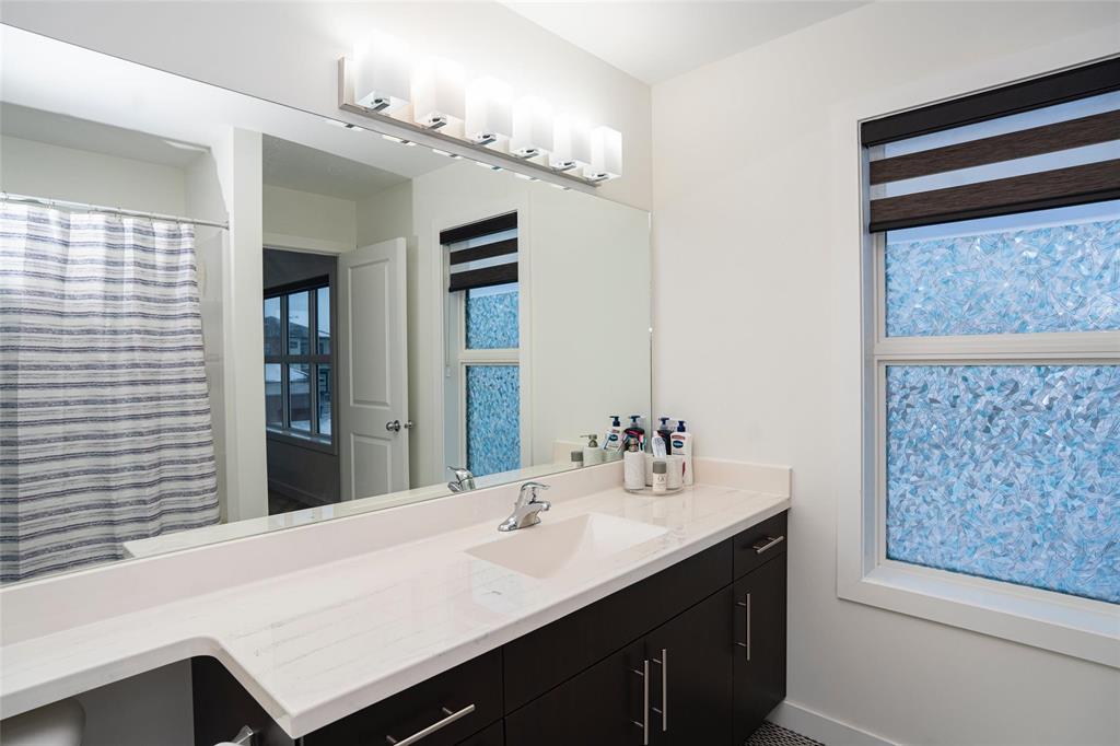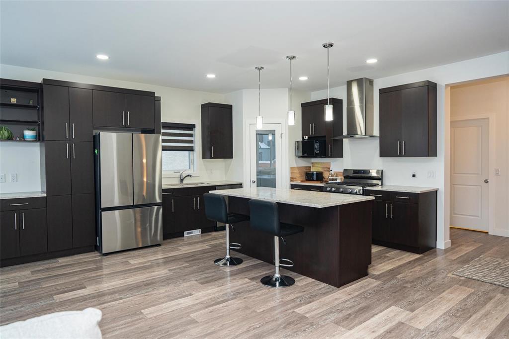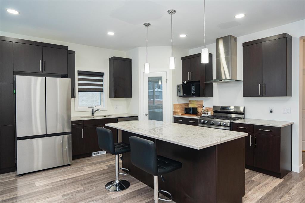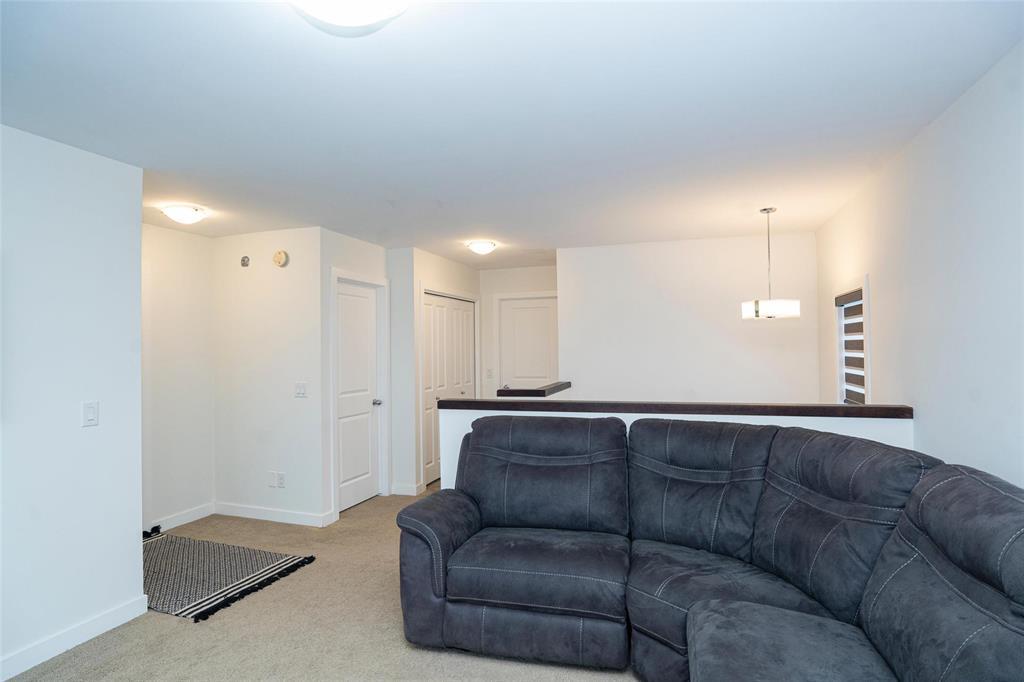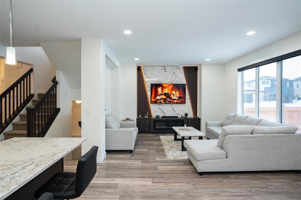 1R//Winnipeg/S/S Now. Offers presented as received. Welcome to this beautifully maintained, move-in-ready home in the most desirable Prairie Pointe community. This modern two-storey home offers 4 bedrooms, 3 full bathrooms, a full basement, and an oversized double attached garage (25.5 x 23 ), plus many quality upgrades.The main floor features 9-foot ceilings, vinyl plank flooring, tri-pane windows, abundant natural light, and an open-concept layout with a stylish cantilever design. The upgraded kitchen includes dark mocha soft-close cabinetry, 40 uppers, quartz countertops, large island with pendant lighting, pot lights, gas line for stove, and water line for fridge. A main-floor bedroom and full bath add flexibility.Upstairs offers three spacious bedrooms, including a primary suite with walk-in closet and deluxe ensuite, plus a full bath and a bright loft with oversized window ideal for office or play space.Additional highlights include upgraded vinyl in baths, cultured marble counters, upgraded front and garage doors, piano window, oversized patio door, added living space, and basement laundry with 20-amp outlet.This turn-key home has it all. Book your private showing today. (231934677)