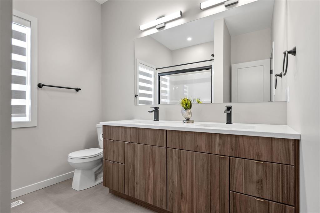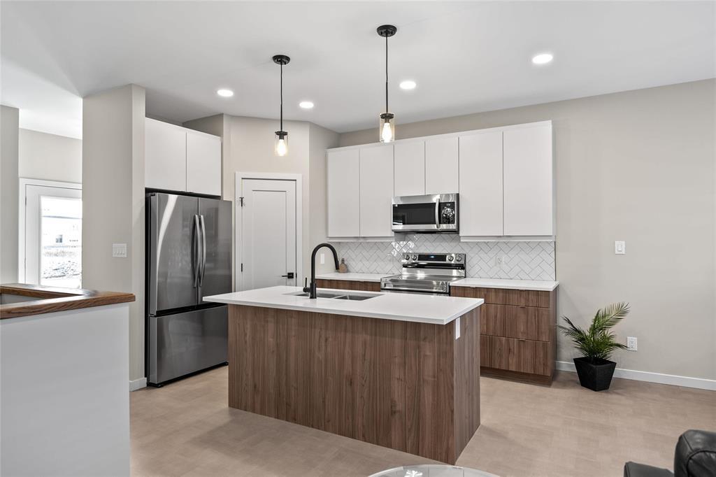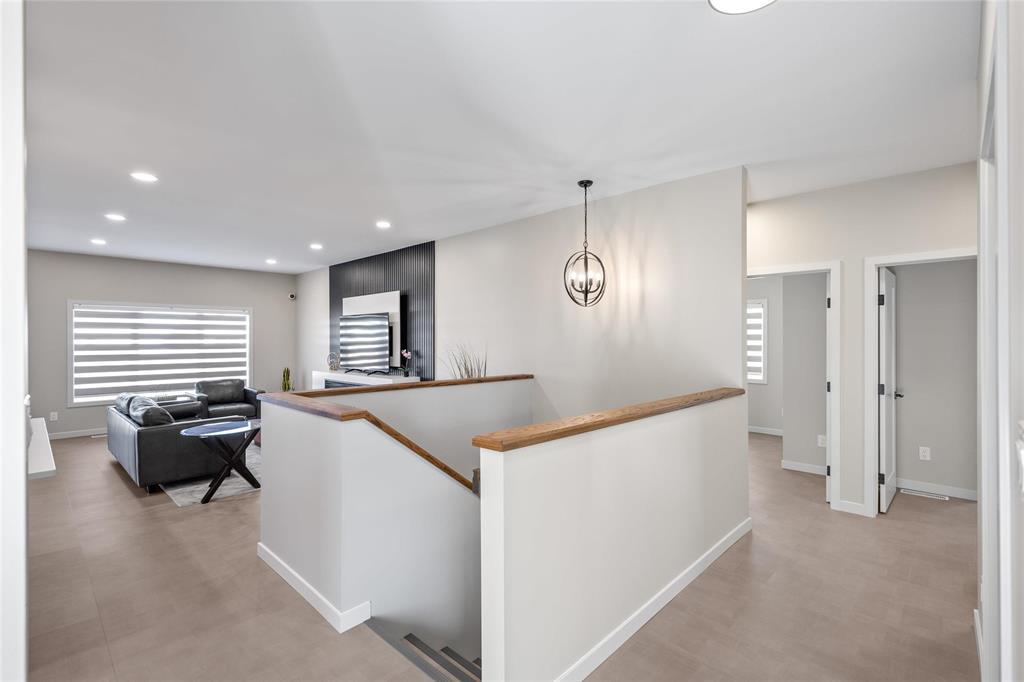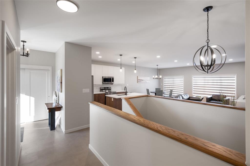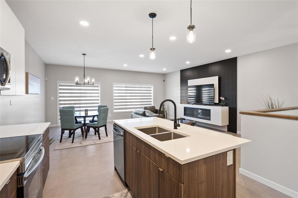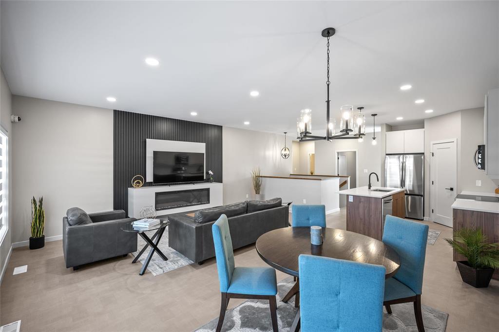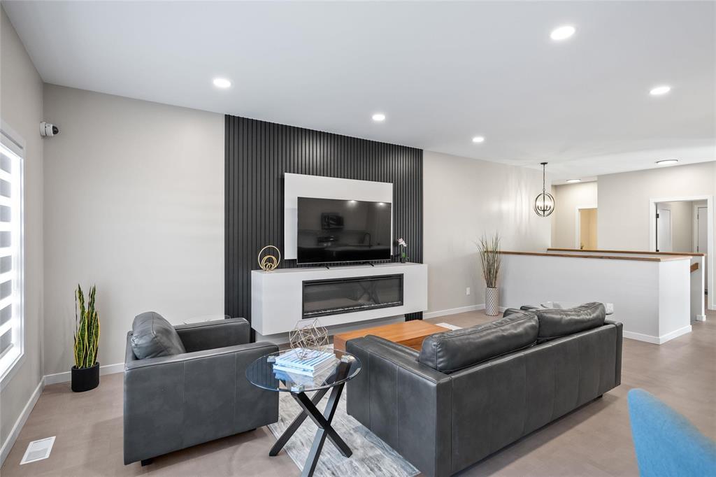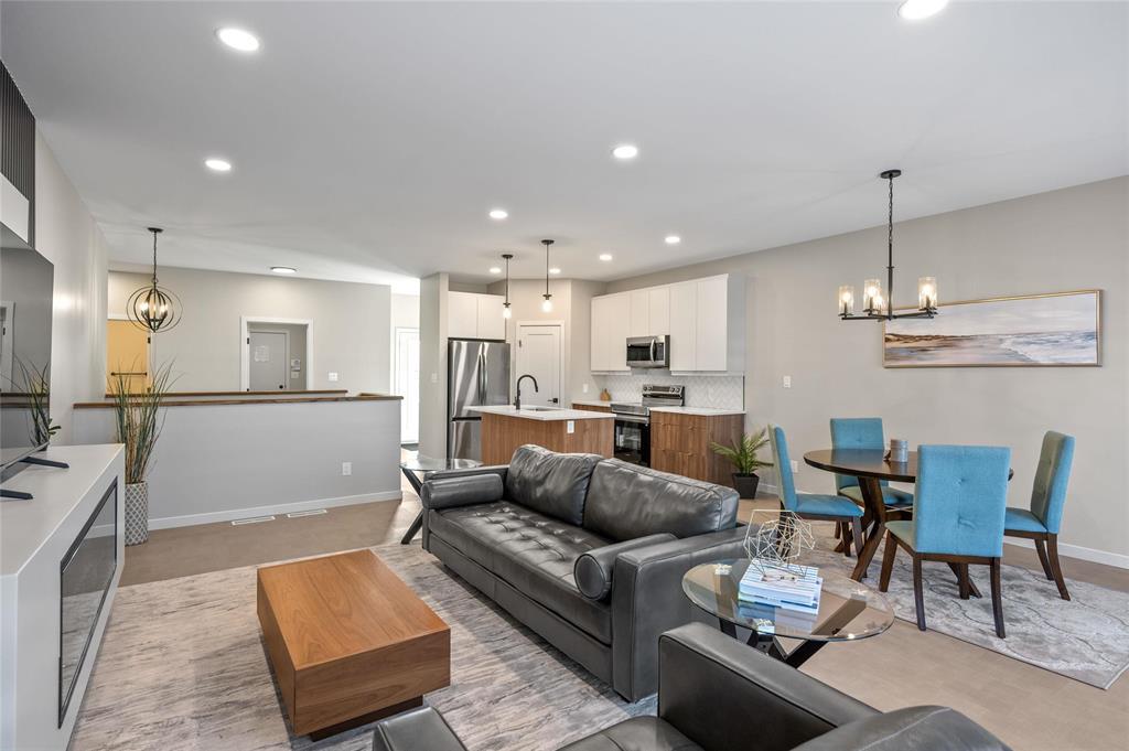 R15//West St Paul/Taxes to be assessed. Affordable luxury can be yours with this beautifully crafted new bungalow! Ready for quick possession, this home offers modern comfort and style throughout. The open-concept main living area impresses with 9 ceilings, recessed lighting, and luxury vinyl plank flooring, centered around a striking feature wall with a 50" electric fireplace. The contemporary kitchen includes a corner pantry, two-tone cabinetry, quartz countertops, tiled backsplash, and a spacious island plus stainless steel appliances: fridge, stove, dishwasher, and over-the-range microwave. The primary bedroom features a walk-in closet, a stylish feature wall, and a 4-piece ensuite. Two additional bedrooms and another full bath complete the main level. Convenient main-floor laundry is located in the generous mudroom, which connects to the 22' x 22' attached garage with concrete driveway, walkway, and garage door opener. The full basement with oversized windows offers great potential to double your living space. Upgraded lighting, black plumbing fixtures, Delta MS foundation wrap, window blinds, alarm system, and New Home Warranty add even more comfort and peace of mind. (231934770)