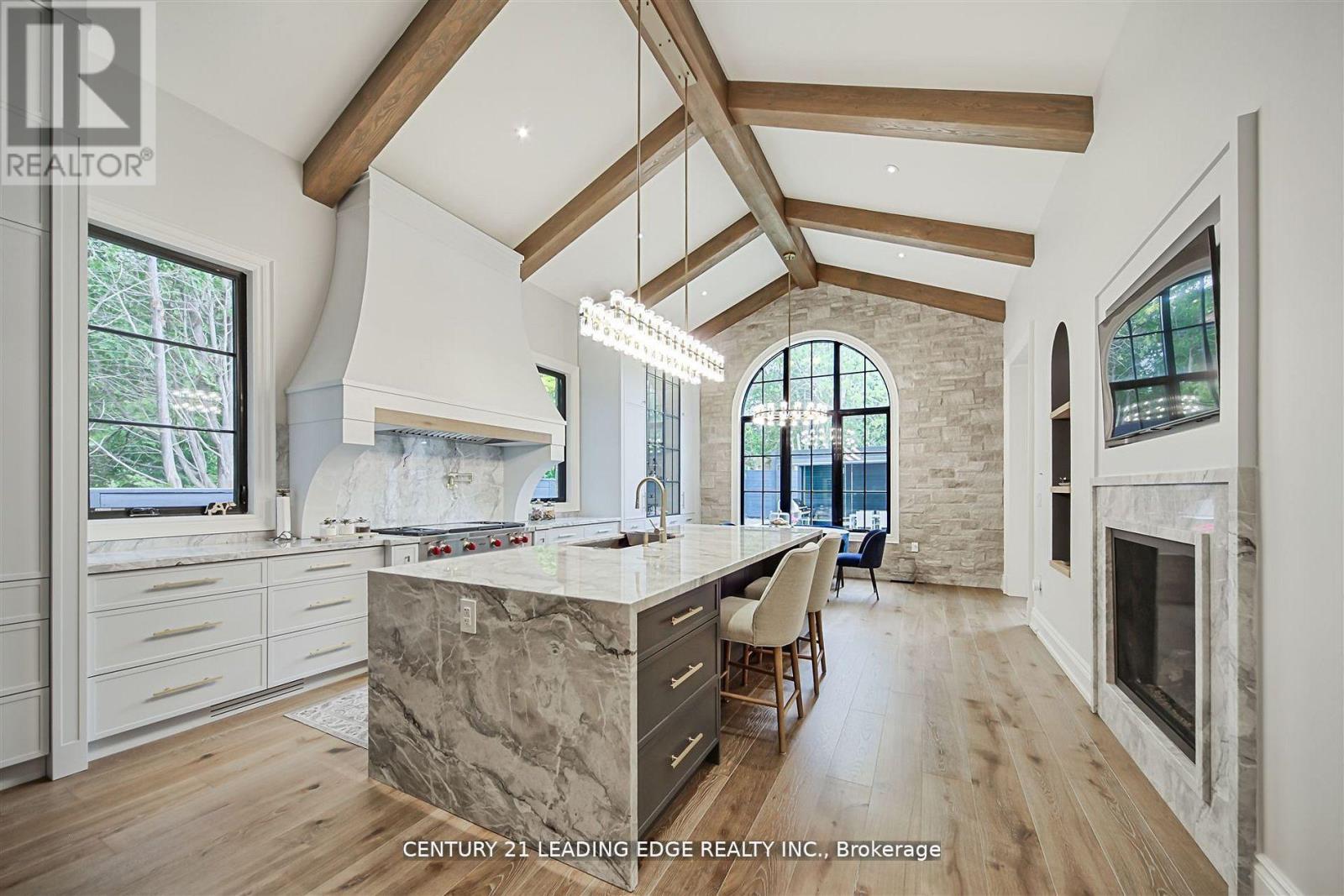 An Incredible French Country architectural masterpiece with timeless appeal, epitomizes luxury blending elegance and comfort, meticulously curated. A prestigious Bungaloft with a total living space of 6350 sq.ft. with approx 4000 sq.ft. above grade and a 2400 sq.ft. lower, at grade level walkout, with huge windows. Opulent Exterior is Natural Indiana Limestone and Smooth Hard Limestone, Heated Driveway, Arched Hallways and Doorways, soaring 12 ft Ceilings, plus 14 and 15 ft arched and cathedral ceilings on the main floor, Elevator, 3 Large Fireplaces, A fantastic culinary designer Kitchen, straight out of a magazine, Sub Zero, Wolf, Cove, Bosch Appliances, Miele and LG Washers/Dryers, Extensive Millwork, Backyard Oasis with huge covered/automatic opening, modern LED lighting, Patio Pergola w/outdoor Kitchen. Too Many upgrades to list. Must come and see. Details through-out are impeccable.Steps to all amenities such as Donalda Club and top-rated private schools, Crescent School, Crestwood, Bayview Glen, and Toronto French School, Granite Club. DVP, Hwy 401, Toronto Botanical Gardens. (42097920)