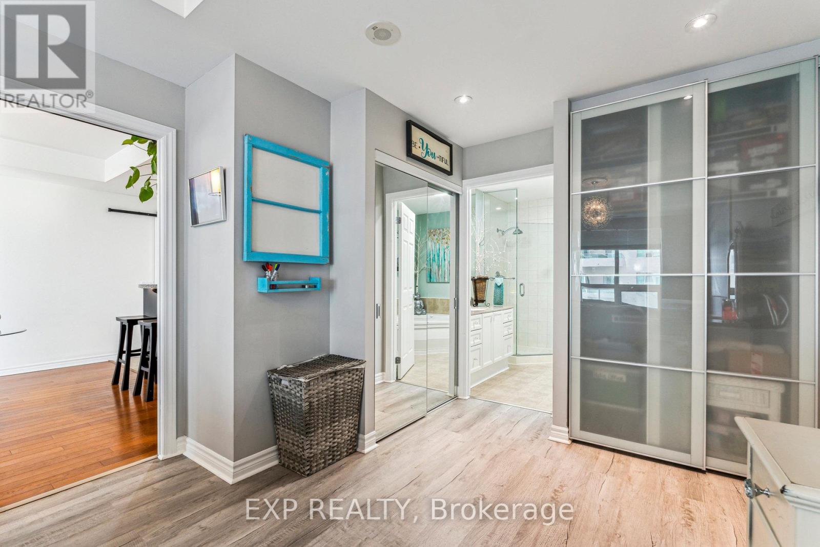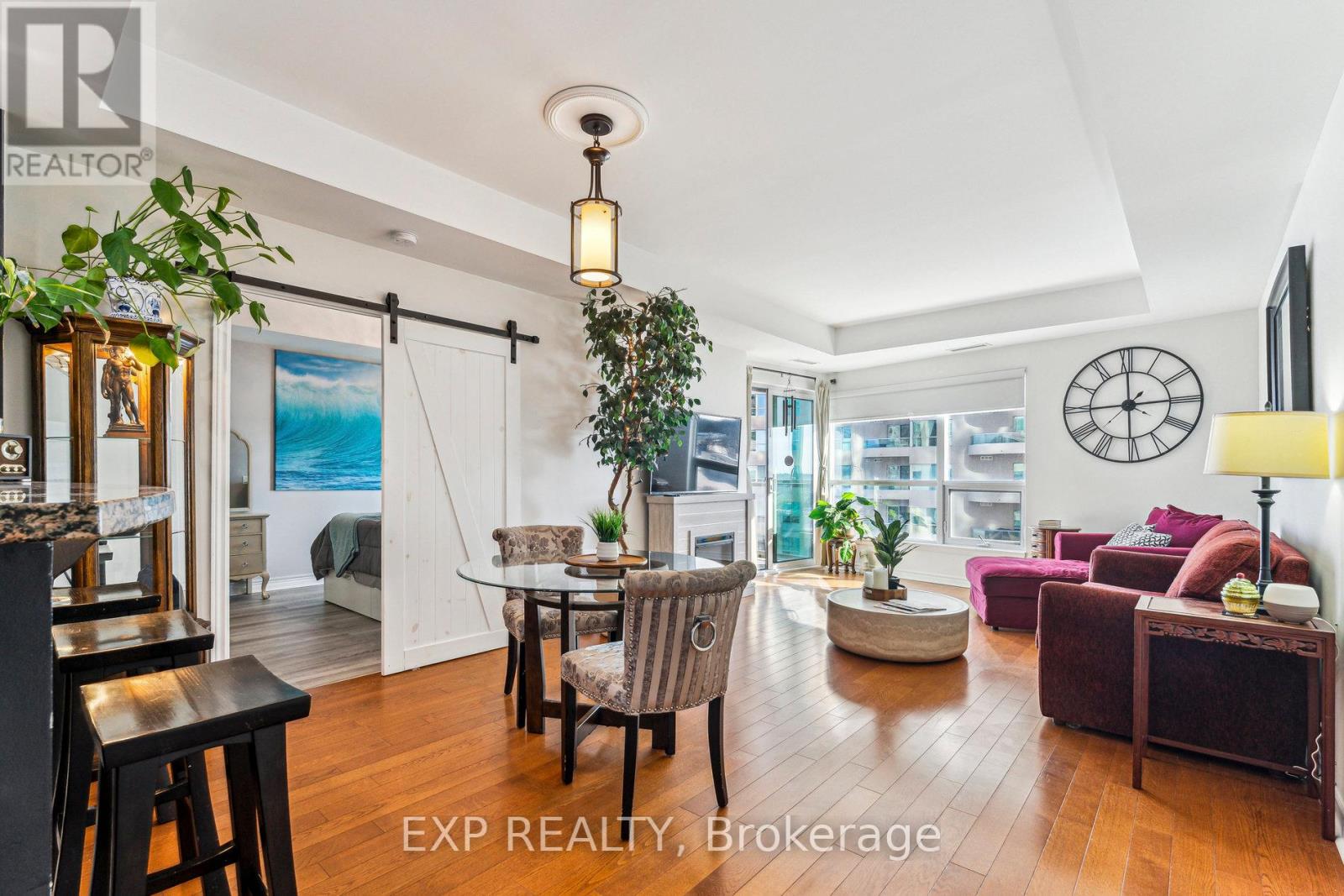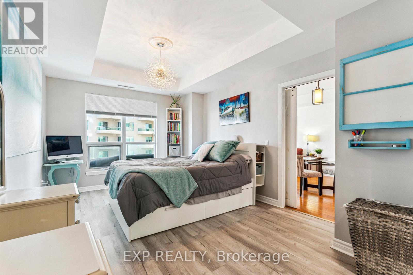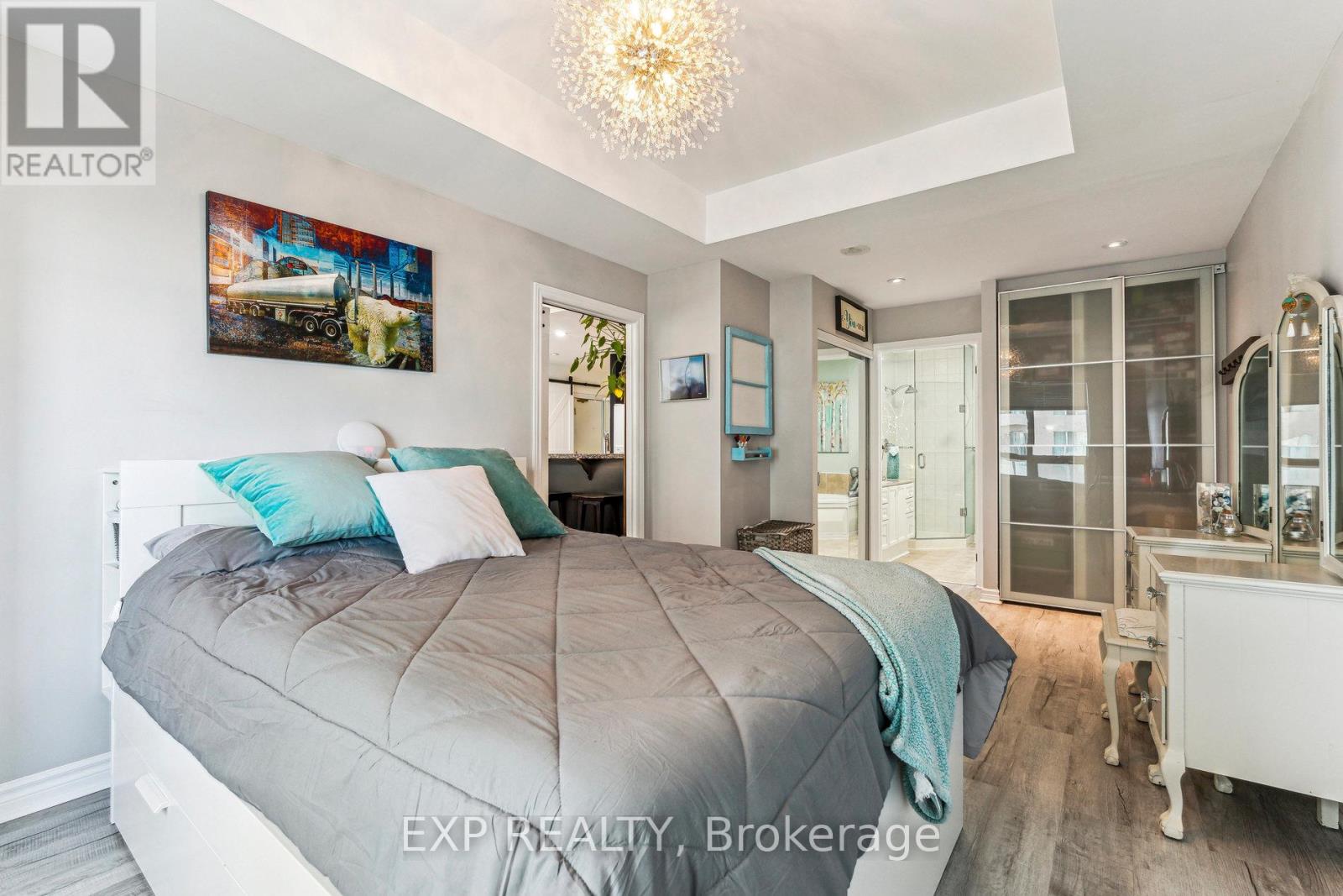 Welcome to waterfront living at The Water View, located at 6 Toronto St. This stunning 1 Bedroom, 1.5 Bathroom "Sandpiper" model offers approximately 900 sq. ft. of bright and spacious living in one of Barrie's premier condo communities, perfectly situated along the beautiful shores of Kempenfelt Bay on Lake Simcoe. Experience the ultimate in convenience and comfort with indoor parking, a private locker, and a variety of exceptional amenities. Enjoy the best of Barries waterfront lifestyle with the marina, Simcoe County trails, and vibrant downtown just steps away. Plus, with easy access to the GO Train, public transit, and major commuter routes, traveling for work or leisure is a breeze. Inside, this suite boasts a sunny southern exposure, filling the open concept living space with natural light. The upgraded kitchen features elegant cabinetry and a granite breakfast bar that overlooks the spacious living and dining area, complete with beautiful hardwood floors. Step out onto the private balcony to take in the breathtaking views of Kempenfelt Bay and the city marina. The bright primary bedroom offers a relaxing retreat, featuring his and hers closets for ample storage and a Jacuzzi ensuite with a separate glass shower for added comfort and luxury. The Water View community offers a wealth of fantastic amenities, including a recently and elegantly remodelled lobby, visitor parking, a guest suite, party room, games room, indoor pool, hot tub, sauna, gym, locker room with showers, a library, and a welcoming lobby. This exceptional property combines lakeside tranquility with urban convenience, don't miss your chance to enjoy the best of both worlds! (42098122)