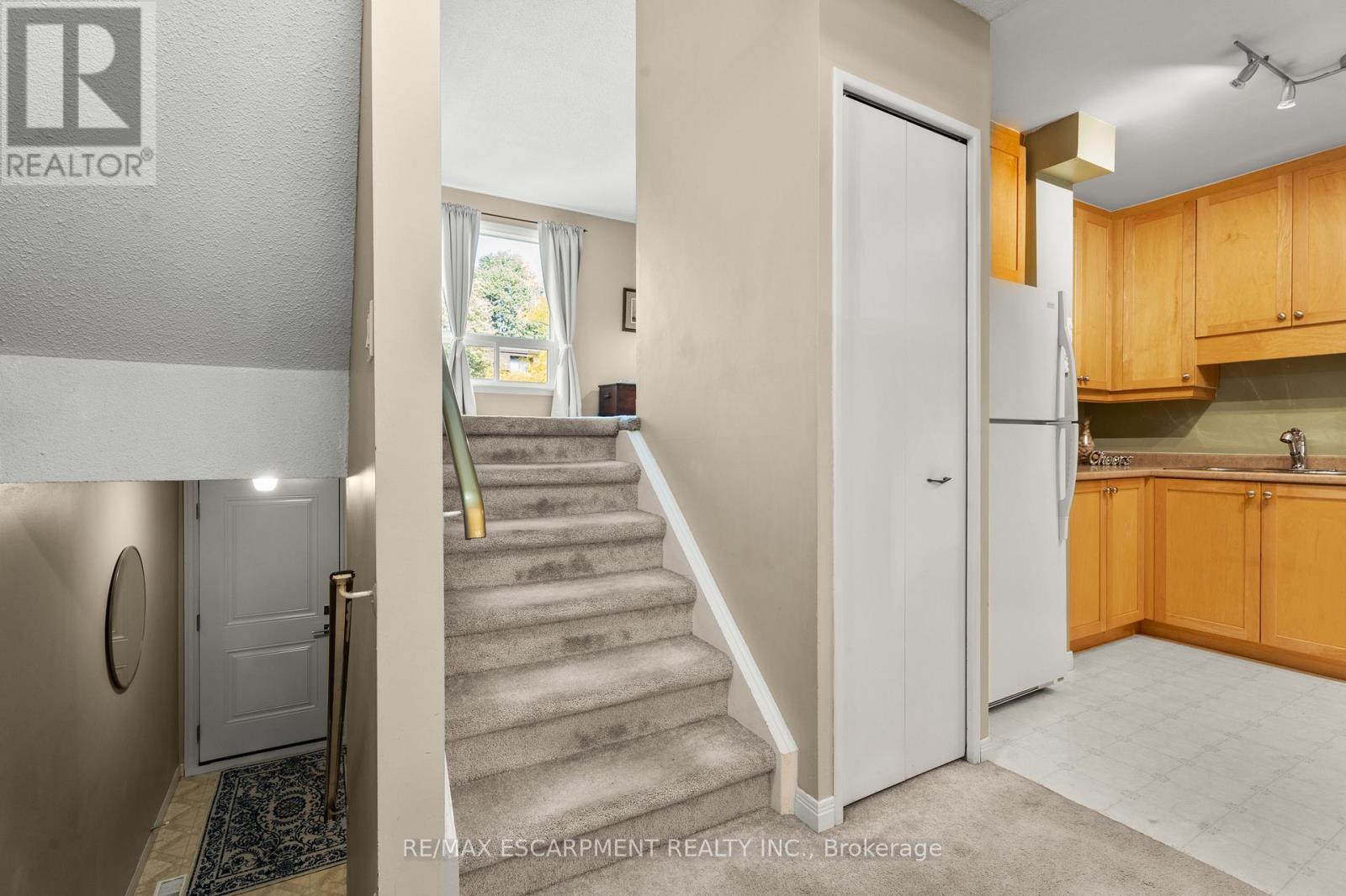 Welcome to this beautifully maintained end-unit townhome in one of Hamilton's most desirable West Mountain communities, set within a family friendly condo complex featuring an on-site park and a comprehensive condo fee that includes Cable TV, High Speed Internet, Water, Building Insurance and Maintenance, Common Elements, and Ground Maintenance/Landscaping. Designed with a unique split-level layout, this home offers the perfect balance of openness and separation across its bright, spacious levels. The welcoming foyer leads up to an eat-in kitchen and dining area with updated cabinetry and direct access to the fenced, low-maintenance yard - perfect for morning coffee or weekend BBQs. Just above, the living room features large windows that fill the space with natural light. The upper levels include a primary bedroom retreat complete with an updated 4-piece bathroom, followed by two additional bedrooms on their own level, offering privacy and flexibility for family, guests, or a home office. The double-deep driveway and garage provide parking for three vehicles. The unfinished basement includes laundry facilities and plenty of storage space. Recent updates include attic and basement insulation (2023), new windows and doors (2025), a furnace replaced 4 years ago, and a whole-home humidifier installed on the furnace this past November. Located close to parks, shopping, schools, and highway access - this home combines comfort, convenience, and value in a sought-after West Mountain neighbourhood. (42098248)