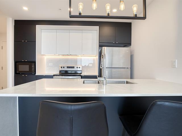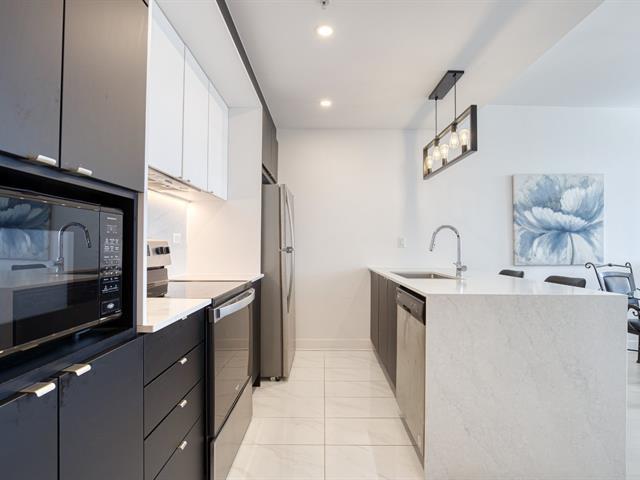 Located in the prestigious Westbury Phase 4, this open concept unit located on the seventh floor offers floor-to-ceilings windows for ample natural light and impeccable views of Saint Joseph's Oratory and surrounding mountains. Luxurious kitchen with a stunning quartz waterfall island and quartz backsplash. Modern bathroom upgraded with quartz countertops, undermount sink and spacious shower. Interior parking and storage space included. Perfectly situated, just steps away from Namur and Plamondon metro stations, Royalmount shopping center, hospitals, shops, restaurants, and parks. (55734597)