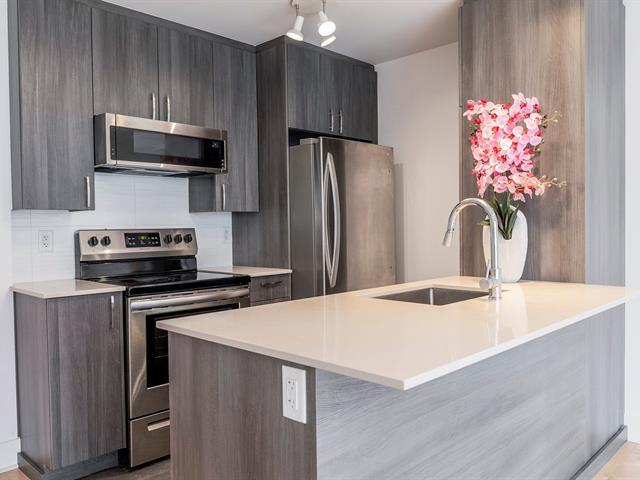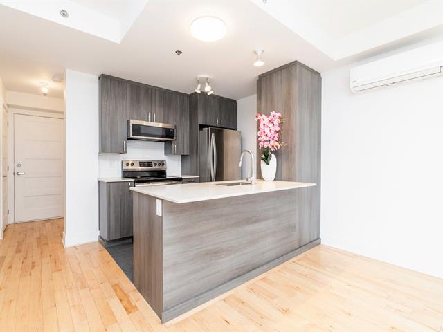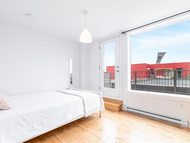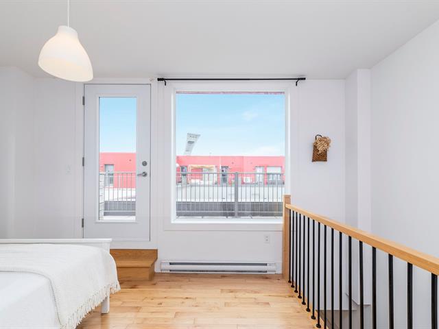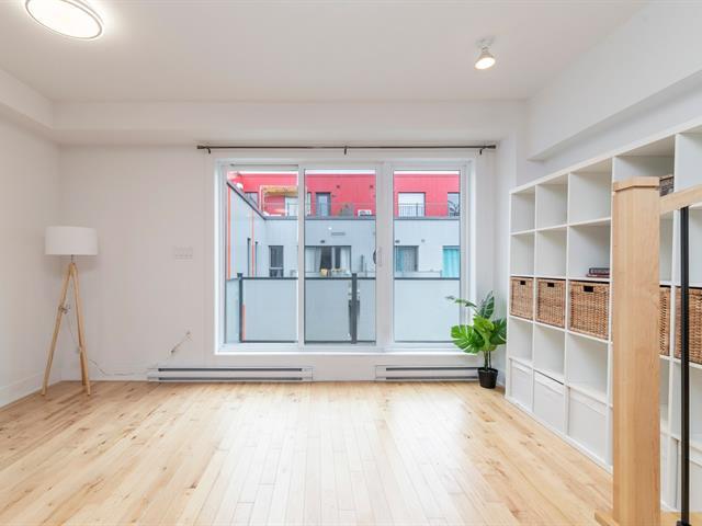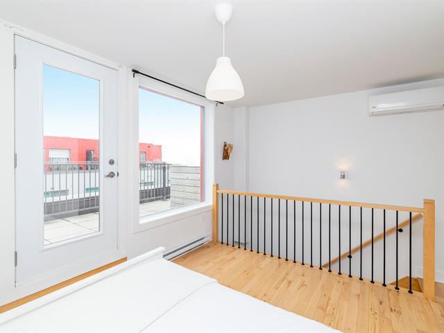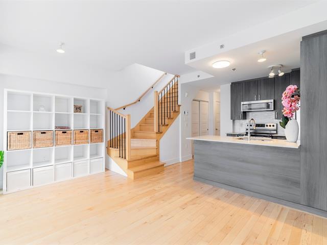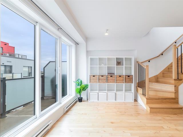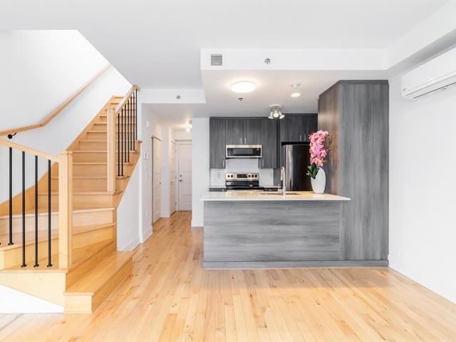 Discover this magnificent two-story condo, combining space, light, and functionality. It features a bedroom, a bathroom, and an open-concept living area with a kitchen, dining room, and living room. The highlight: a private terrace adjoining the bedroom, perfect for relaxing, and a balcony with city views. With indoor parking, it's ideally located between Rosemont and Hochelaga, near the Pie-IX metro station, the Botanical Garden, the Olympic Stadium, and the lively Masson and Ontario promenades. In a modern building, this unit impresses with its contemporary design and high-quality finishes. Don't miss out! (56803679)