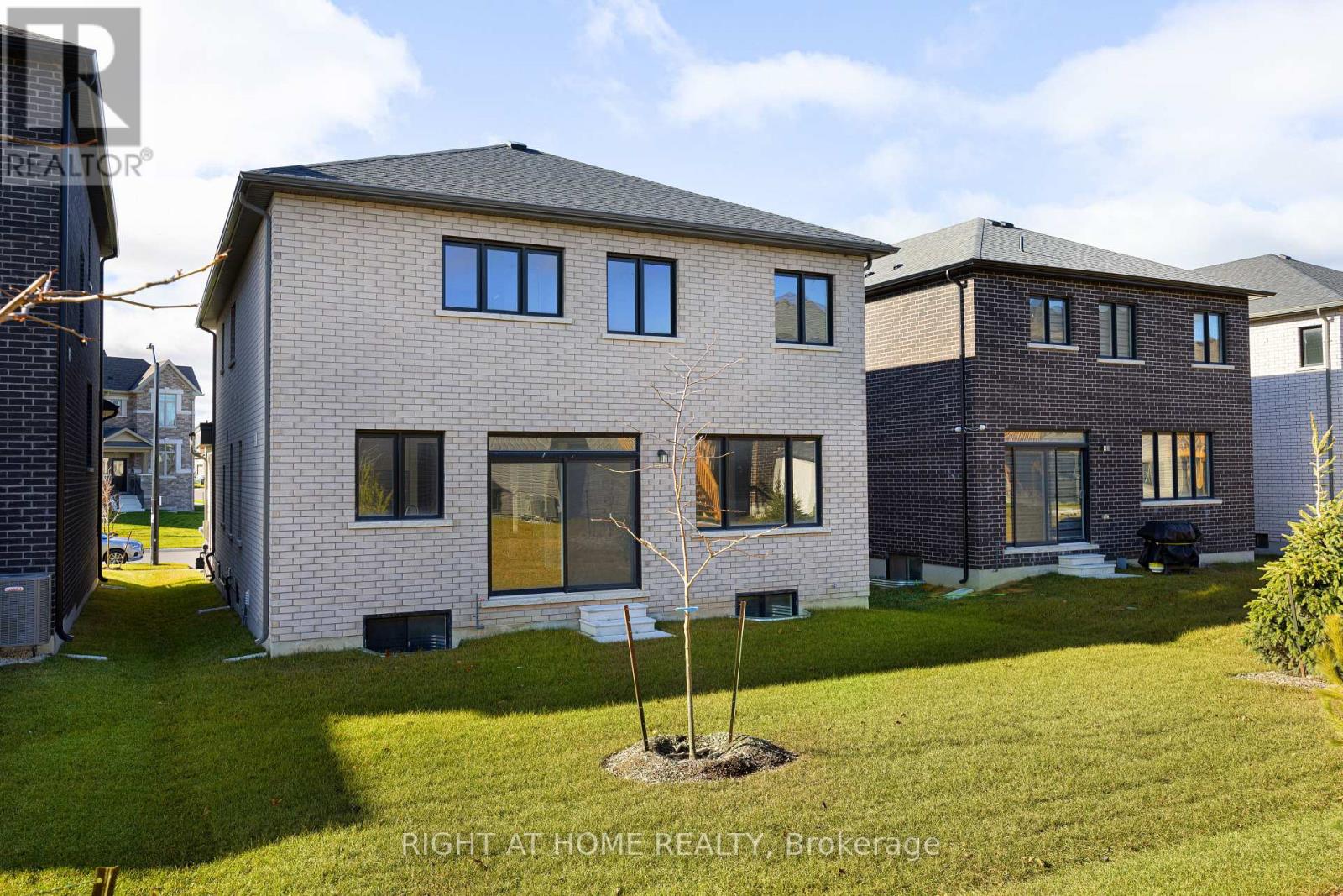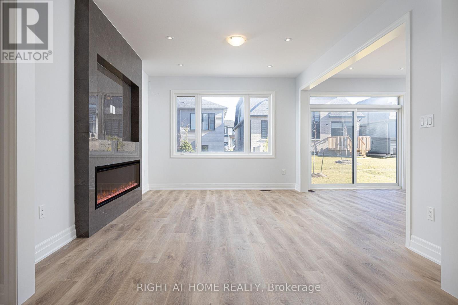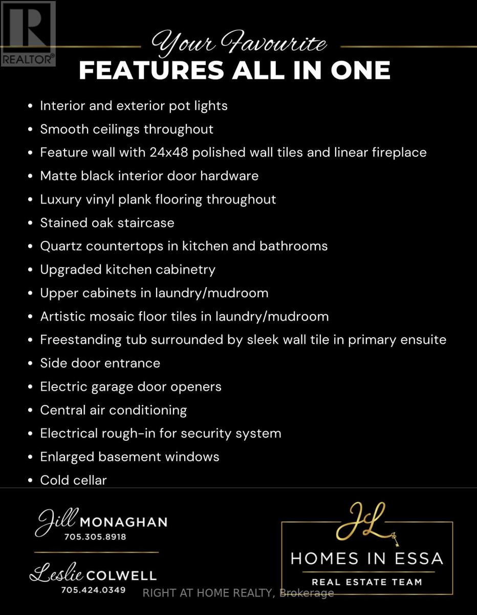 Welcome to River's Edge-where modern design meets everyday comfort. This stunning 2-storey brick and stone home offers 2,715 sq. ft. of beautifully finished living space with 4 bedrooms and 3.5 baths. From the dramatic stone entrance and spacious sun-filled foyer, luxury vinyl plank flooring in a stylish light tone, oak staircase, smooth ceilings throughout, and sleek matte black door hardware, every detail is thoughtfully designed. The chef-inspired kitchen features quartz countertops and backsplash and upgraded cabinetry, positioned next to the dining room. An impressive 8-ft sliding door floods the space with natural light and provides seamless backyard access. The open-concept living and great room create an inviting main living area, highlighted by a sleek linear fireplace with custom tile surround. The living room offers flexibility as a playroom or home office. A large laundry/mudroom with upper cabinetry and mosaic tiled floors adds convenience and style. Upstairs, enjoy four generous bedrooms, a reading nook, and spa-like en-suites, all with quartz counters, including a luxurious primary retreat with free-standing tub and glass shower. Additional conveniences include garage door openers, central air conditioning, pot lights inside and out, and a side entrance to the unfinished basement with enlarged windows and bathroom rough-in, offering excellent potential for future finishing. Electrical rough-ins for a security system and EV charger add extra convenience. Perfectly situated just minutes to the beach and close to walking trails, this home blends style, functionality, and location. Quick closing available-just move in and enjoy! (42098507)