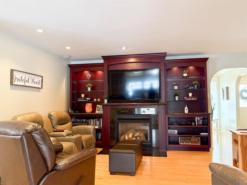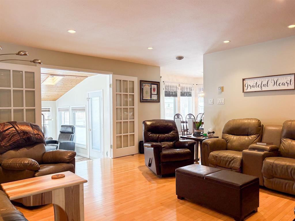 R35//Winkler/Showings Start Sat. Feb. 7th. OPEN HOUSE Sat. Feb. 7th 1-3pm.Beautifully established half acre yard on a quiet bay in the heart of Winkler! This property features a tastefully updated 2,300 sf bungalow w/ 4 main floor BRs/offices (with picture windows), 3 baths & finished bsmt (936sf) with spacious rec room and concrete crawl space. A timeless design w/ hardwood floors, crown mouldings, cherrywood Decor kitchen, family room w/ gas fireplace & built-ins, & formal dining & living rooms. The spacious primary BR incl a walk-in closet & ensuite. The 4-season sunroom comes w/ heated ceramic tile, skylights & full slate of windows that walks out to the custom tile patio (16 x 24 ) overlooking the sprawling backyard. Other features incl a H/E gas furnace, on-demand gas water heater (2025), C/A (2024), newer 200A panel, mudroom & main floor laundry w/ heated tile, in-ground sprinkler system, double garage w/ epoxy floor, workshop area & RV parking, 2 -sheds, and a fence (2023) along the W property line. Inclusions: Fridge, stove, DW, washer, dryer, bsmt FP. (231935298)
