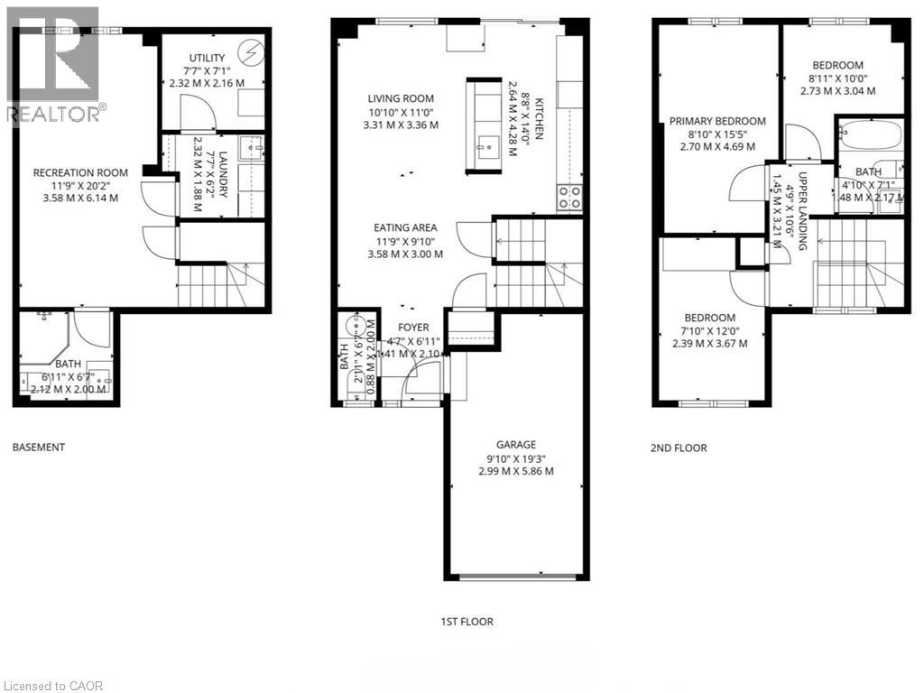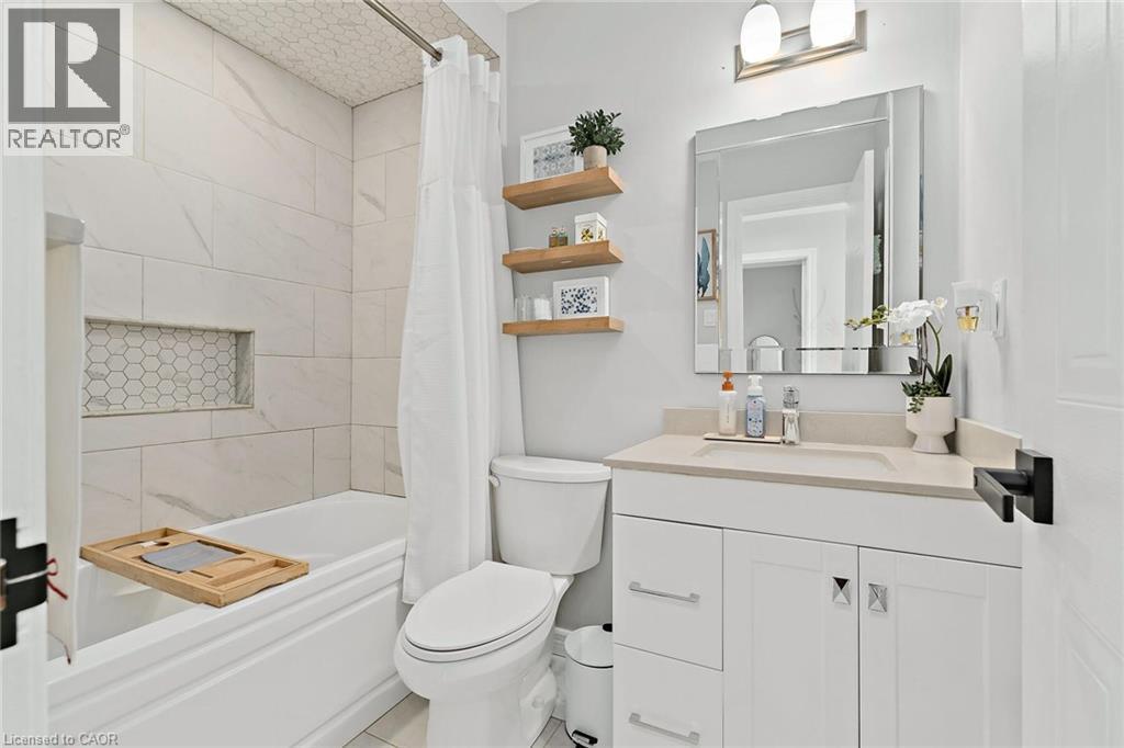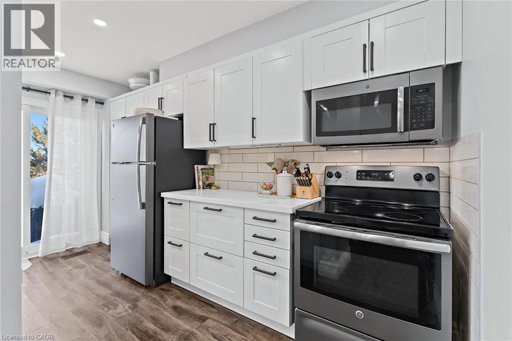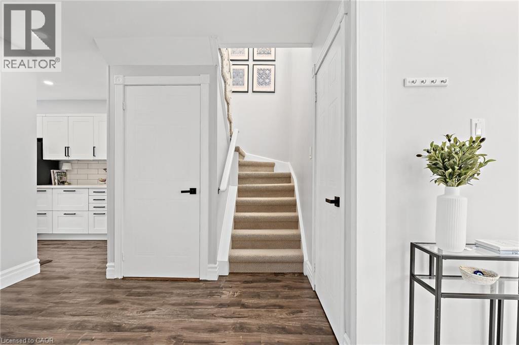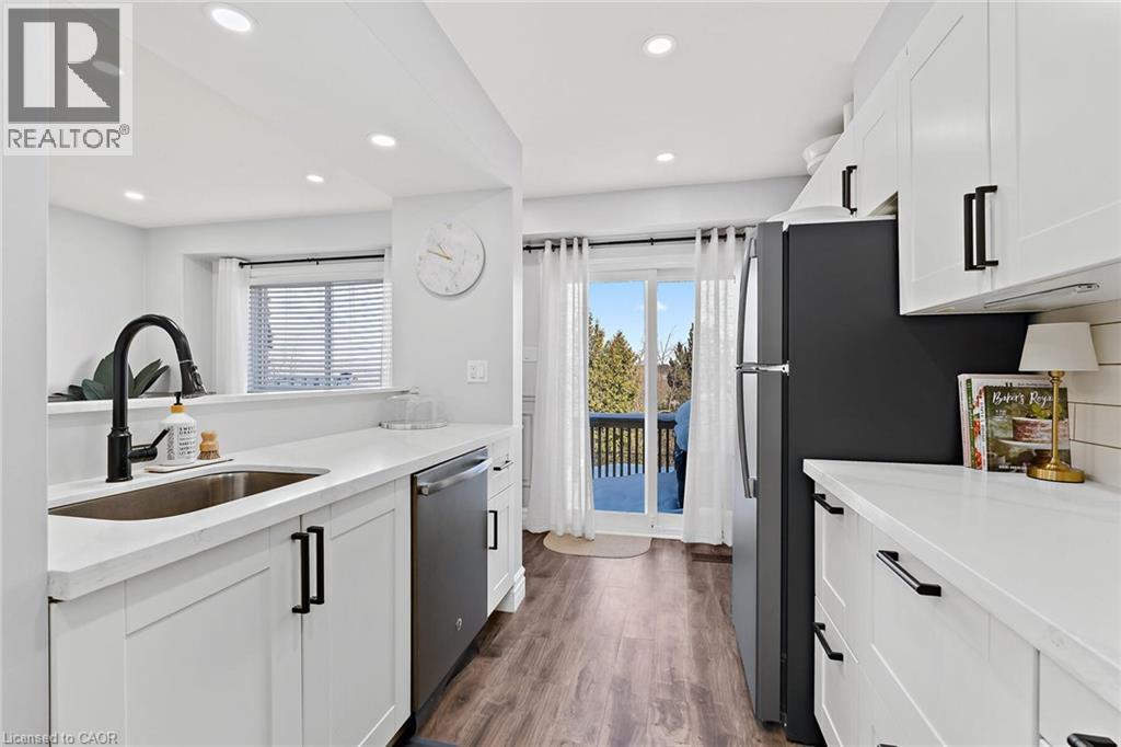 Fully renovated from top to bottom and move-in-ready townhome is a standout in its community. With stylish finishes, a finished basement, and low-maintenance living, this 3-bed, 3-bath, and 2-parking home is ideal for first-time buyers, downsizers, or investors seeking turn-key value. The welcoming foyer features stylish tile flooring (2020), a 2-piece bathroom, and direct access to the garage. The open-concept main level features laminate flooring, pot lights (2020), and elegant wainscoting throughout. The charming kitchen features stainless steel appliances, quartz countertops (2020), a ceramic backsplash, a walkout to the deck (2021), and a quiet backyard with no rear neighbours. Upstairs offers new laminate flooring (2023) and three well-sized bedrooms. The primary bedroom features a wall-to-wall closet and a large window overlooking the backyard. The second bedroom also overlooks the backyard and includes a closet organizer and pot lights, while the third bedroom, overlooking the front yard, offers a built-in double closet and a large window. A fully renovated 4-piece bathroom (2020) and a linen closet complete this level. Enjoy the fully finished renovated basement (2020), which adds valuable living space with a comfortable rec room, a modern 3-piece bathroom (2022), and a finished laundry room (2020) with shelving, a laundry sink, and additional storage, including a built-in closet and finished storage under the stairs. Maintenance fees include visitor parking, snow removal, exterior maintenance/landscaping, roof, windows, common elements, and parkette. Located close to schools, parks, shopping, transit, and more! (70132359)