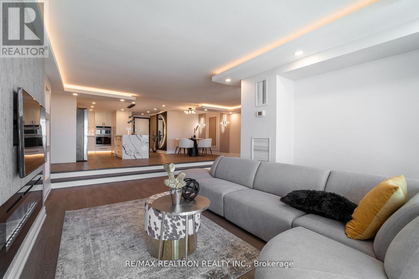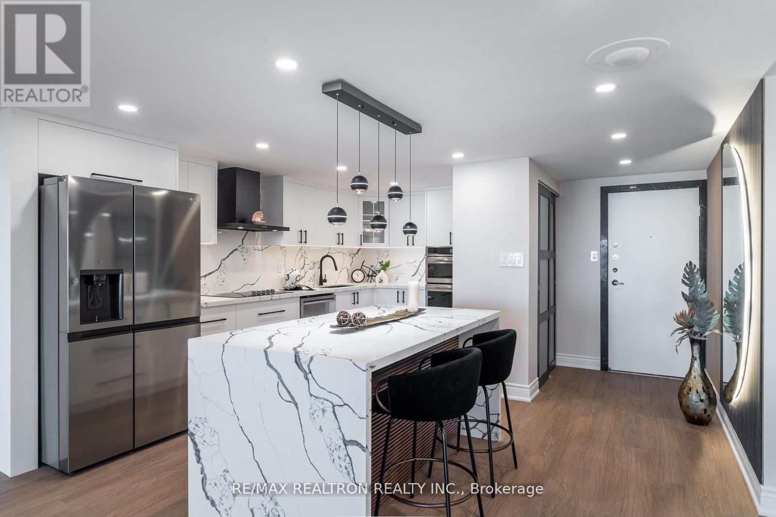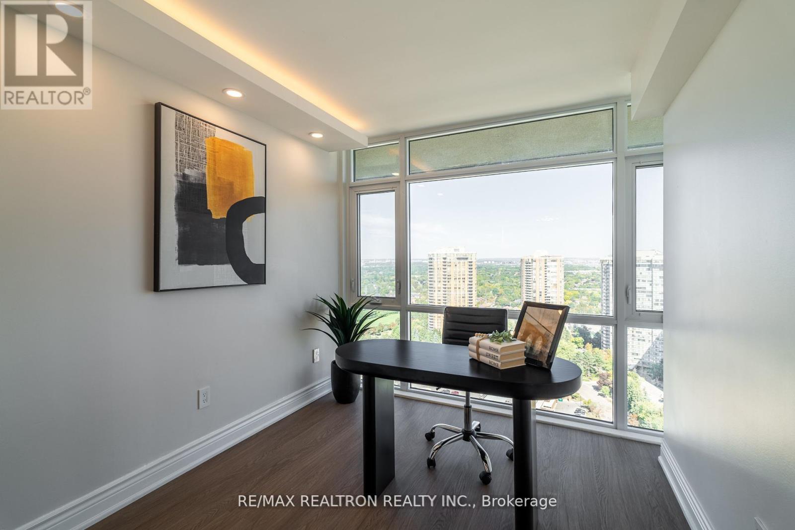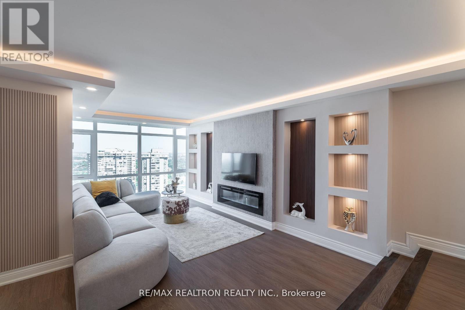 One-of-a-kind, fully renovated suite in the prestigious Skymark II by Tridel! This spacious2-bedroom + den, 2-bath home boasts a rare separate laundry room, a sleek open-concept layout,and a custom kitchen with quartz countertops, island, and premium cabinetry. Designer upgradesinclude porcelain-tiled bathrooms with modern vanities, crown moldings, LED pot lights, and anelegant electric fireplace in the family room. The primary bedroom features a walk-in closet,while the versatile den makes a perfect home office. Includes 2 parking spots. Enjoyresort-style amenities: indoor/outdoor pools, tennis, squash, golf simulator, gym, billiards,media room, and beautifully landscaped gardens. Hallway renovations scheduled for summer 2025.Prime location steps to TTC, Fairview Mall, shopping, dining, and major highways. A truegem-move in and enjoy! (42098863)