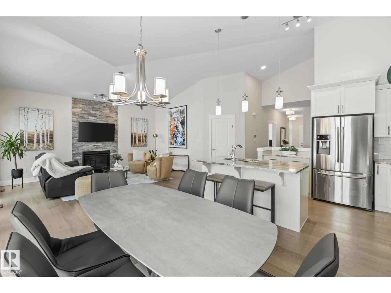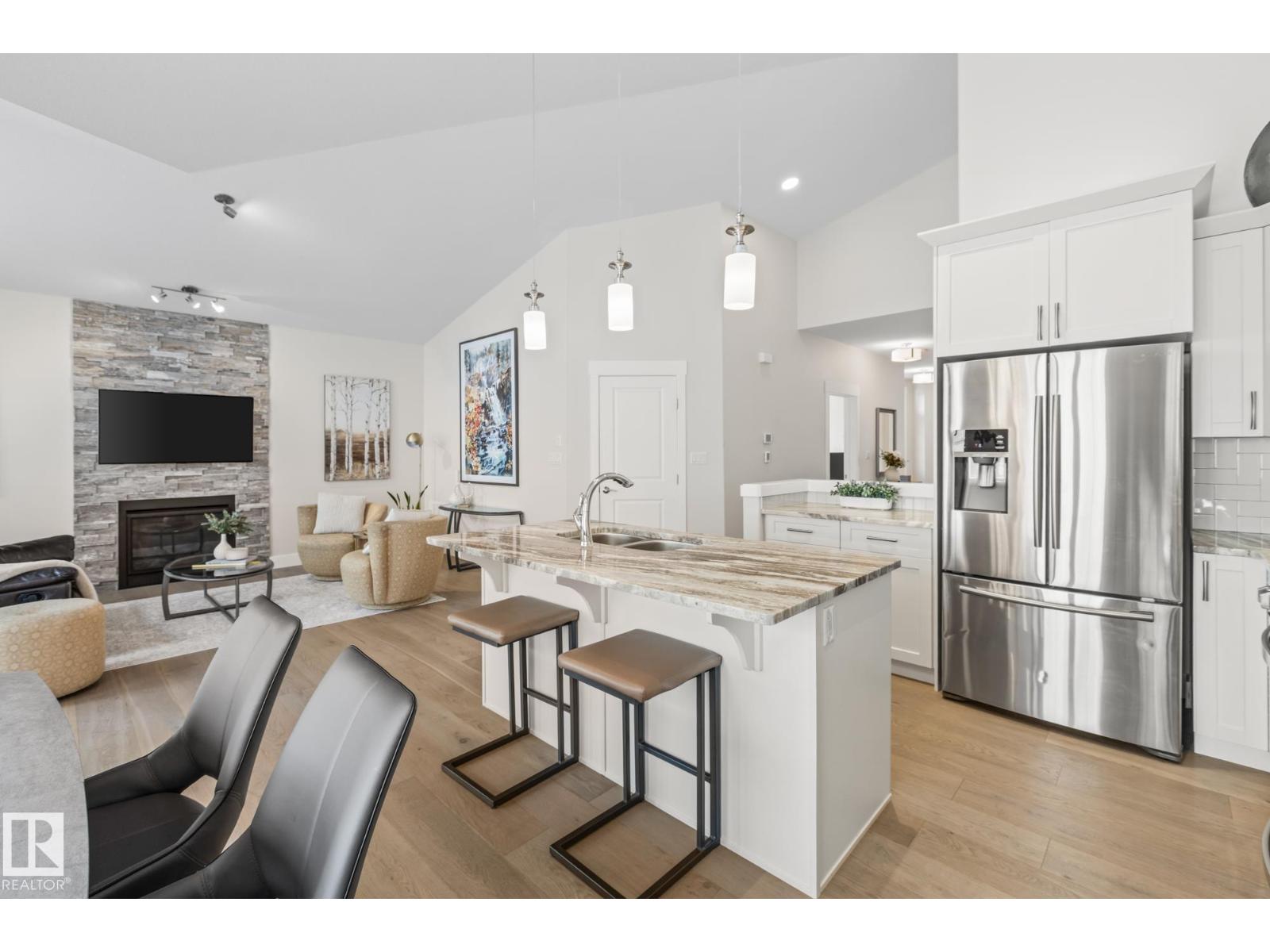 At nearly 1300 Sq. Ft. this adult bungalow feels more like an upgrade than a downsize. The expansive vaulted ceilings over the open main living room plus tons of windows make this home feel massive. The island kitchen, ample dining and large living space bring the luxury. Plus enjoy summers on your screened patio featuring heater and space to BBQ. The primary suite has a large walk in closet and 4 pce en-suite featuring dual sinks. A cozy front den is perfect for kids sleepovers or as an office space. A main floor bath and laundry complete this floor. In the basement you are greeted with an over sized rec room perfect for hosting the family. Plus a full bath and additional bedroom offer space for guests to stay. Keep everything tidy with HUGE storage room and closet space throughout. A double attached garage keeps you vehicle out of the elements. Steps away is the Lacombe Lake Park and plenty of walking trails. Quick and easy access to the Henday and shopping round out this wonderful home! (33805901)