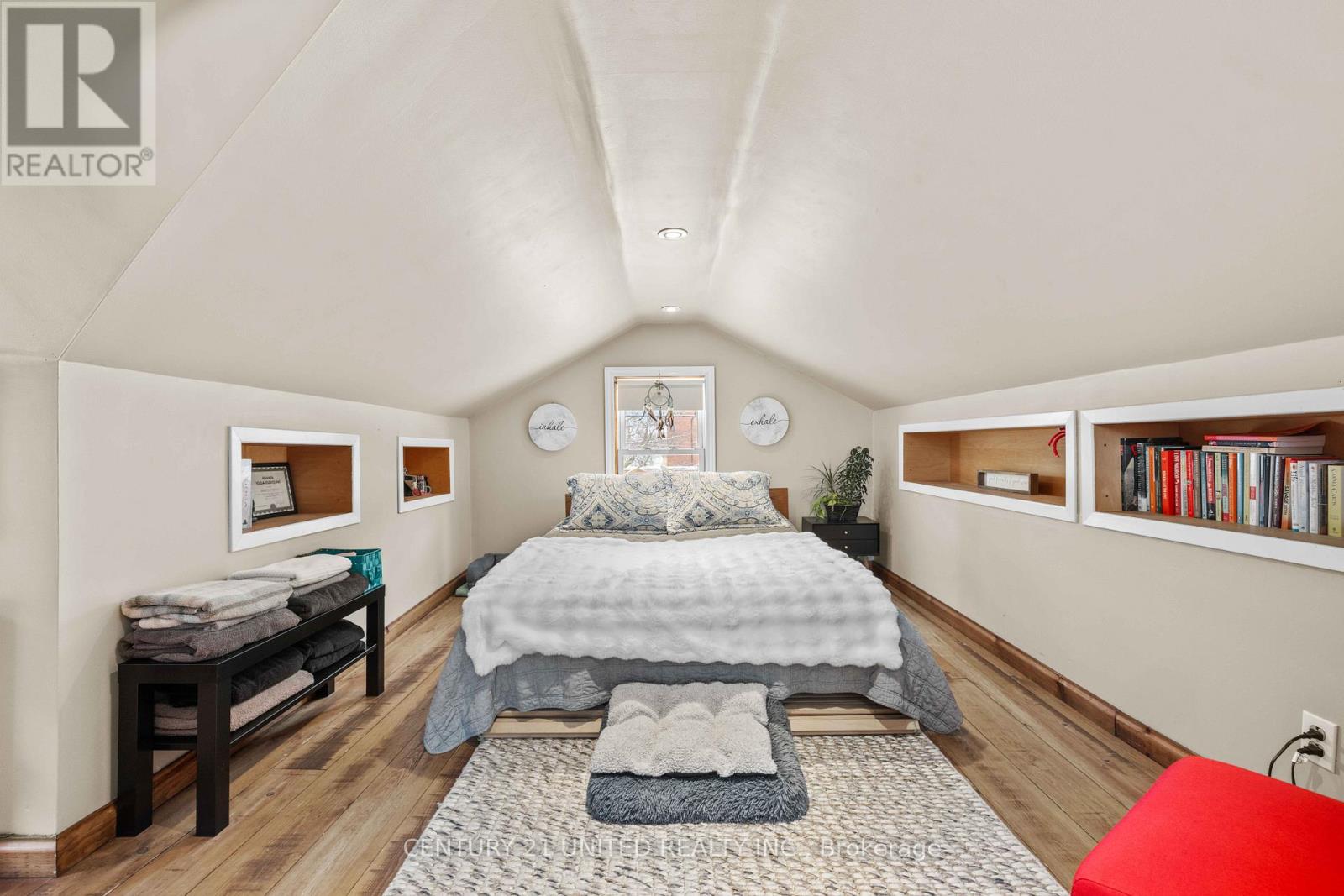 Absolutely adorable and meticulously cared for, this charming 1-bedroom, 1-bath bungalow is the perfect blend of character, comfort, and low-maintenance living. From the moment you arrive, the welcoming covered front porch sets the tone, a cozy spot for morning coffee or quiet evenings at home. Inside, you'll love the warmth of the hardwood floors and the bright, refreshed interior. The updated kitchen offers modern style and function, while major upgrades provide true peace of mind, including a new furnace, new heat pump, updated eavestroughs and fascia, plus a brand-new front porch and back deck. A standout feature is the custom 10x20 heated and air-conditioned outbuilding, ideal for a home office, studio, gym, or creative retreat, along with additional separate storage space.The backyard is beautifully finished with decorative stone, creating a maintenance-free outdoor space designed for relaxing and entertaining without the upkeep of grass. Perfect for first-time buyers, downsizers, or anyone looking for a turnkey home packed with charm and smart updates. Location truly sets this home apart, just steps from Little Lake and within easy walking distance to shops, restaurants, and everyday amenities. You will love the convenience and lifestyle this neighborhood offers. (42099622)