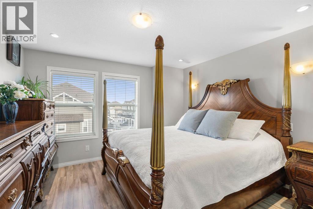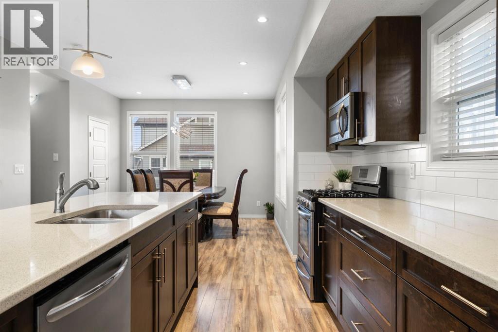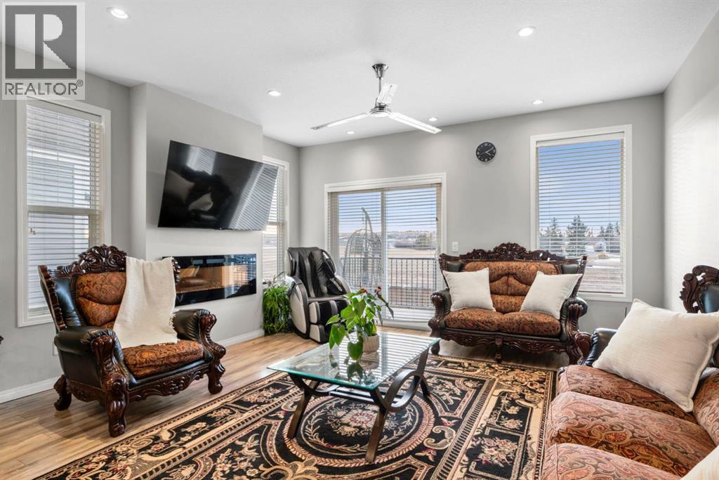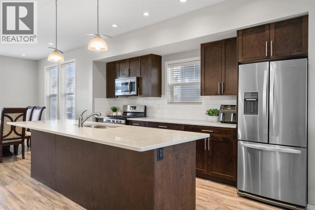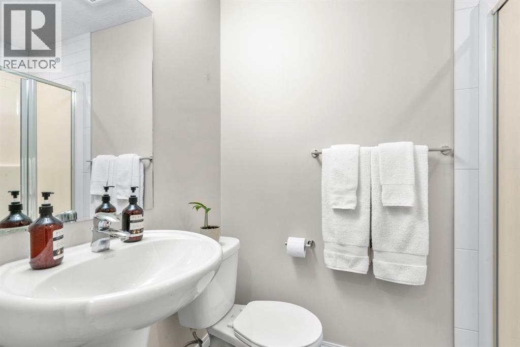 Welcome to this beautifully maintained three-level townhouse in the desirable community of Williamstown in Airdrie, offering 1,718.22 sq ft of well-designed living space, a functional layout, and a rare double attached garage. The ground-level entry provides a welcoming first impression with durable flooring and a bright, practical layout. This level features a spacious office space—ideal for guests, a home office, or multi-generational living—along with a full 3-piece bathroom, offering excellent flexibility and privacy. The main living level showcases an inviting open-concept floor plan designed for both everyday living and entertaining. The kitchen is the heart of the home, featuring quartz countertops, dark cabinetry, stainless steel appliances, a classic subway tile backsplash, and a large central island with seating. The kitchen flows seamlessly into the dining area and spacious living room, where a contemporary electric fireplace adds warmth and style. Large windows flood the space with natural light, and sliding doors lead to a private balcony—perfect for morning coffee or evening relaxation. A convenient main-floor powder room completes this level. Upstairs, the home continues to impress with three additional bedrooms, including a generous primary retreat featuring a 4-piece ensuite and ample closet space. A second full bathroom serves the additional bedrooms, while upper-floor laundry adds everyday convenience and efficiency. Outside, enjoy open sightlines and green space views, enhancing both privacy and lifestyle appeal. Located in a well-maintained complex, this home is close to walking paths, parks, schools, shopping, and offers easy access to major commuter routes. This move-in-ready townhouse delivers the perfect blend of space, comfort, and location—ideal for families, professionals, or investors seeking a low-maintenance lifestyle in one of Airdrie’s most welcoming communities. (31617690)