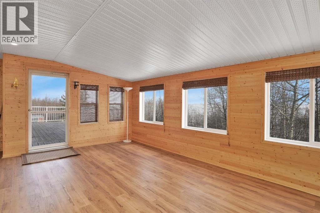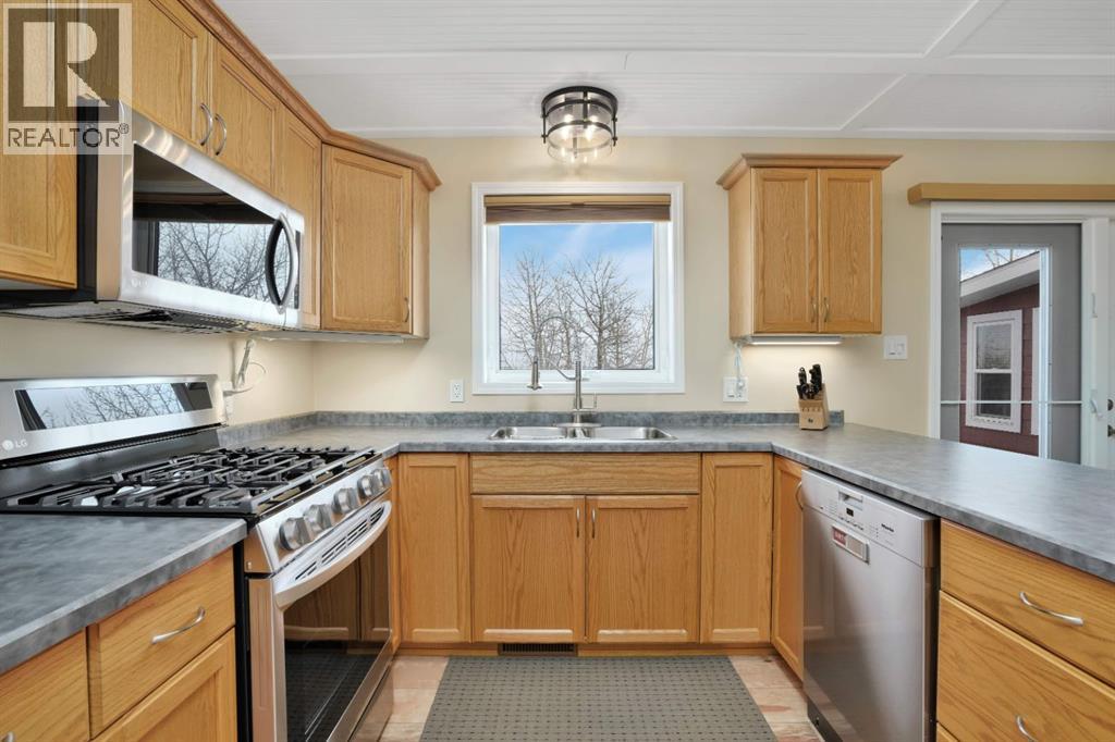 This beautifully designed 4-bedroom, 3-bathroom walkout bungalow offers the perfect balance of privacy, comfort, and lake-focused living. With over 2,000 sq ft of finished living space, the home is well suited for year-round use or as a seasonal retreat to enjoy in every season. The open-concept main floor is bright and inviting, featuring a modern kitchen with updated appliances including a gas stove, and seamless flow into the dining and living areas. The spacious primary bedroom includes a private 3-piece ensuite, while a second bedroom, full bathroom with jetted tub, and main floor laundry add everyday convenience. A standout feature of the home is the 3-season room added in 2017, offering a comfortable space to relax or entertain while staying protected from the elements. From here, step out onto the large deck ideal for outdoor dining, complete with a natural gas BBQ hookup and peaceful views of the surrounding landscape. The fully finished walkout basement completed in 2014 provides excellent guest accommodation with two additional bedrooms, a 3-piece bathroom, and a spacious family room with patio doors leading to a lower outdoor living area. In-floor heating, recessed lighting, and durable epoxy flooring enhance both comfort and durability on this level. Additional highlights include central air conditioning, a double heated garage, and a 6,500-watt Generac generator for added peace of mind. Ideally located just steps from the water and across from the village centre, residents enjoy easy access to the playground, snack shack, basketball, tennis and pickleball courts, and the community hall. The marina and boat launch are only minutes away, making lake access simple and convenient year-round. The property is approximately 20 minutes from Stettler, one hour from Red Deer, and two hours from Calgary or Edmonton. With quick possession available, this is a turnkey opportunity to enjoy everything Buffalo Lake has to offer, from boating and swimming to fishing an d winter recreation. Whether you’re searching for a full-time residence, a family getaway, or a retirement retreat, this home delivers a relaxed lake lifestyle in a well-established community. (31617213)