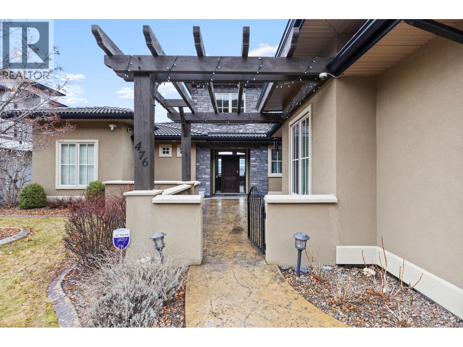 Situated in Vernon's highly desirable Bella Vista neighbourhood, 476 Silversage Pl. is a beautiful, Tuscan inspired rancher with walk-out basement. The property features expansive lake & city views unobstructed from the moment you step inside. Within the peaceful & prestigious community of The Rise, golf, parks, hiking are all at your fingertips & beaches, schools, shopping, eateries and city amenities only a short drive away. Main floor features the primary suite, guest bedroom & vast, open common spaces with the kitchen, dining & great room promoting comfortable, efficient living perfect for families & entertaining. Layout and sight-lines oriented towards the unobstructed lake/city views and anchored with over 510sf of wrap-around balcony space. Oversized rec room, 3 bedrooms, wet-bar & fully equipped home cinema on lower level. This walk-out basement is perfect for growing families & guests, allowing enough space & amenities to make hosting and raising a family pleasant and exciting. Vast, fully useable yard provides space for future pool and plenty of yard still for enjoying Okanagan summers in the outdoors. Solid built homes with this level of detail and consideration are seldom seen or built today. As you enter the two-storey foyer through the entry courtyard adorned overhead with grandiose tile roof & pergola, this home takes you on an elegant journey. Let yourself be at peace in this spacious, family home in one of Vernon's most sought-after locations. (39708820)