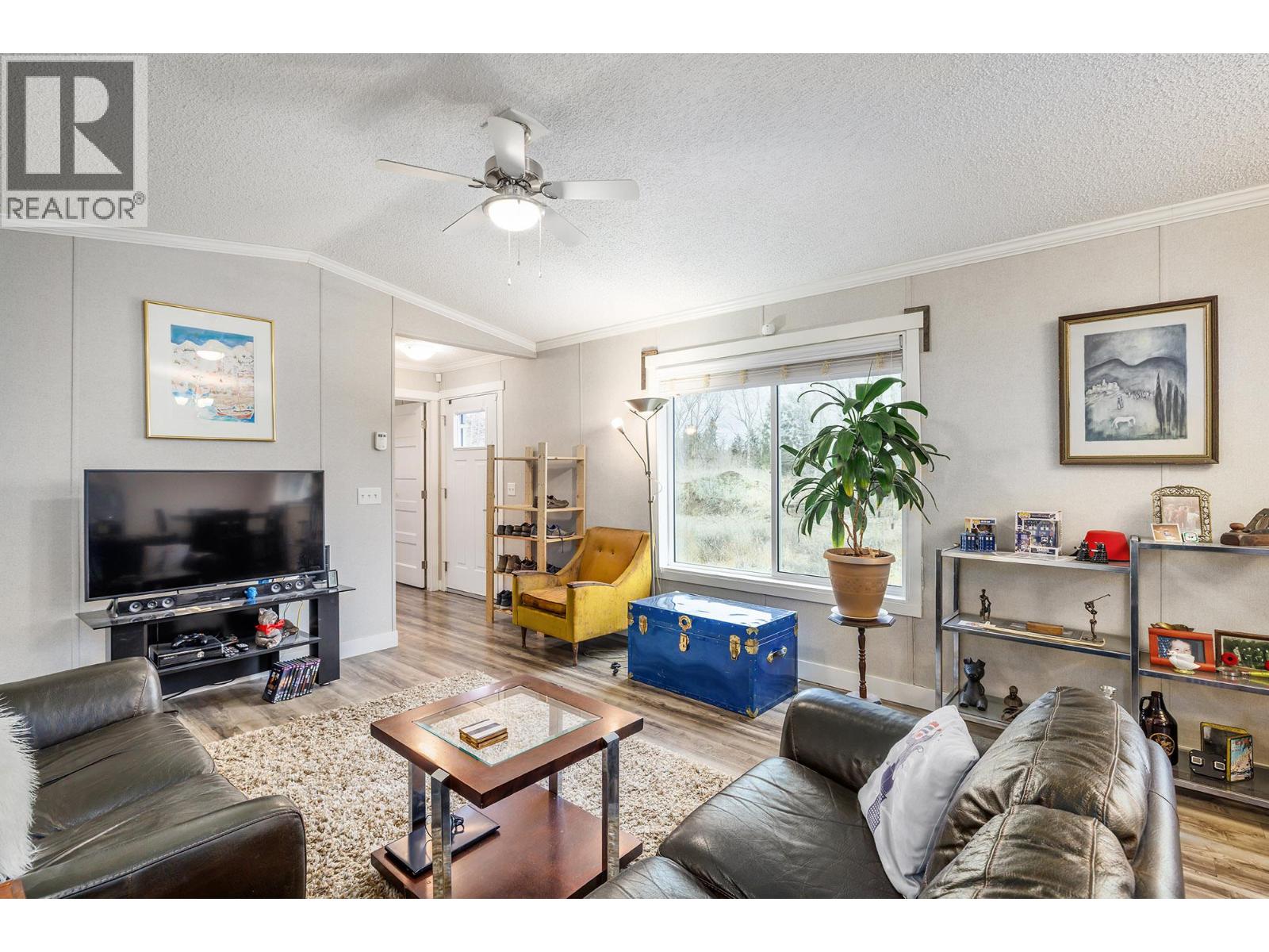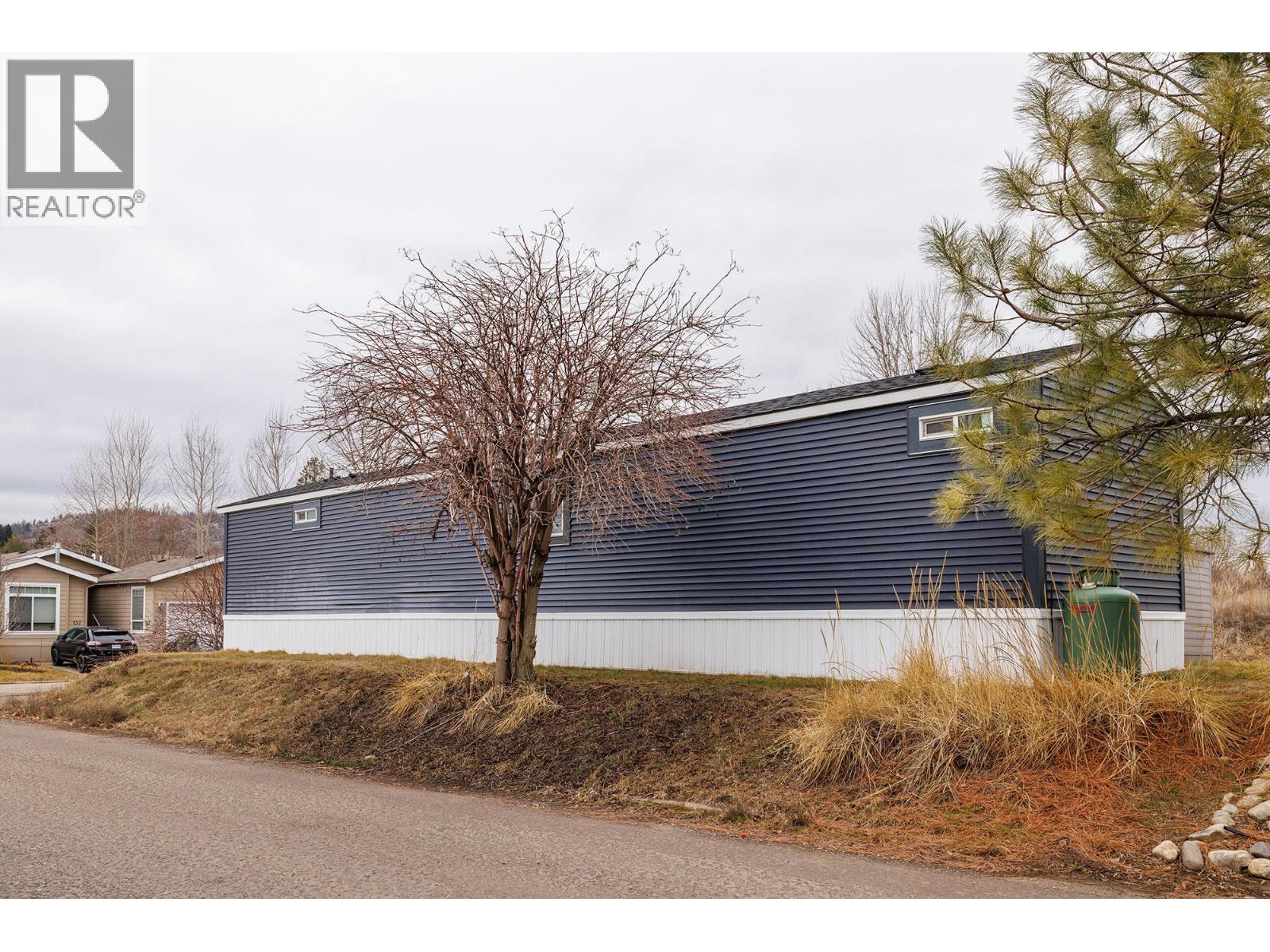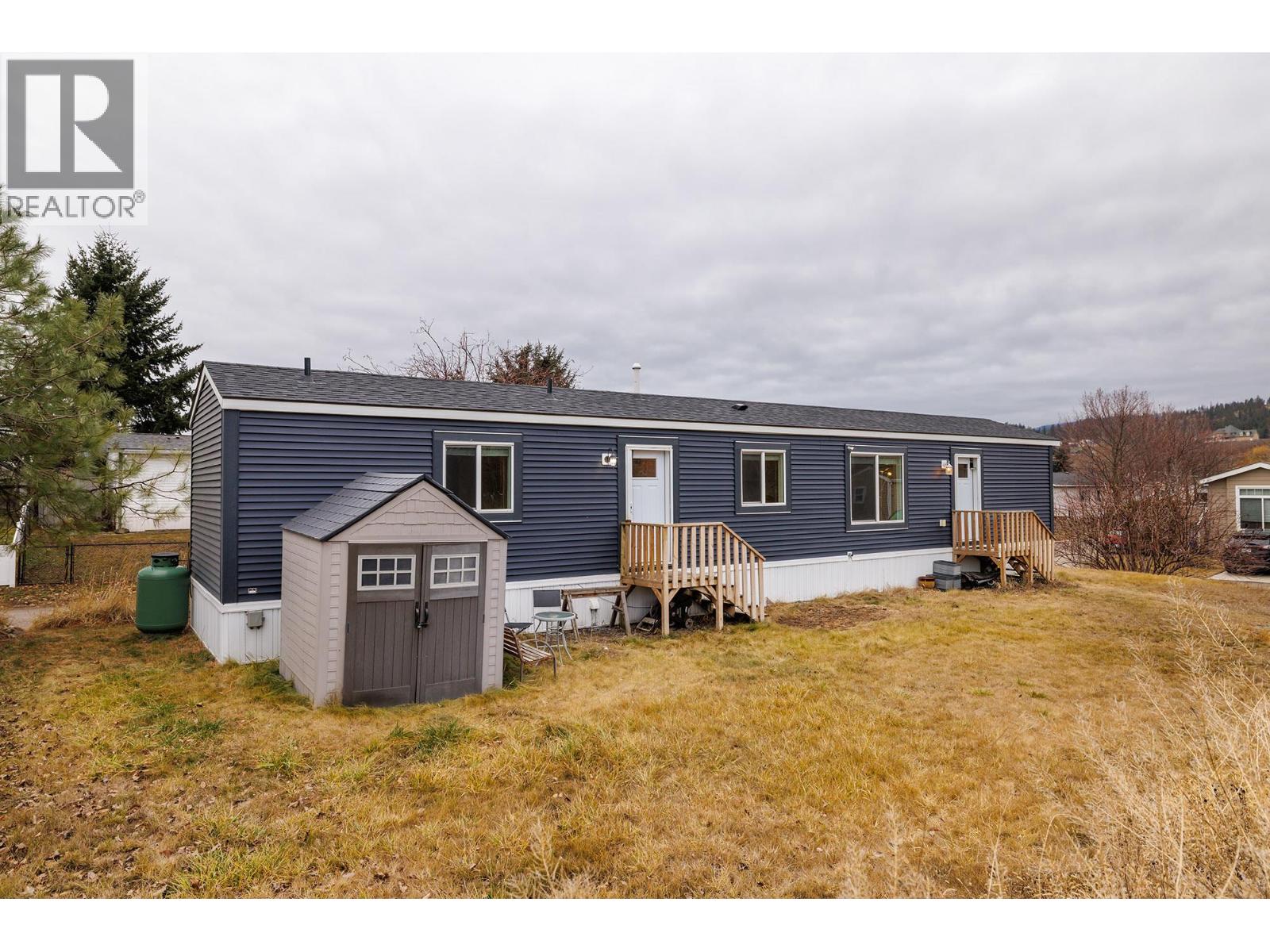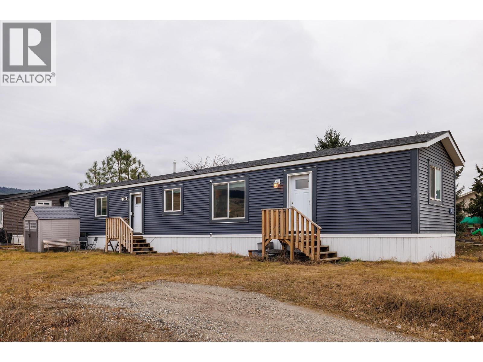 Stylish, modern living at Duck Lake Estates! Built in 2021, this beautiful 905 sq. ft. manufactured home offers 2 bedrooms and 2 bathrooms in a bright, open-concept layout. Cathedral ceilings enhance the spacious feel, while the thoughtfully designed floor plan places the bedrooms at opposite ends for optimal privacy. The stylish kitchen is the heart of the home, equipped with stainless steel appliances, an over-sized farm house sink, and ample work space. The primary bedroom includes a walk-in closet and a private ensuite with 5-ft walk-in shower. A convenient laundry/mud room provides exterior access in addition to the main front entry. Situated on a generous lot looking out over green space, this property includes a 7’x7’ shed and ample space to potentially add a carport or garage. Conveniently located just steps to the Okanagan Rail Trail - and minutes from the airport, UBCO, shopping, restaurants, and lakes. Two pets are permitted (no size restrictions). A perfect blend of comfort, style, and location, this home is move-in ready and waiting to welcome its next owners—book your private showing today. (39708380)