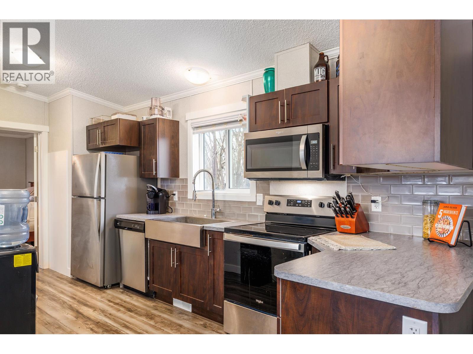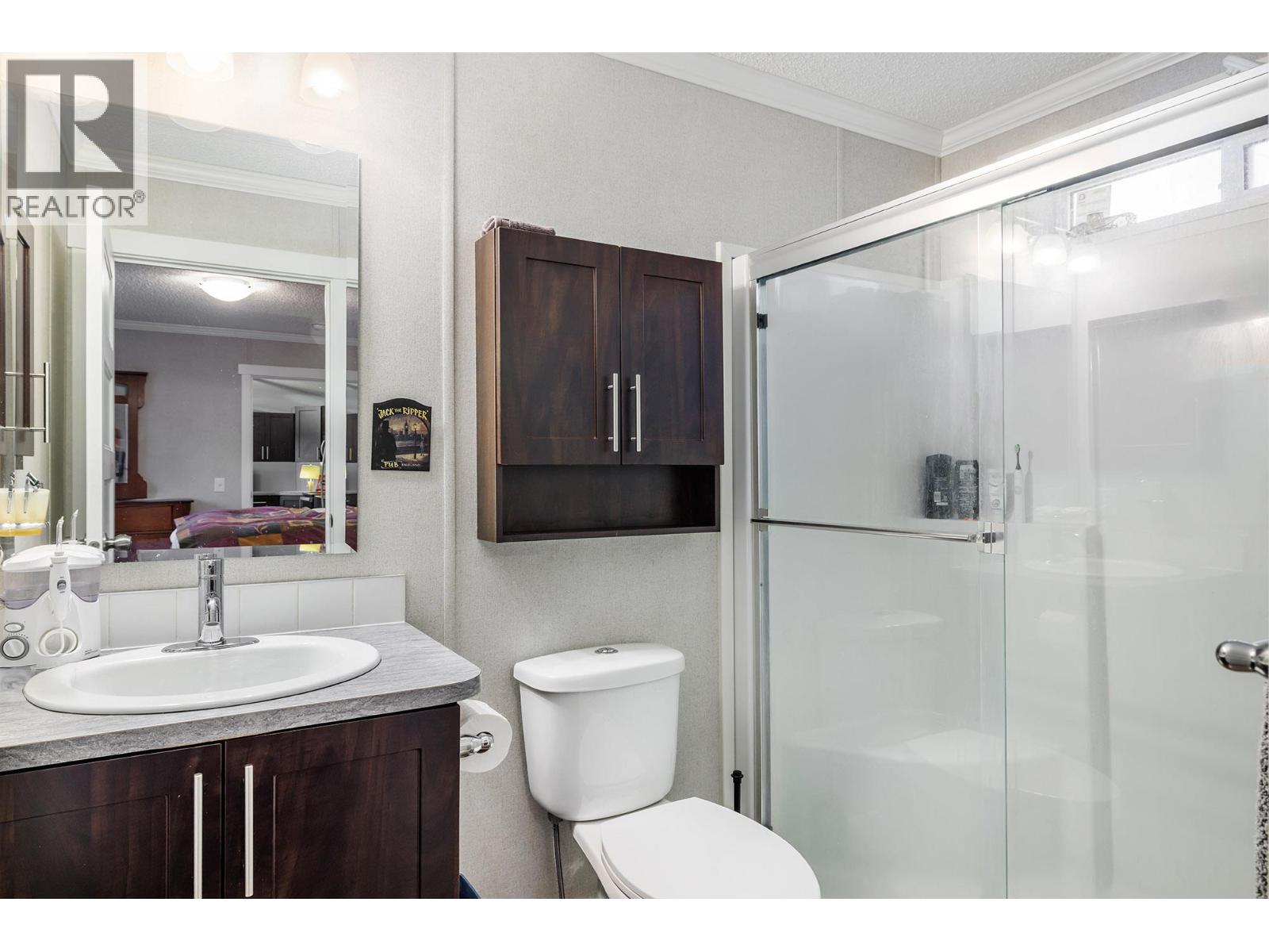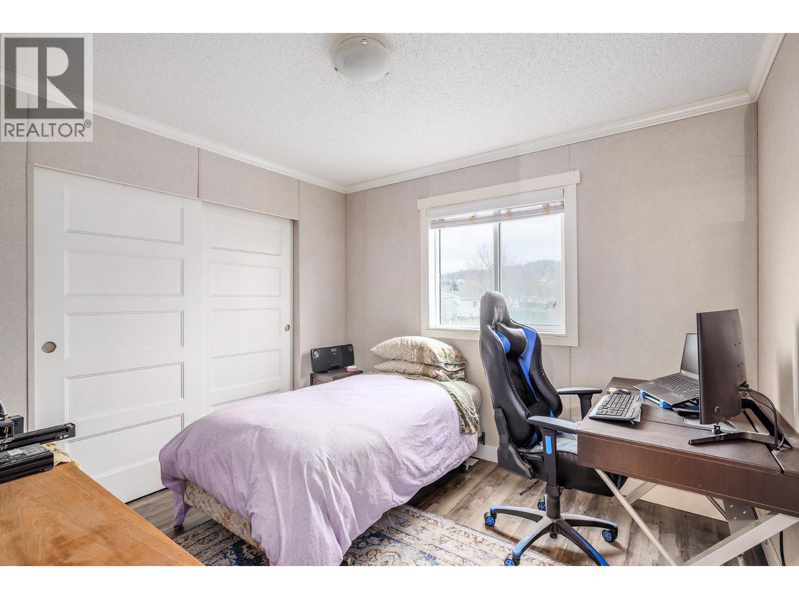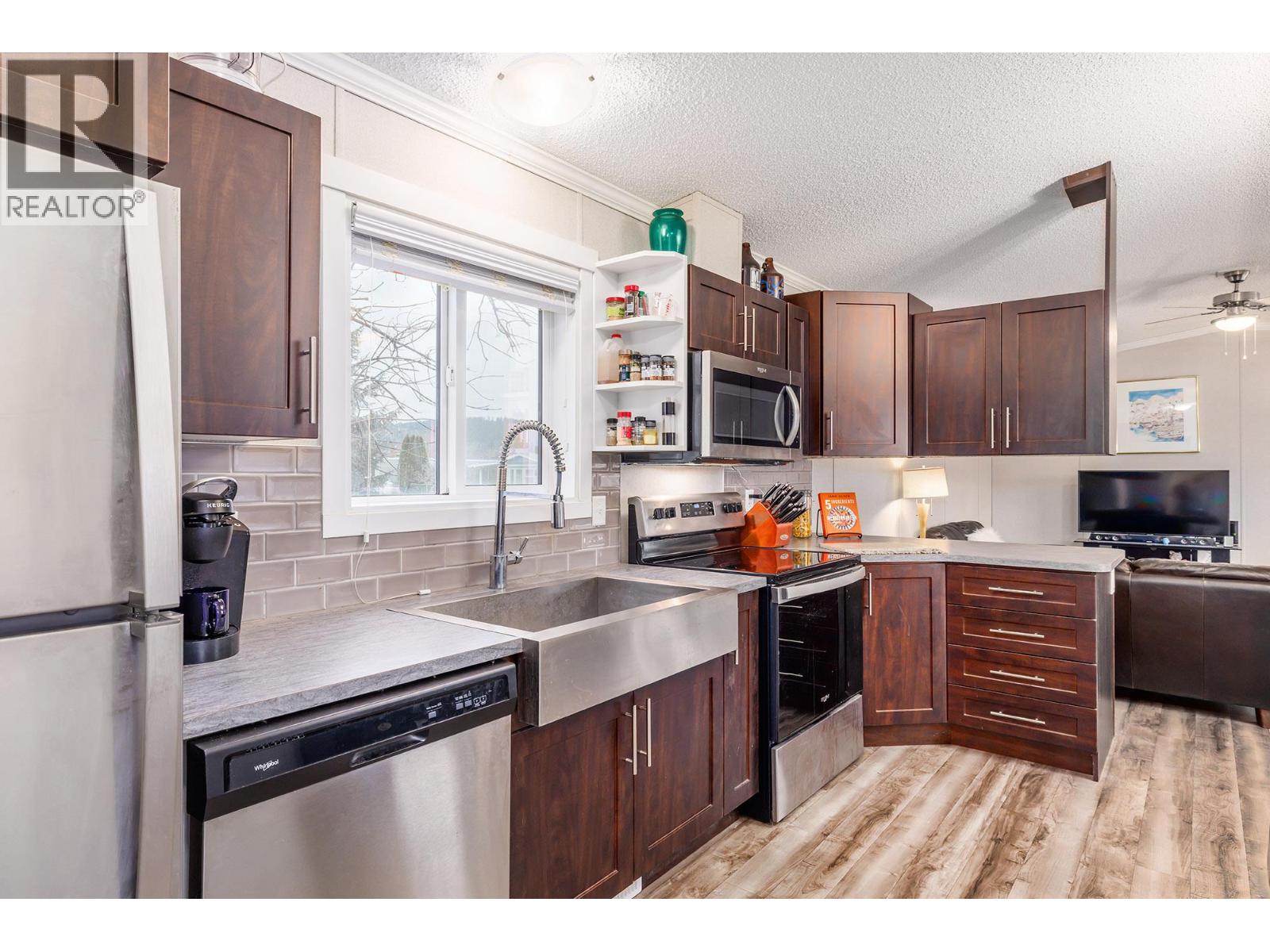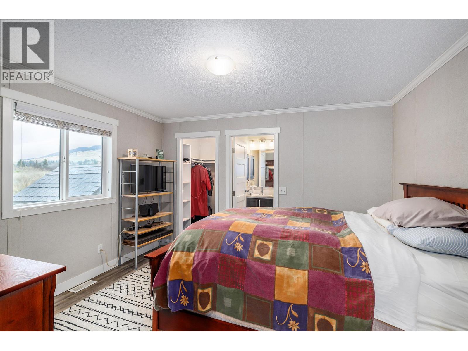 Stylish, modern living at Duck Lake Estates! Built in 2021, this beautiful 905 sq. ft. manufactured home offers 2 bedrooms and 2 bathrooms in a bright, open-concept layout. Cathedral ceilings enhance the spacious feel, while the thoughtfully designed floor plan places the bedrooms at opposite ends for optimal privacy. The stylish kitchen is the heart of the home, equipped with stainless steel appliances, an over-sized farm house sink, and ample work space. The primary bedroom includes a walk-in closet and a private ensuite with 5-ft walk-in shower. A convenient laundry/mud room provides exterior access in addition to the main front entry. Situated on a generous lot looking out over green space, this property includes a 7’x7’ shed and ample space to potentially add a carport or garage. Conveniently located just steps to the Okanagan Rail Trail - and minutes from the airport, UBCO, shopping, restaurants, and lakes. Two pets are permitted (no size restrictions). A perfect blend of comfort, style, and location, this home is move-in ready and waiting to welcome its next owners—book your private showing today. (39708380)