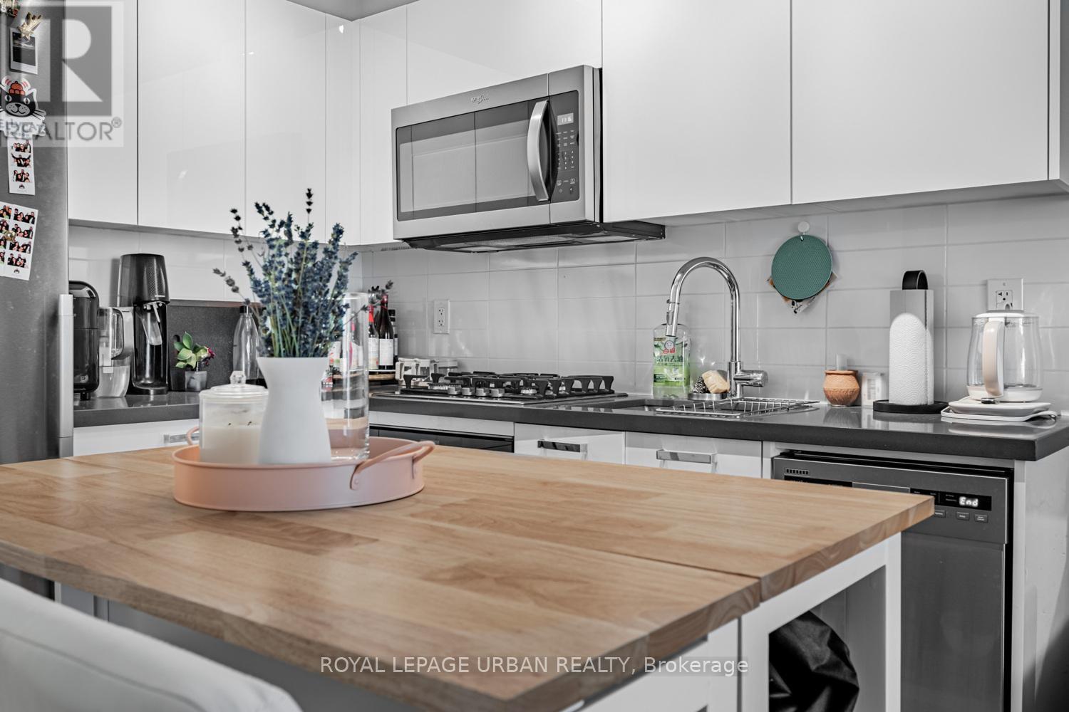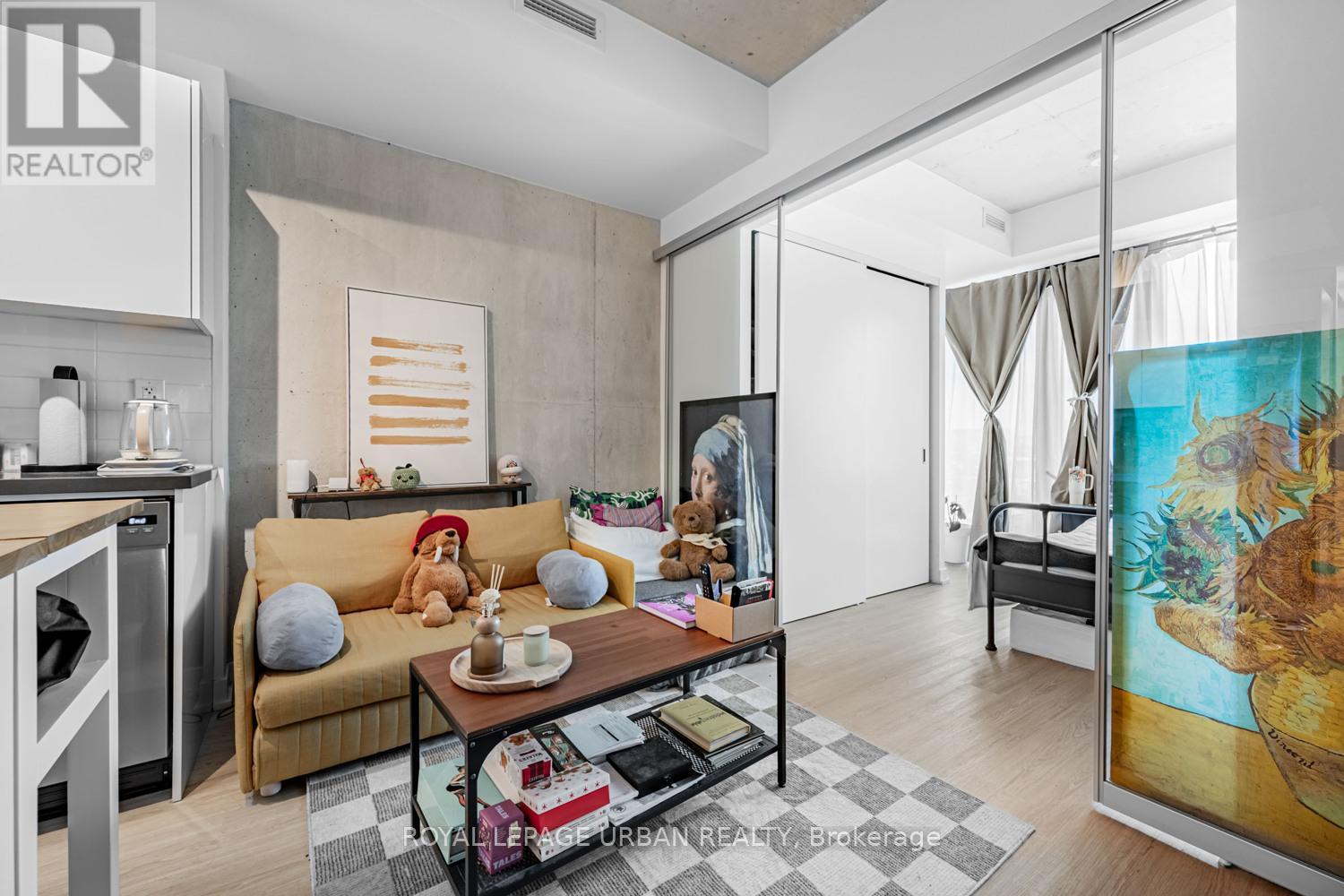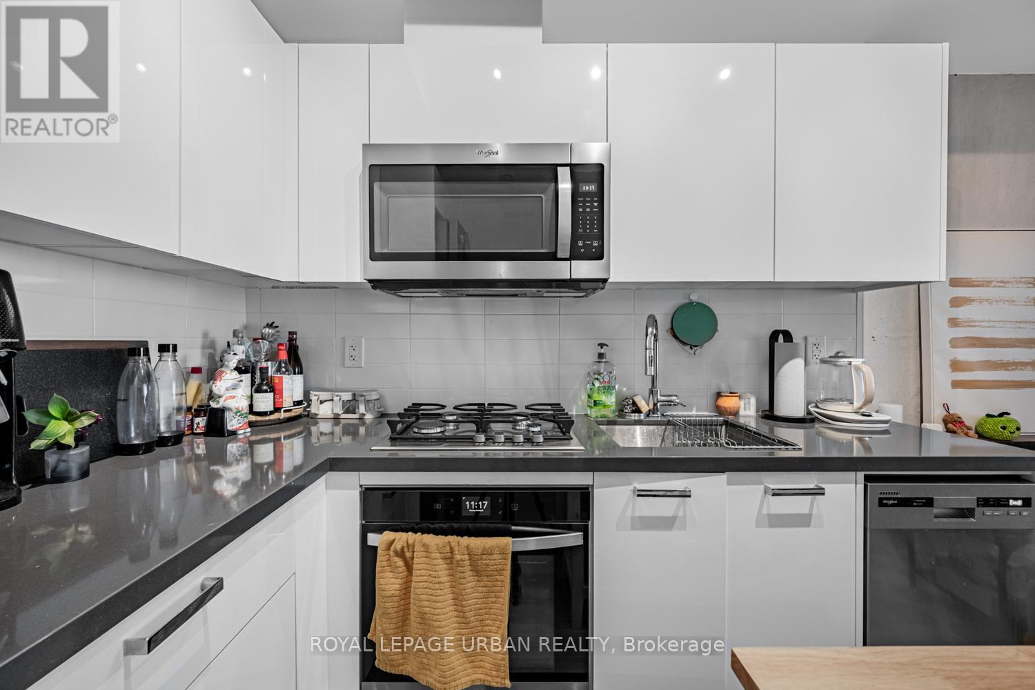 The Bread Company Condos by Lamb Development (2024). Bright and functional 1+1 bedroom offering stylish loft living with modern finishes throughout. Features exposed 9-ft concrete ceilings, open-concept layout, and west exposure with floor-to-ceiling windows and glass sliding doors that flood the space with natural light. The sleek kitchen offers ample storage and integrated stainless steel appliances, including a gas stove. Separate den provides flexible additional space for a home office or guest area. Spa-inspired four-piece bathroom showcases marble tile, soaker tub, and a large vanity with generous storage. PARKING INCLUDED. This convenient location truly has it all. Just steps to St. Patrick Station, the Dundas streetcar, University of Toronto, Queen's Park, Art Gallery of Ontario, Grange Park, Baldwin Village, Mount Sinai Hospital, Toronto General Hospital and SickKids Hospital. Minutes to Kensington Market, the Entertainment, Financial, and Fashion Districts. Surrounded by a vibrant mix of cultural restaurants, fitness clubs and gyms, chic cafés, upscale bars, and premier shopping in Queen West. (42100158)
