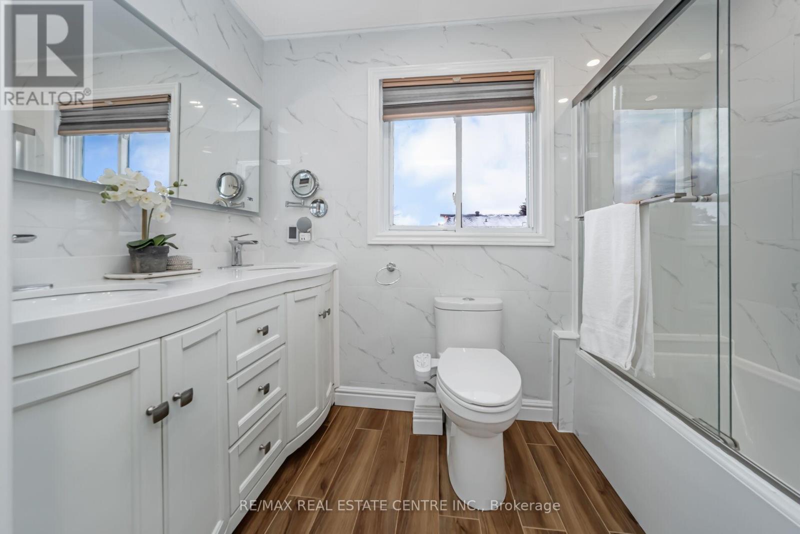 Situated in the highly sought-after "L" section of Westgate, this well-maintained residence offers an exceptional combination of comfort, functionality, and modern convenience. Featuring three bedrooms, four bathrooms, and versatile living spaces, the home has been thoughtfully updated throughout.The main level includes a welcoming fireplace with sitting area, a formal dining room at the front of the home, and a conveniently located laundry area near the kitchen with its own separate door. Two French doors at the rear enhance seamless indoor-outdoor living, with one opening to a covered pergola on the deck and the other providing direct access to the backyard.Upstairs, three generously sized bedrooms each feature ceiling fans. The primary suite is complemented by a spa-inspired ensuite with Jacuzzi jetted tub, stone finishes, heated floors, and a lighted, heated mirror. Additional bathrooms include a three-piece upper-level bath, a main-floor powder room with lighted mirror, and a basement powder room.The fully finished basement offers outstanding flexibility with a fitness or exercise room, pantry, storage room with sink, and a spacious entertainment area complete with a wet bar. Smart home enhancements include smart lighting throughout most of the home, smart thermostat, smart garage door opener, smart outdoor security cameras, and an automated pet door.Additional features include engineered hardwood flooring on the main and second levels, stainless steel appliances, enclosed porch, concrete front walkway, in-ground sprinkler system, garden shed, window coverings, washer and dryer, all electric light fixtures, and a natural gas BBQ line. A refined home offering exceptional value in one of Brampton's most desirable neighbourhoods. (42100161)