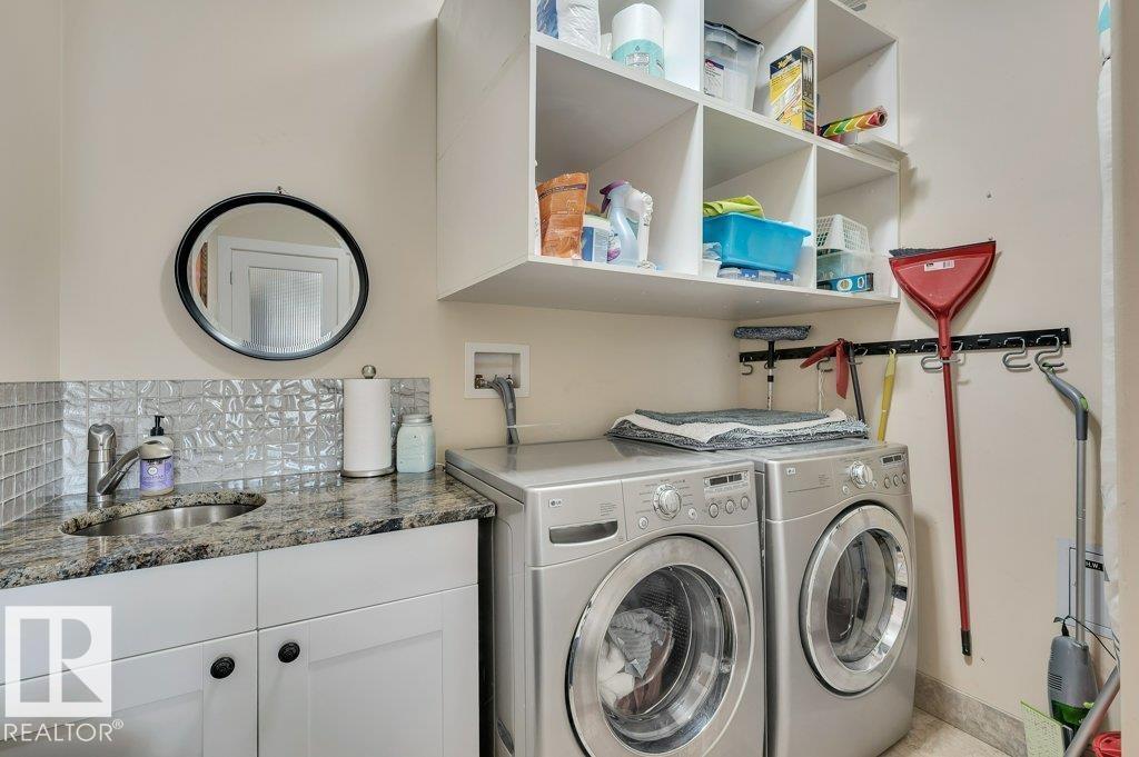 Spectacular 1301 sq. ft. executive penthouse condo in the heart of St. Albert in the prestigious Versailles building. This one-of-a-kind 2-bdrm home features soaring 20-ft coved ceilings in the great room, rich mahogany hardwood and limestone flooring thru out, a Tindlestone gas fireplace with TV niche, and oversized windows showcasing panoramic views. The chef’s KI boasts 8” granite countertops, stainless steel appliances, a huge island, walk-in pantry, and garden door to a spacious balcony. The luxurious primary suite offers a stunning 3-pce. ensuite with walk-in shower and a large walk-in closet. A cozy bdrm/den includes a Murphy bed and double closets with sliding doors to the patio. Additional features include in-floor heating, air conditioning, a laundry room with built-in shelving and sink, and a second 4-piece bath. Enjoy 2 underground heated parking stalls, a spacious storage unit, and unbeatable access to shopping, fine dining, the Farmers’ Market, Arden Theatre, and the beautiful River Valley (33806451)