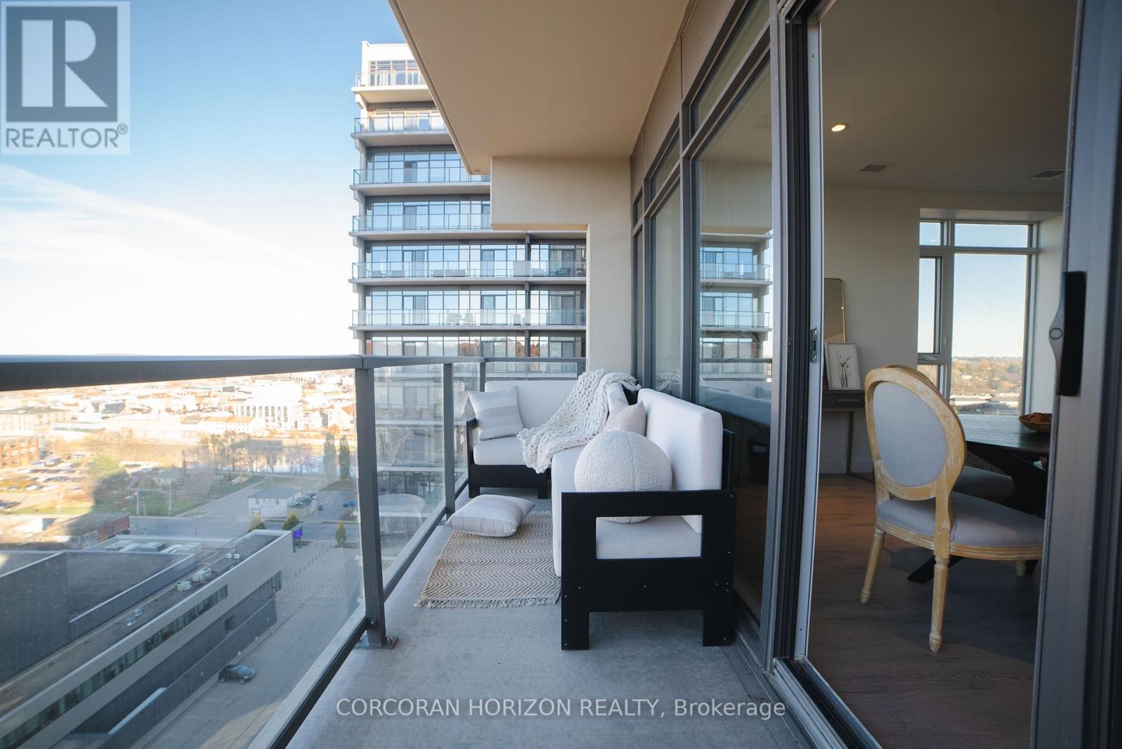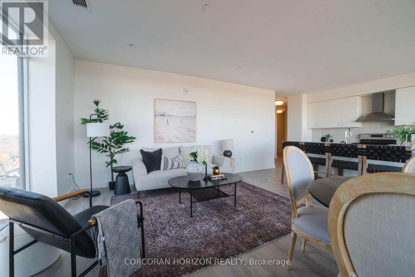 Located in the heart of historic downtown Galt, this beautiful condo is part of the vibrant Gaslight District-a new center for residential, commercial, retail, dining, art, and culture. Here, life, work, and leisure come together to create an unparalleled living experience. This impressive unit has nine-foot painted ceilings, wide-plank light flooring, and premium finishes throughout. The spacious kitchen features modern cabinetry with designer hardware, quartz countertops, a tile backsplash, an oversized island with an under-mount sink and gooseneck faucet, and stainless steel appliances. The open-concept design flows seamlessly from the kitchen into a generous living and dining area, ideal for entertaining. Floor-to-ceiling windows and access to a large balcony let natural light flood the space. The primary suite offers his & her closets, glass doors leading to the balcony, and a luxurious four-piece ensuite with dual sinks and a walk-in shower. A second bedroom with floor-to ceiling windows, a four-piece bath with a tub and shower combo, and in-suite laundry complete this premium unit. This condo also includes two parking spaces for your convenience. Residents enjoy access to an array of amenities, including a welcoming lobby with seating, secure video monitored entry, a fitness area with a spacious yoga and Pilates studio, a games room with billiards, ping-pong, and a large TV, a catering kitchen, a private dining room, and a cozy library. The lounge opens onto a spacious outdoor terrace overlooking Gaslight Square, featuring multiple seating areas, pergolas, fire pits, and a BBQ area for outdoor relaxation. (42100171)