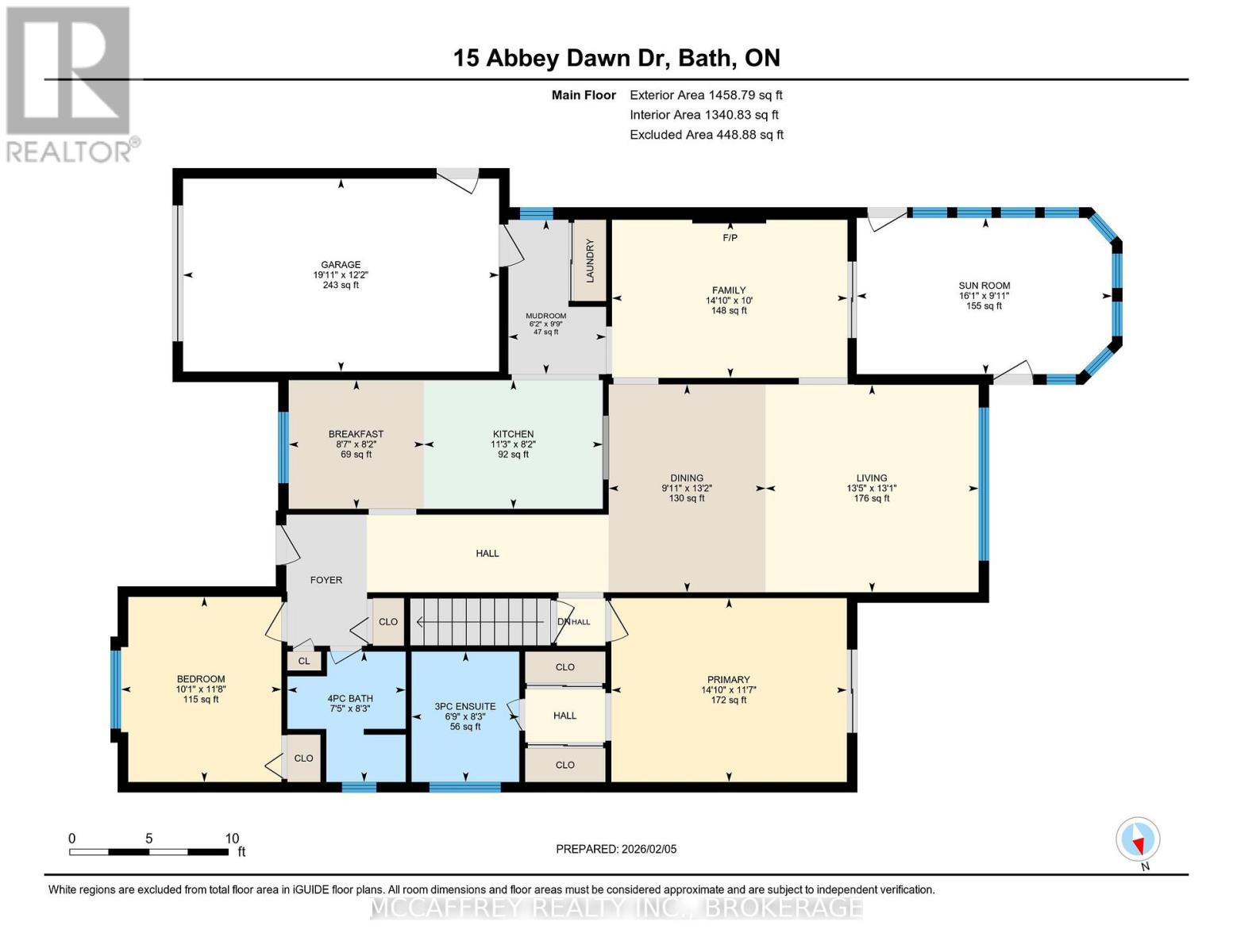 Welcome to this exquisite bungalow nestled in the sought-after Loyalist Golf and Country Club community in beautiful Bath, Ontario. This exceptional home offers the unique privilege of backing directly onto the 18th hole, allowing you to take in sweeping views of manicured greens from the tranquility of your own backyard. Step inside and discover an inviting interior designed for both comfort and elegance. The heart of the home is the stunning, fully renovated kitchen (2025), showcasing modern cabinetry, gleaming quartz countertops, and high-end stainless-steel appliances-the perfect space to entertain or craft culinary delights. Flooded with natural light, the open-concept living and dining areas feature hardwood flooring, a cozy gas fireplace, and easy access to the home's standout feature: a spacious three-season sunroom. This sunroom is ideal for relaxing with your morning coffee or hosting guests while watching the action on the golf course-rain or shine. The thoughtful main floor layout is further enhanced by convenient main floor laundry, making daily chores a breeze. The primary suite offers generous closet space and a beautifully updated ensuite bathroom, providing a private oasis to unwind after a day on the course or exploring the waterside charm of Bath. An additional bedroom and full updated bath provide ample space for guests or a home office. Step outside to the private back deck, with uninterrupted views of the fairway, mature landscaping, and a sense of peace that comes from living in this prestigious community. As an added bonus, the clubhouse is just steps away from your backyard, making it effortless to enjoy dining, social gatherings, or additional recreational amenities right within your neighborhood. Rarely does a home of this caliber, with such a prime golf course location and upgraded features, come to market. Don't miss your chance to make 15 Abbey Dawn Drive your forever home! (42100270)