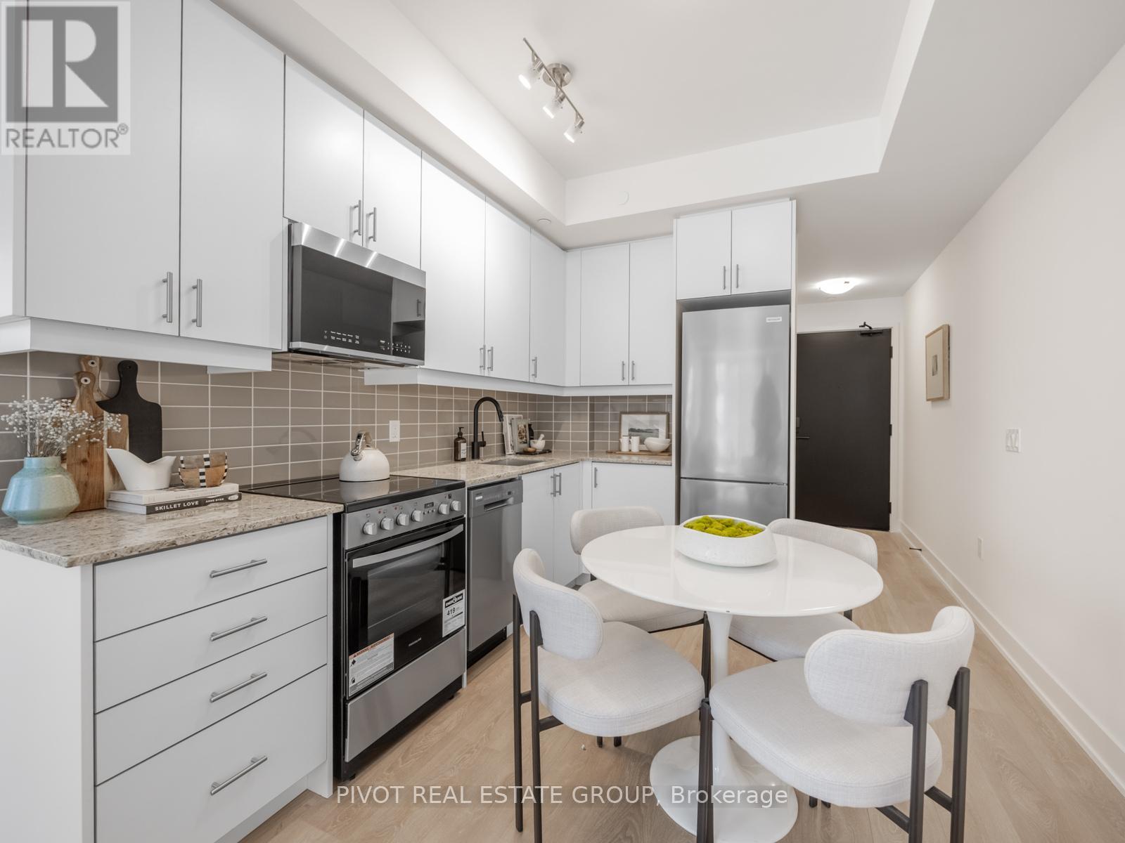 Enjoy Luxury Living in Oakville at NUVO Condominiums by Crystal Homes & Fernbrook Homes. Approx 575 sqft, 1 Bedroom + Den with window. Functional Layout, Open Concept, Gourmet Kitchen With Stainless Steel Appliances, Stone Countertops w/ beautiful backsplash. Approx 9ft smooth ceilings in main areas excluding bulk heads. Five Star Amenities Include: Putting Green, Rooftop pool and cabanas, rooftop BBQ, Fitness Centre, Community Garden, Multi-purpose activity court, work/share boardrooms, pet wash station, and more. 24/7 Concierge with 1Valet system. Highspeed Internet included in maintenance fee. Includes 1 Parking & 1 Locker. Taxes Not Yet Assessed. Furniture for Staging Purposes Only. (42100631)