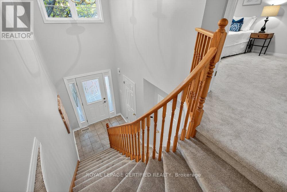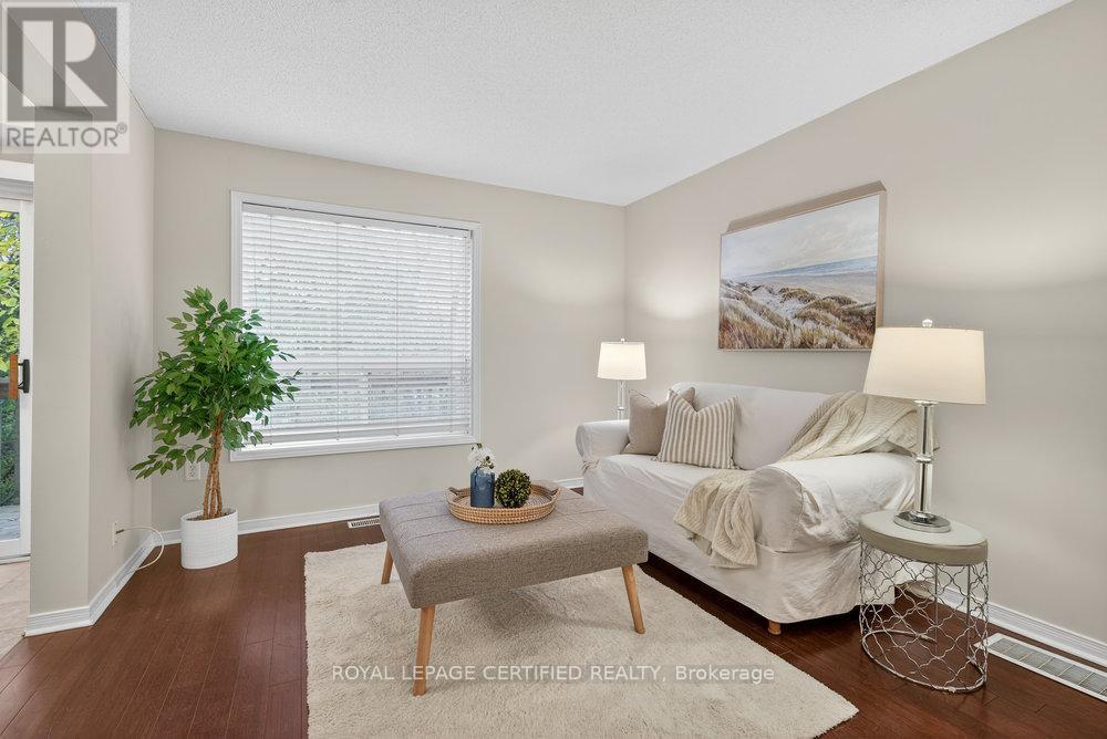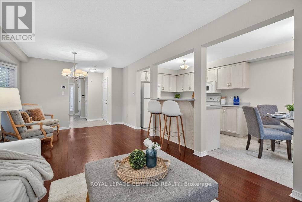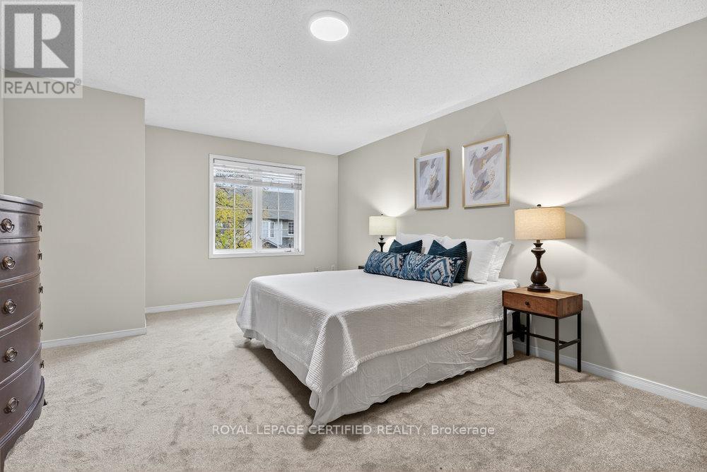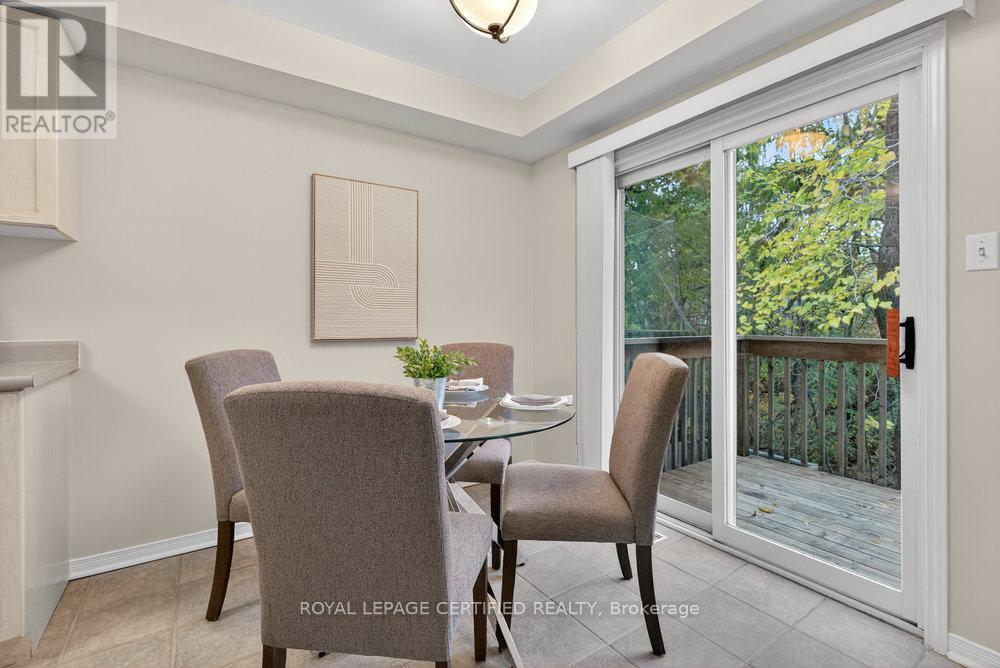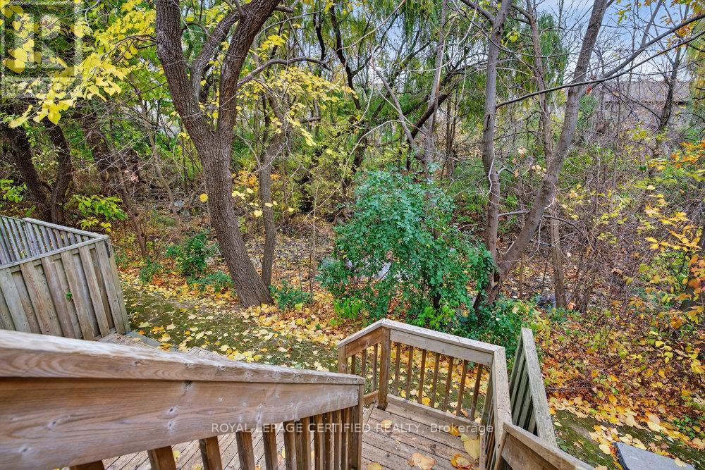 Nestled in one of Stoney Creek's most premier locations, minutes from the waterfront, featuring a tranquil, forested backdrop, this thoughtfully designed end unit townhome offers refined living in a naturally serene setting. A palette of soft, neutral tones flows throughout the home, creating a calm and cohesive atmosphere that feels both welcoming and timeless. The open-concept main floor is ideal for everyday living and entertaining, providing a seamless layout with convenient main floor powder room and inside access from garage. The bright, family sized kitchen opens to a private deck overlooking the trees-an inviting extension of the living space and a peaceful place to unwind. Below, the sun-filled walk-out basement features a cozy fireplace, Extra large above grade windows that allow an abundance of natural light to flow through the space. Lower level is also equipped with a convenient 3 piece bathroom and recreation room that opens directly to a beautifully wooded area-offering a rare connection to nature and effortless indoor-outdoor living. The upper level provides well-appointed private quarters including an oversized primary bedroom and a four-piece bathroom offering comfort and convenience for family or guests. With its elegant finishes, functional layout, premium setting, and exceptional natural surroundings, this home offers a refined lifestyle in one of Stoney Creek's most picturesque locations. Moments from Lake Ontario, waterfront trails and public beach access. Quiet and family friendly, yet minutes the the QEW and Red Hill Valley Pkwy for effortless commuting. Close to schools, parks, shopping and everyday essentials-offering the perfect balance of comfort, lifestyle and convenience. (42100502)