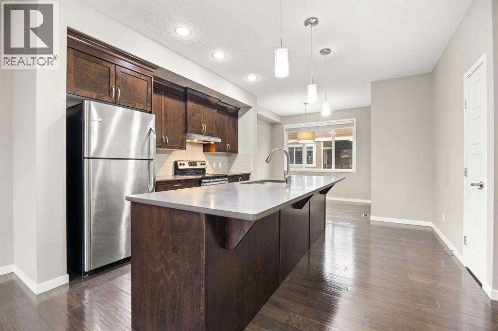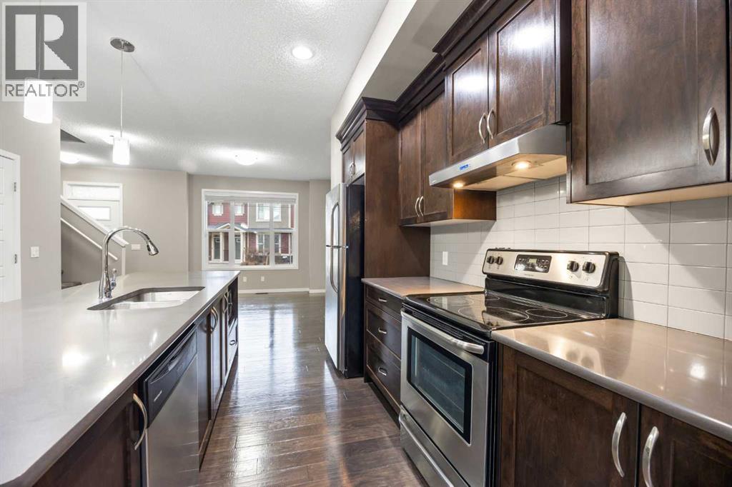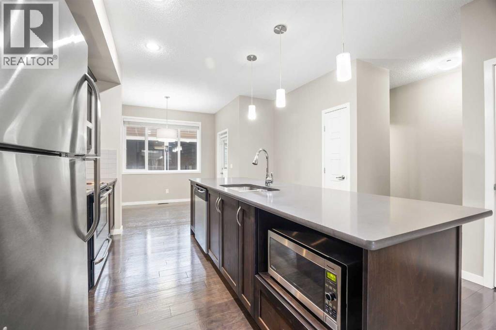 Welcome to this bright and inviting 2-storey townhome in the sought-after community of Panorama Hills, offering 3 bedrooms, 2.5 baths, and 1,333 sq ft of well planned living space. Ideally located just steps from a tranquil courtyard park with seating area—perfect for outdoor relaxation and community connection.Step inside to the main level and be greeted by an open floorplan with 9-foot ceilings and elegant engineered hardwood flooring throughout. The sunny South-facing Living room fills the space with natural light, seamlessly flowing into the well-appointed Kitchen featuring a centre island, quartz countertops, stainless steel appliances, and ample cabinetry for all your storage needs. The adjacent Dining room opens to a private balcony with gas hookup—perfect for summer grilling or enjoying your morning coffee. A convenient half bath completes this level.On the upper level, the spacious Primary bedroom features a large window, a walk-in closet with window for added light, and a full ensuite bath with quartz countertops. Two additional bedrooms and a 4-piece bath provide comfortable space for family or guests. The partially finished basement offers practical living with Laundry access and leads to the Double attached garage, complete with built-in ceiling shelves for extra storage.Located in Panorama Hills, this townhome offers the perfect blend of low-maintenance living and family-friendly convenience. Enjoy close proximity to top-rated schools, Panorama Hills Golf & Country Club, shopping at Superstore and Country Hills Village, Vivo Recreation Centre, transit, and major roadways including Stoney Trail. This move-in ready home combines open-concept living, sunny South-facing light, peaceful courtyard park setting, and an unbeatable location in one of Calgary's most desirable Northwest communities. (31618832)