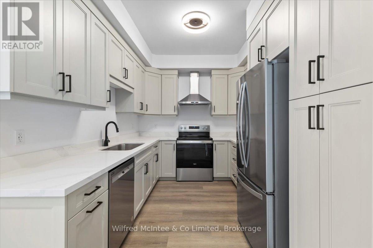 Discover this stunning Southampton townhome, perfectly positioned along the scenic Saugeen River, it's just a short walk to vibrant downtown shops, restaurants, the beach & breathtaking sunsets on Lake Huron. Spanning over 2,000 sq ft of finished living space across three levels (two above grade plus a full finished basement), the home features a bedroom and full bathroom on each floor for ultimate convenience and privacy. Inside, you'll appreciate the tasteful finishes, including quality cabinetry, solid surface counters, luxury vinyl plank flooring, tiled bath/shower surrounds, LED lighting, and more. The main level showcases an open-concept living/dining area with access to your south facing deck, a U-shaped kitchen loaded with ample cabinetry and included appliances, a bright main-floor bedroom and a 4-piece bathroom. Upstairs, a versatile loft/sitting room leads to the primary bedroom suite, displaying river views through the dormer window, a 3-piece ensuite, and a large walk-in closet. The fully finished basement offers guest-friendly space with a third bedroom, another 4-piece bathroom, and a generous sized recreation room. Additional highlights include efficient natural gas furnace, central air conditioning, laundry hookups ready for your washer/dryer, concrete driveway, single attached garage, and low maintenance curb appeal with the stone-brick exterior. Built just a few years ago, this turn-key townhome is ready for you to move right in and add your decorative touch. Waterfront travelled road between. Photos with furniture and decor are virtually staged. (42101028)